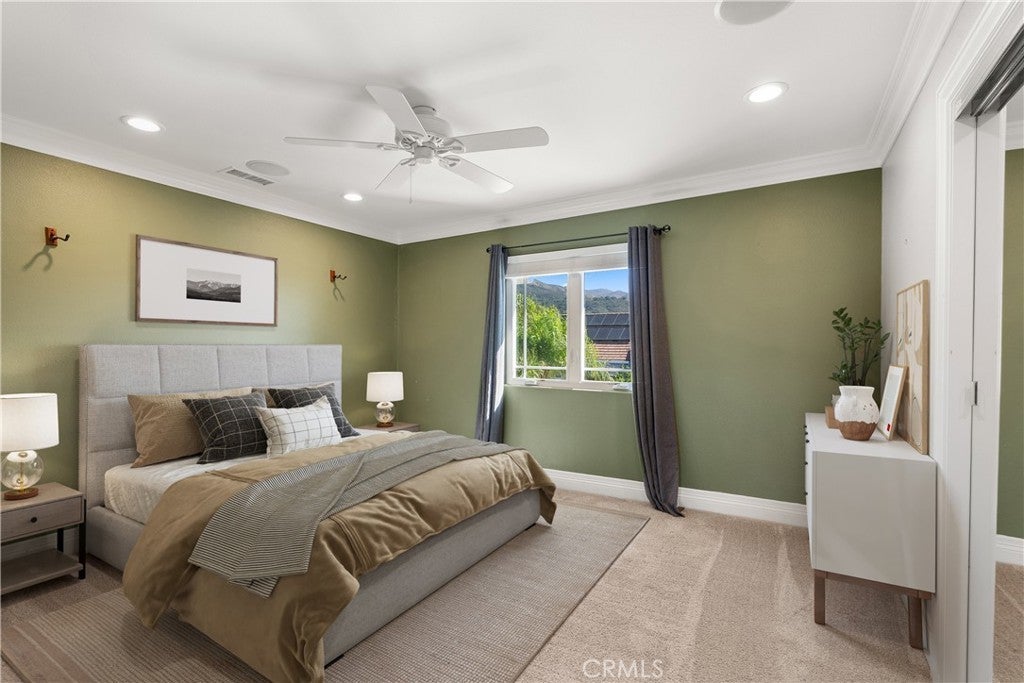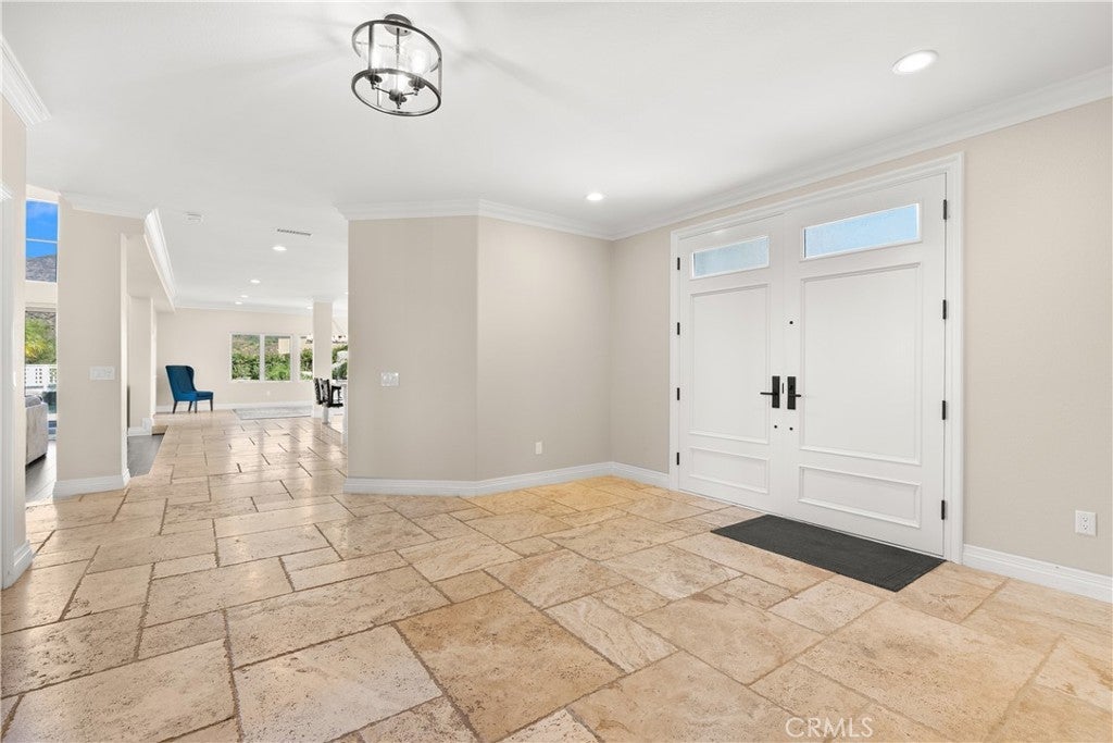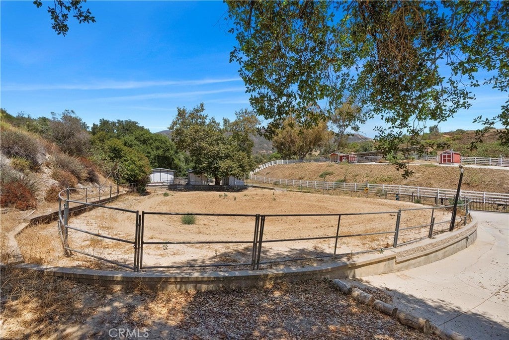 Recent Price Improvement!! Introducing a remarkable horse property, just 2.5 miles from shopping, dining, and schools in Rancho Santa Margarita. This stunning residence boasts panoramic 360-degree views and includes private stables featuring 9 stalls and a horse arena. The horse facility has installed professional footing, barn facility, and extra parking, The open floor plan is flooded with natural light, complemented by a kitchen equipped with granite countertops, stainless appliances, and a walk-in pantry, seamlessly connecting to the dining and living areas with a custom fireplace and built-in shelving. The main floor also features a separate guest suite and bath plus and an office with built-in cabinetry. In addition, a specially designed media room enhances entertainment options. Upstairs, the luxurious master suite showcases a remodeled bath with a soaking tub and two walk-in closets plus 3 Aditional bedrooms and a spacious laundry room. Enjoy breathtaking views from the master and secondary bedroom balconies. The expansive resort-style backyard, ideal for relaxation and recreation, includes a meandering pool, spa, tropical landscaping, 12 fruit trees, putting green, and synthetic grass. A large fenced grass area is also available on the property for gated RV access. Notable features include seller-owned solar panels, Generac whole house generator, new HVAC and a Quick Tesla Charger. Spanning approximately 2.5 acres, the lower area is dedicated to equestrian activities with a professionally designed horse arena and additional stable facilities, including ample parking. This property offers a perfect blend of country tranquility while remaining conveniently close to urban amenities.