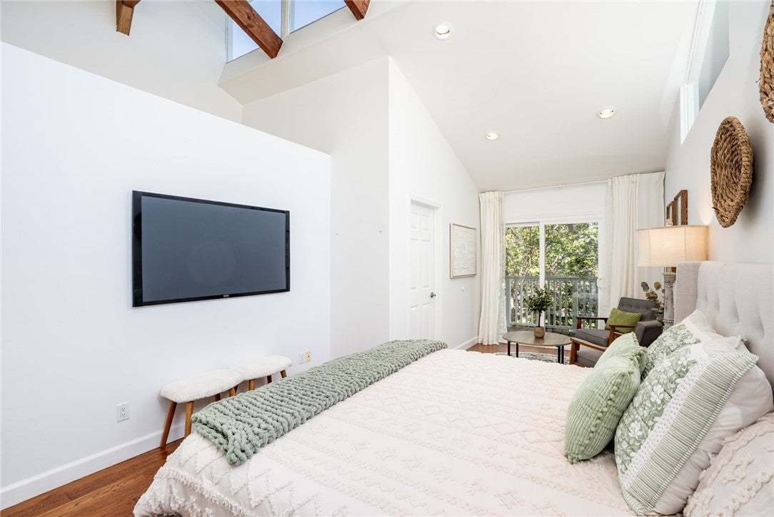 Ceiling Fan(s), Cathedral Ceiling(s), Separate/Formal Dining Room, High Ceilings, In-Law Floorplan, Living Room Deck Attached, Open Floorplan, Recessed Lighting, Bedroom on Main Level, Primary Suite, Walk-In Closet(s), Beamed Ceilings, Track Lighting