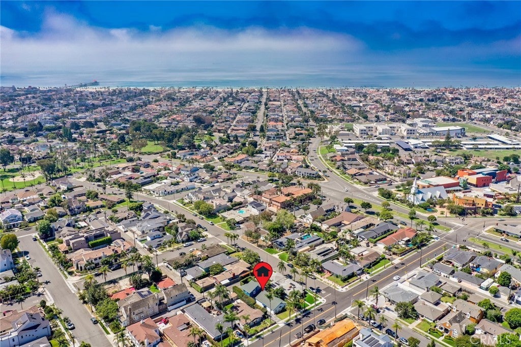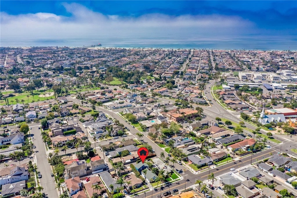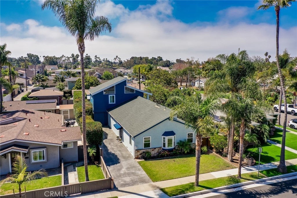 POTENTIAL GALORE!!! This darling and expanded Downtown beach charmer will steal your heart but not your wallet! Walk to HB's famous 4th of July parade or bike to the beach in minutes because this amazing property has a prime location near all the fun! Originally built in 1914 and then expanded and effectively rebuilt in 1995, this home offers all the charm of the original bungalow style home with more modern touches like high-volume cathedral ceilings and large transom windows! You're going to love the dramatic living room w/vaulted ceilings, formal dining room w/vaulted ceilings and bay window, and chef-inspired kitchen with granite counters, loads of cabinetry, and stainless steel appliances! The flex-room/den/office is perfect for all your particular needs and features a new dual pane sliding door w/direct access to the patio deck and huge back yard w/grass yard & multiple fruit trees! The separate family room offers plenty of space for all your large furniture, or could be the living room of your future income producing ADU (auxiliary dwelling unit)! The upstairs primary suite is massive and features soaring vaulted ceilings, large custom transom windows, fully remodeled ensuite full bath, and new dual pane sliding door leading to your own private veranda deck! Recent upgrades include a complete new roof, new engineered wood flooring throughout, complete remodel of 2 bathrooms, and the complete replacement of all exterior concrete at the front driveway, rear driveway, and side walkway. Even the concrete in the garage was completely replaced and then sealed with epoxy flooring. The true hidden value in this gem is the super easy ability to create 2 income producing homes (this floor plan is screaming to be divided) via the property's legal zoning description Residential Low Density (RLD) thus allowing for the potential conversion into a Duplex or an ADU! This home features a very rare long driveway up front and then a 2 car garage in the back w/3 additional driveway parking spaces! With parking at a premium in Downtown HB, this is worth its weight in gold! Your Downtown dream home is finally here!