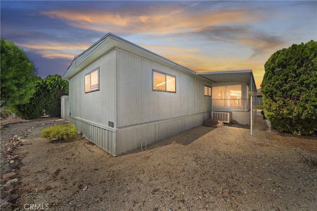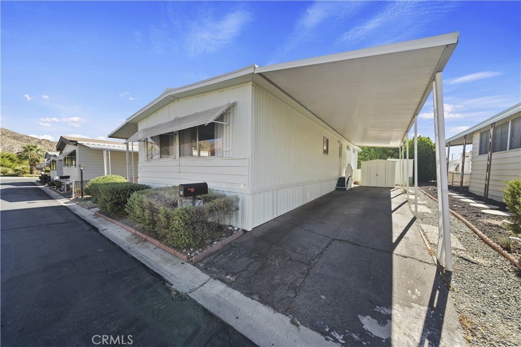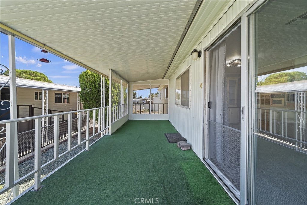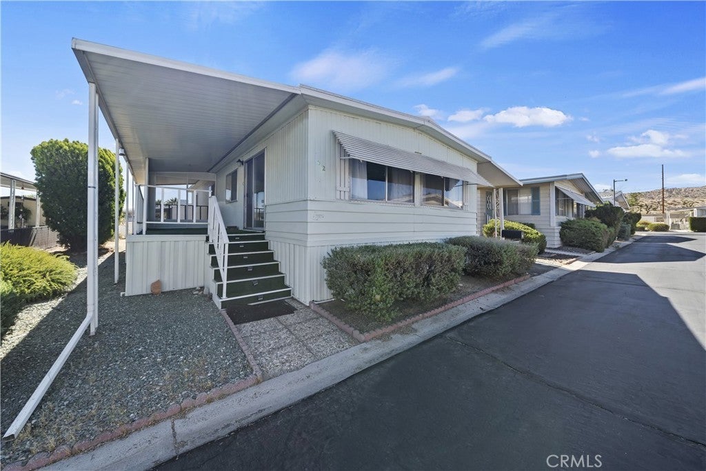 Welcome to your serene oasis in Country Club Estates, nestled in the heart of Yucca Valley's coveted 55+ mobile home community. This charming 2-bedroom, 1-3/4 bath home boasts 1,200 square feet of comfortable living space. Step inside from the front patio deck to the spacious living room with wood shutters that allow you to control the natural light. The heart of the home is the large kitchen, offering generous counter space and storage. Adjacent lies a convenient indoor laundry area. Retreat to the main bedroom suite, your private area for sanctuary and tranquility. Unwind and recharge after a fulfilling day. The second bedroom provides versatility and is ideal for guests or as a cozy den to indulge in hobbies, leisurely pursuits or perhaps as an office. Beyond the comforts of home, Country Club Estates presents a lifestyle of leisure and recreation. Situated within walking distance of Hawks Landing Golf Club, enthusiasts can tee off amidst picturesque landscapes and pristine greens. After a round of golf, savor a delectable meal at The Roost Cafe at Hawks Landing. Embrace the vibrant spirit of Yucca Valley, where natural beauty and modern conveniences await. From scenic hiking trails to eclectic boutiques and galleries, there's always something new to explore here. Whether you're seeking adventure or simply seeking solace in the serene desert landscape, Country Club Estates offers a sanctuary to call home. Don't miss your chance to experience the best of 55+ living in this coveted community. Schedule your showing today and make this tranquil retreat yours.