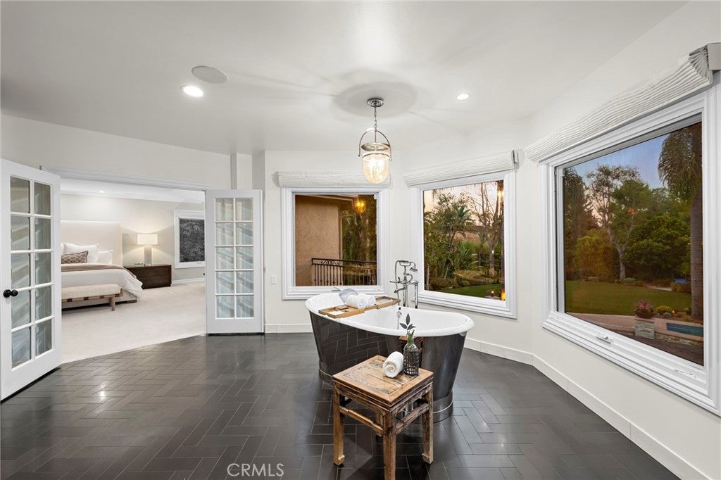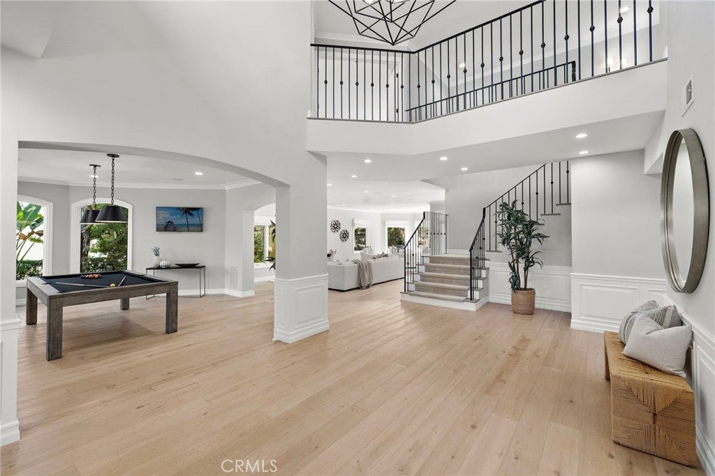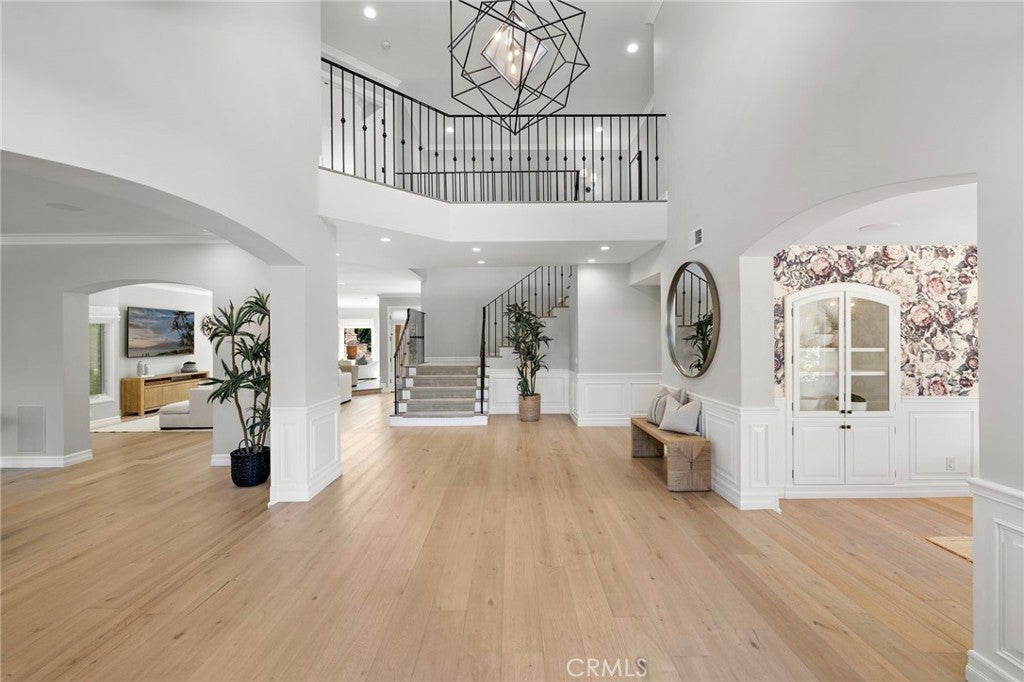 Luxury reimagined at an irresistible price!! Discover elevated living in Nellie Gail Ranch, renowned for its sprawling estates and equestrian charm. This RENOVATED 7,110 Sq Ft ESTATE offers 6 bedrooms, a bonus room, and 4.5 bathrooms, blending MODERN FINISHES and timeless elegance. A grand double-height foyer welcomes you into a light-filled, open yet intimate layout ideal for both entertaining and everyday living. The main level features a SLEEK CONTEMPORARY KITCHEN, breakfast nook with views of the pool plus a MAGAZINE-WORTHY formal dining room with designer wallpaper, classic raised panel wainscoting and dramatic chandelier. The spacious family room connects to a sunlit sitting area, game room, and private office, with flexible options for a formal living space or children’s library. A separate guest suite on the main floor provides privacy for visitors or multi-generational living. Upstairs, 5 generously sized bedrooms include an IMPRESSIVE PRIMARY SUITE with a fireplace, 2 sitting areas, balcony, and a REMODELED SPA-INSPIRED bathroom with dual vanities, soaking tub, oversized shower, and custom walk-in closet. An expansive bonus room offers versatility as a 7th bedroom or media room. Set on nearly a 48,000 Sq Ft parcel, this PRIVATE BACKYARD OASIS includes a sparkling SALT-WATER POOL, SPA, SPORTS COURT, fireplace, built-in BBQ, covered patio wired for TV, a fruit orchard, low maintenance turf, separate dog yard, and backs to one of Nellie Gail’s numerous horse trails. NGR’s HOA provides access to a community clubhouse, a swimming pool, multiple pickleball and tennis courts, equestrian center and 25 miles of equestrian & walking trails.