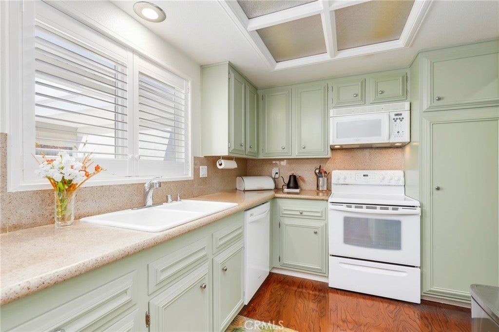 Gorgeous and desirable upper level corner unit located in the fantastic 55+ community of Laguna Woods. This rare three bedroom home is on one level with elevator access, and nobody living above! Enjoy greenbelt common area views from the comfort of your enclosed patio. Central heating and air, dual pane windows, updated kitchen and baths and much more complement this beautiful home! Two small customized office or storage spaces off the living room provide additional functionality. This home has been lovingly cared for and is a must see!! Amenities include golf, tennis, 7 clubhouses, 5 swimming pools, equestrian center, multiple bocce and pickleball courts, gardening opportunities and over 200 clubs and organizations. Complimentary bus service within the community. Active Living at its best and just a few miles from beautiful Laguna Beach and the ocean!
