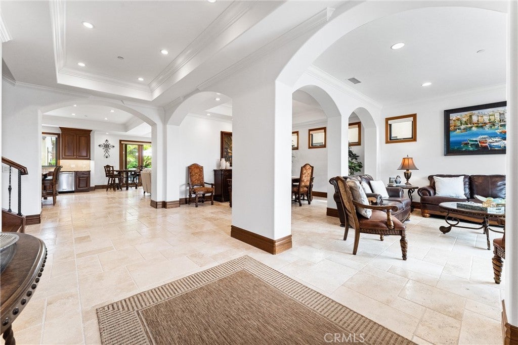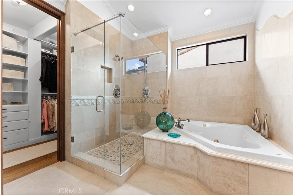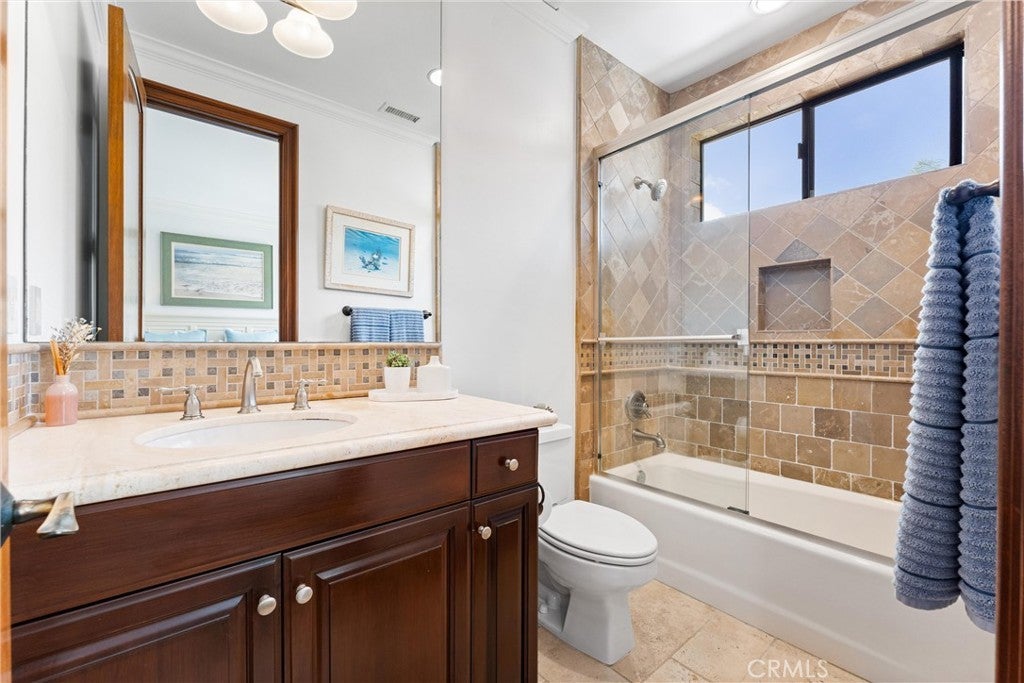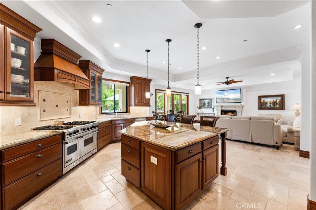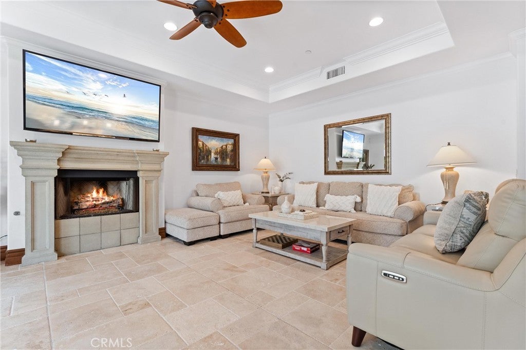 Opportunity knocks! Beautiful ocean-view custom-built impeccably maintained entertainment home with pool and jacuzzi! Elegant and charming home with amazing curb appeal, exterior stone & artisan lighting. Main floor has formal living and dining rooms with ocean view, entertainer's kitchen with eating area, family room with fireplace, bedroom/office, and bathroom with walk-in shower. Second story has main bedroom suite with seating area and balcony with ocean view; 3rd. bedroom with full bath; large 4th. bedroom with ocean view; huge 5th. bedroom (or bonus/media/game room/office) with fireplace and pool view; hall bathroom with walk-in shower; and laundry room with utility sink & built-in cabinetry. Gourmet kitchen has granite countertops, travertine back splash, under-cabinet lighting, walk-in pantry, over-sized center island with seating arrangement, stainless steel Viking appliances, and tons of storage space in wood cabinetry. Master suite has fireplace, dressing room with tall custom cabinetry, bathroom with double sinks, separate tub, and dual-headed shower with glass enclosure. French doors lead from living room and from master suite to front outside porches to enjoy the ocean breeze, and from family room to entertainer’s back patio to enjoy the amazing hardscape, landscape, recently built pool and jacuzzi. Travertine floor downstairs, in all the bathrooms, the laundry room, and the patio's entertaining area; top-of-the-line recently installed wood flooring on stairs, upstairs hall and in all the bedrooms. Exquisite details throughout include 10' tray ceilings with amazing crown molding, 8' Mahogany doors, 7.5" baseboards, cathedral ceilings, ceiling fans in all bedrooms, recessed lighting, designer's paint, and new Roman window blinds. Carriage driveway is suitable for up to 4 vehicles; 2-car garage with attic space; huge backyard with lush landscape; amazing pool with waterfalls, jacuzzi, BBQ grill, refrigerator, and entertainment area; and lighted/gated dog run on the side patio. Beach location is close to shopping & entertainment. Also, NO HOA dues and NO Mello-Roos. This is a must see!