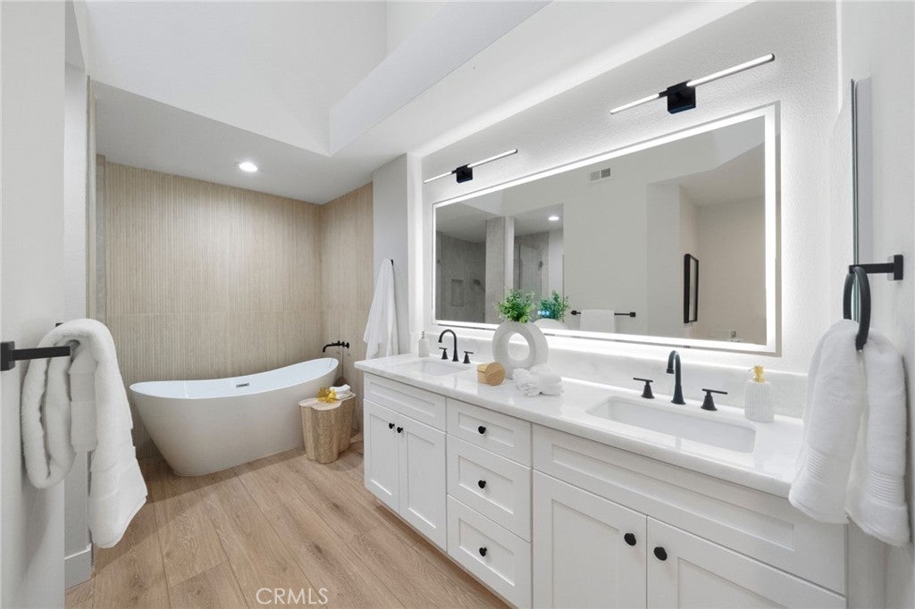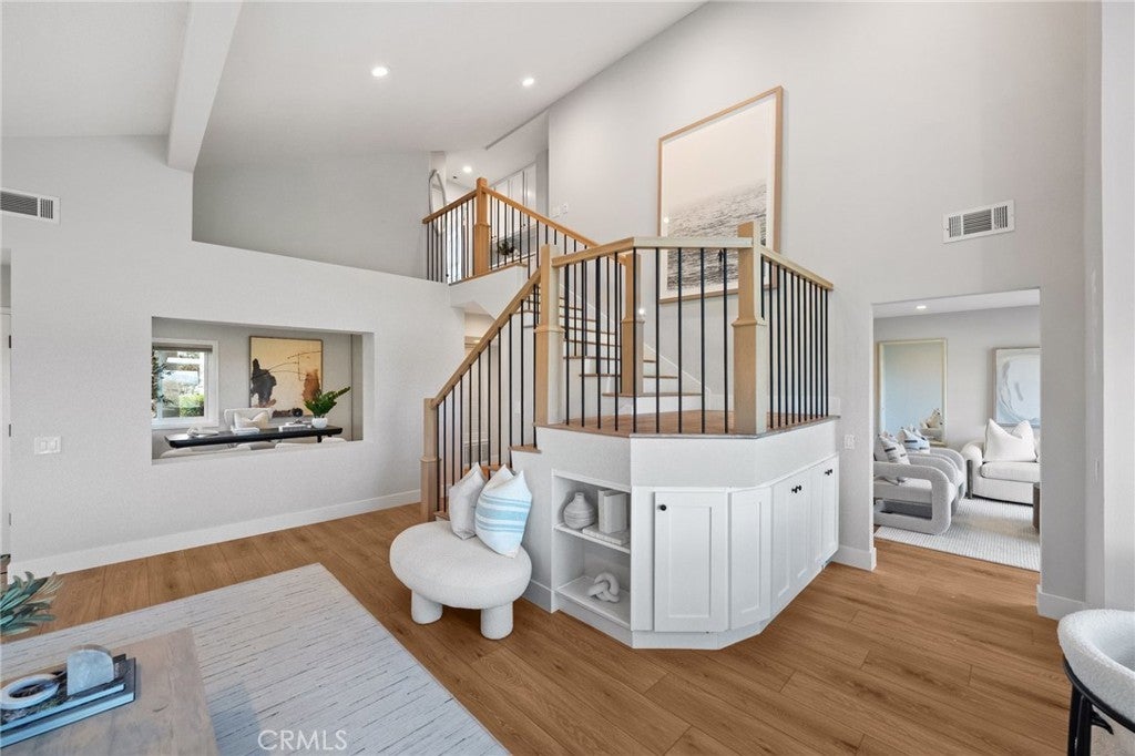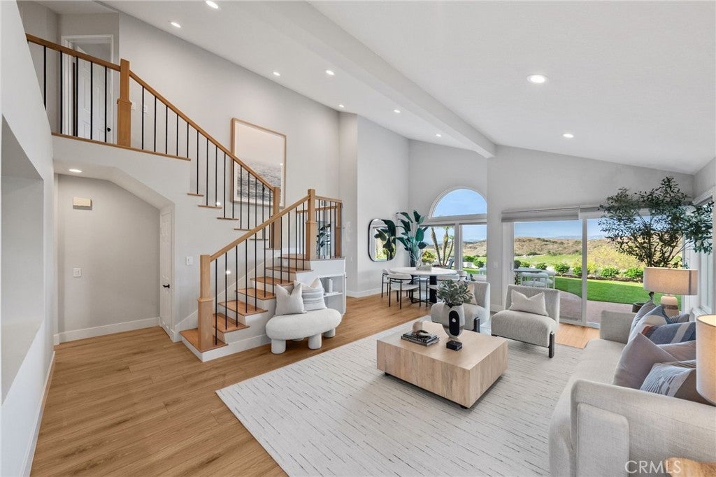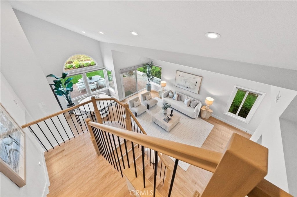 Located in the highly desirable Turtle Rock Pointe community, a haven of neighborly warmth and charm, this outstanding end unit home boasts breathtaking unobstructed panoramic views of city lights and the scenic Strawberry Farms golf course - spectacular views that can be appreciated from nearly every room throughout the residence. This beautifully reimagined home encompasses nearly 2,100 square feet of thoughtfully enhanced living space, having undergone an impressive remodel with extensive high-end improvements including brand new windows and doors throughout, elegant custom luxury vinyl wood flooring, a stunning custom staircase, personalized fireplace, and numerous additional enhancements. Perfectly situated on a tranquil cul-de-sac, this end unit features a wonderful backyard retreat with ample space for outdoor dining and entertaining, plus a lovely lawn area that's perfect for children and pets to enjoy. Enter to discover bright, airy interiors with an inviting open concept design that seamlessly connects the kitchen nook, formal dining room, elegant living room, and comfortable family room. The tastefully renovated kitchen features top-quality stainless steel appliances, while the luxurious primary suite offers a partially remodeled resort-style bathroom with a separate walk-in shower, indulgent soaking tub, double vanities, LED mirror, and an oversized walk-in closet. This three bedroom, three full bathroom residence includes a highly desirable downstairs bedroom perfect for guests or multi-generational living, and the upstairs secondary bathroom has also been partially remodeled. The roomy two-car garage offers excellent storage and convenience. Turtle Rock Pointe represents an exclusive enclave of just 188 homes, creating an intimate community atmosphere where residents enjoy friendly interactions and peaceful walks along tree-shaded streets. Community perks include access to two distinct pools and spas. The location provides excellent access to top-rated schools including Concordia, UCI, Uni High, Vista Verde, and Bonita Canyon Elementary, while being just minutes from Orange County's renowned beaches, diverse shopping and dining options, and convenient freeway connections.