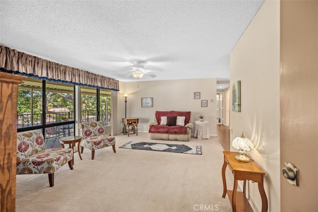 PANORAMIC TREETOP AND MOUNTAIN VIEWS. This popular "CASA VISTA" model has NO STAIRS, no one above, and an end location, which features in-unit laundry and is situated above an expansive greenbelt with beautiful open views from the balcony. The model offers the relaxed indoor-outdoor lifestyle that many buyers seek in Laguna Woods. The sliding glass doors in the living room open to an extra-long covered balcony, perfect for morning coffee, afternoon reading, and barbecuing while you enjoy the scenery. Also, a fantastic location between gates 7 and 8. The kitchen offers abundant cabinetry, solid custom surface counters, a breakfast and serving bar, and a full suite of appliances, including a cooktop, wall oven, microwave, dishwasher, and a side-by-side refrigerator. Both bedrooms are generous. The primary suite features a large walk-in closet and an ensuite bath. The guest bedroom opens directly to the balcony, offering views and fresh breezes, along with natural light. The hall bath features a convenient step-in shower and a stacked washer and dryer, a coveted feature in this community. Added comforts include multiple ceiling fans, wall AC units, neutral finishes, and excellent storage. This is an all-around wonderful home in every way possible! Add all this to the amenities offered by Laguna Woods Village. You have a winning combination -- 27-hole championship golf courses or the 9-hole executive par three courses, tennis, paddle tennis, lawn bowling, two fitness centers, seven clubhouses, five swimming pools, an equestrian center, gardening opportunities, an art studio, a world-class woodshop, over 200 clubs and organizations ensure you will never get bored here! Plus, free bus transportation around the community, nearby shopping, and bus trips. Also, there is a very economical RV storage area to park your RV. Country Club Living is at its BEST and just approximately 6 miles from beautiful Laguna Beach! Discover the best-kept secret in Orange County. Your dream lifestyle awaits—do not miss this rare opportunity! "SEE VIRTUAL VIDEO" and 3D TOUR"