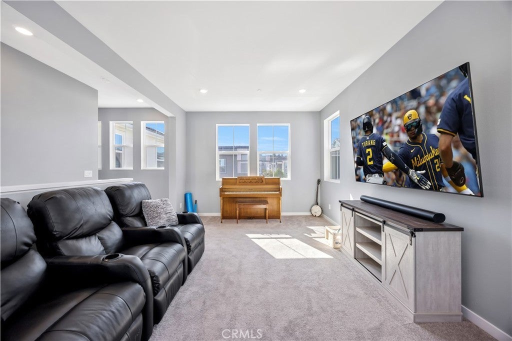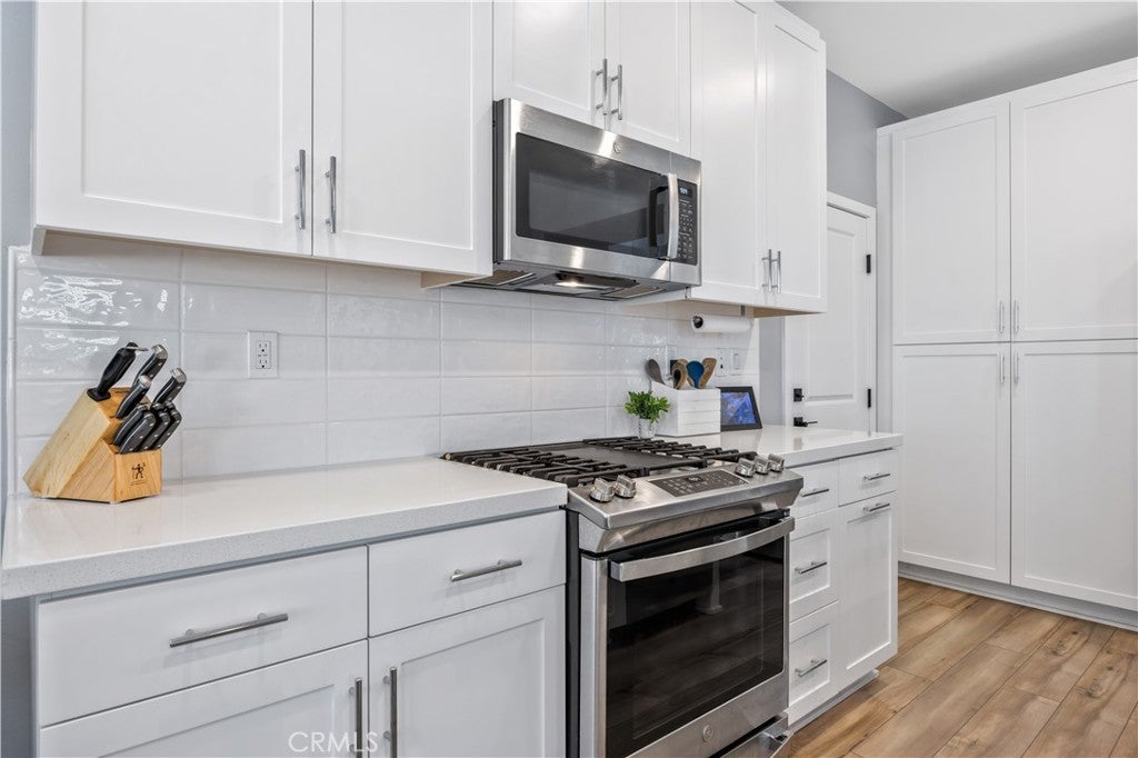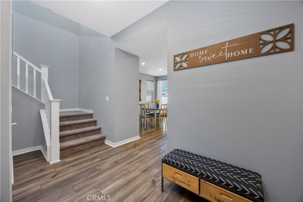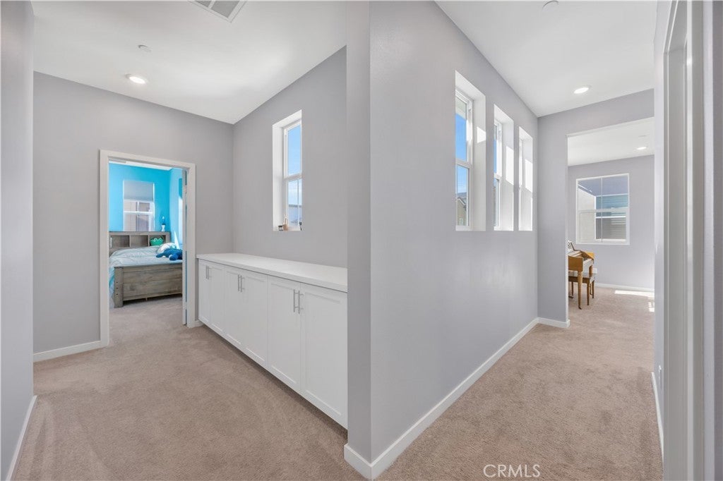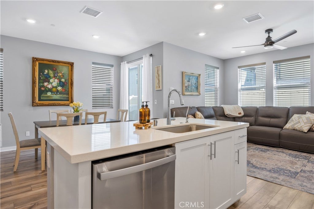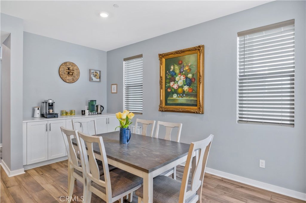 TURNKEY MODERN FARMHOUSE STYLE | 4 BED + LOFT | DOWNSTAIRS BED + BATHROOM | LOW-MAINTENANCE BACKYARD Located in the highly desirable Bedford community of Corona, this gorgeous original-owner home offers understated luxury throughout. The bright and open floor plan begins with a spacious foyer. The gourmet kitchen features a large center island with an abundance of counter space, quartz countertops, subway tile backsplash, white shaker style cabinets, GE stainless steel appliances and farmhouse sink. The open living and dining areas are perfect for entertaining, with a custom built-in sideboard for extra counter space, luxury vinyl plank flooring, recessed lighting and high ceilings. The main floor also features a private bedroom and bathroom, perfect for guests. The large primary suite features high ceilings, custom window shades, ceiling fan, walk-in closet, large bath with a dual sink vanity, shower and separate water closet. A large upstairs loft offers plenty of additional living space. Two additional bedrooms share a large full bath with dual sink vanity and a private tub/shower area. Also upstairs you'll find a separate laundry room offering side-by-side laundry and storage shelf. Additional highlights include a 2-car garage with epoxy floors, dual zone central air/heating, and energy-efficient features such as an owned 10 panel 4.05 KW solar system with 26kWh of battery backup, tankless water heater and reverse osmosis water filtration system. Enjoy access to all the Bedford community resort-style amenities, including; three pools and spa, clubhouses, gym, dog park, walking trails, fire pits, indoor/outdoor entertaining and kitchens, sports courts, and more! Centrally located near top-rated schools, parks, recreation, shopping, dining, and easy access to the 91fwy, 15fwy, and toll roads. This is more than a home, it’s a lifestyle.