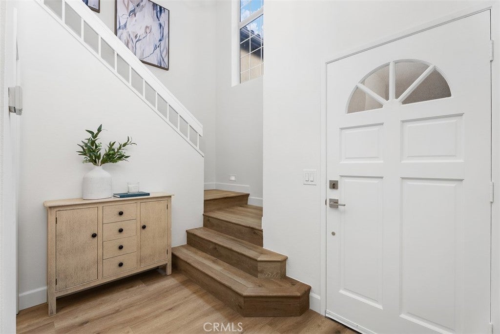 Located on a quiet cul-de-sac in the Cantora community of Aliso Viejo, this fully remodeled 3-bedroom, 2.5-bathroom home offers modern finishes and a bright, clean aesthetic throughout. The current owner thoughtfully upgraded the entire residence with brand-new features, including a redesigned kitchen with quartz countertops and backsplash, new appliances, beautifully updated bathrooms with porcelain-tiled showers and frameless glass doors, luxury vinyl plank flooring, fresh interior paint, LED lighting, a contemporary chandelier, and epoxy flooring in the garage. The inviting living room centers around a cozy fireplace, creating a warm atmosphere for everyday living or relaxed gatherings. The private backyard features a brick patio, mature lemon and lime trees, lawn, and well-maintained landscaping—ideal for outdoor enjoyment. The functional floor plan includes an attached two-car garage with direct access. Upstairs, the primary suite offers vaulted ceilings and an en-suite bath with dual sinks. Two additional bedrooms and a full bathroom provide versatility for family, guests, or a home office. Community amenities include a pool and spa. With Aliso Viejo Town Center just a quarter mile away, you have convenient access to shopping, dining, groceries, coffee shops, a movie theater, parks, trails, and the 73 Toll Road. Local beaches, Dana Point Harbor, and Aliso & Wood Canyons Wilderness Park are also a short drive away. Highly rated schools are nearby, completing the appeal of this move-in-ready home in a highly desirable coastal OC location.