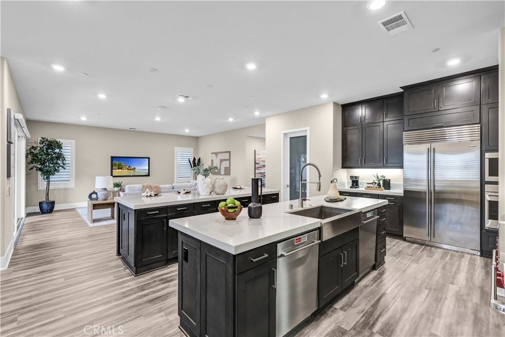 Welcome to 74 Iluna — a stunning luxury residence in the prestigious 24/7 guard-gated community of Altair, Irvine. This upgraded Lennar masterpiece spans 4,468 sq. ft. on a 5,100 sq. ft. lot, featuring 4 spacious bedrooms, 6 bathrooms, and a rare third-floor bonus level — ideal for a home office, playroom, or entertainment space. Every detail is thoughtfully designed, with soaring ceilings, Driftwood vinyl flooring, upgraded carpeting, rich custom lighting, and elegant crown molding. The chef’s kitchen is a showpiece, equipped with Wolf appliances, dual quartz islands, custom cabinetry, and two dishwashers. For the entertainer at heart, the home includes Sub-Zero refrigeration throughout — a main refrigerator in the kitchen, a full-height wine fridge, and a mini fridge in the third-floor wet bar. Enjoy seamless indoor-outdoor living with a California room featuring a cozy fireplace, flowing into a low-maintenance, beautifully landscaped backyard ideal for dining and relaxing. Upstairs, the primary suite is a true retreat — complete with a spa-inspired bathroom, spacious walk-in closet, and two private balconies offering fresh air and elevated views. Each secondary bedroom enjoys its own private or en-suite bath for maximum comfort and privacy. Living in Altair means access to world-class amenities: three sparkling pools, spas, a stylish clubhouse, BBQ areas, tennis courts, lush parks, and miles of scenic trails. Plus, you’re just minutes from the Irvine Spectrum, top-rated schools, shopping, and dining. 74 Iluna is where luxury meets comfort — Welcome Home....