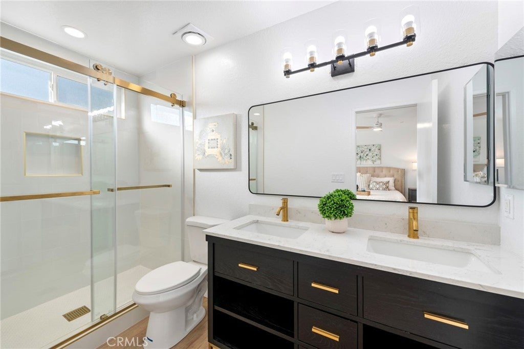 Welcome to a home where modern style meets everyday comfort. Designed with an open, light-filled floorplan, this residence has been thoughtfully updated from top to bottom including a brand-new HVAC system with all new ductwork for year-round peace of mind. Inside, you’ll find 4 spacious bedrooms and 3 full bathrooms, highlighted by a flexible downstairs guest suite with a beautifully remodeled bath and walk-in shower. Upstairs, the primary suite feels like a private retreat, complete with a dual-sink vanity and sleek walk-in shower. Two additional bedrooms share a fresh, updated bathroom featuring dual sinks and a shower-tub combo. At the center of the home, the redesigned kitchen impresses with white cabinetry, quartz countertops, and a striking backsplash, flowing seamlessly into the inviting family room with its whitewashed brick fireplace. Additional upgrades include new flooring throughout, PEX plumbing and an epoxy-finished 2-car garage. Outdoors, the private side yard offers a charming space to unwind. Ideally situated near top-rated schools, Yorba Regional Park, shopping, and with convenient freeway access and NO HOA! this home combines style, comfort, and Great location in one beautiful package.