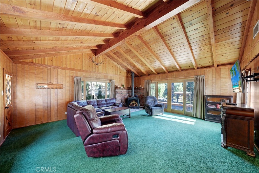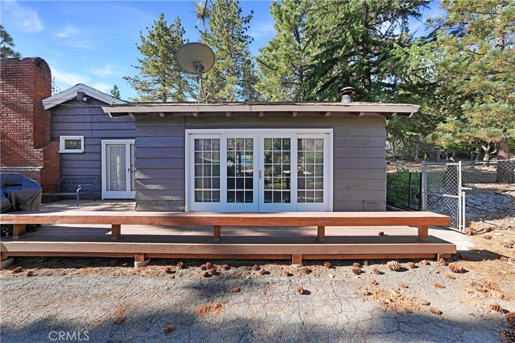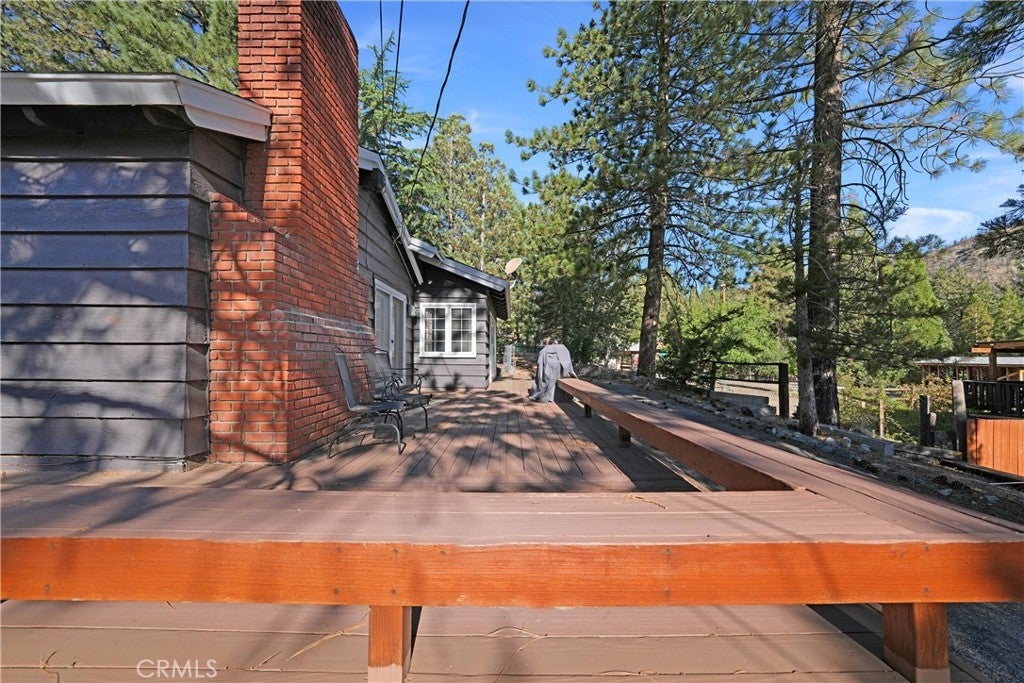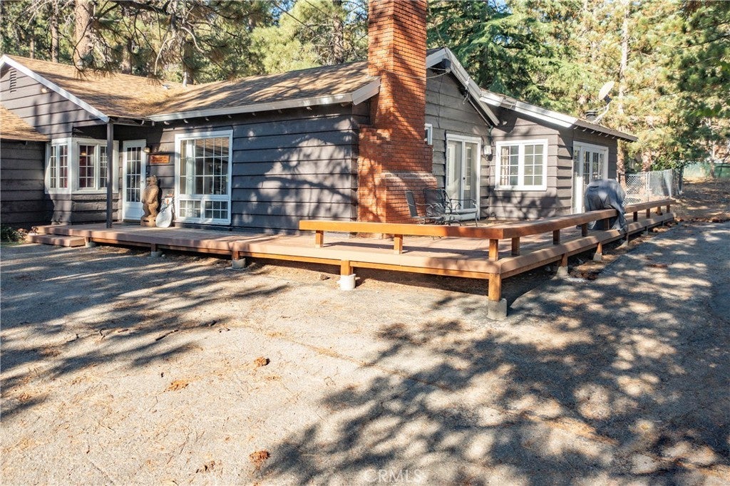 Don't miss out on this great opportunity to purchase your Mountain home in the beautiful City of Wrightwood and just minutes to a famous Ski Resort. The home is turn-key with, 3 bedrooms, 2 bath, 1,918' sqft. spacious living space and on a flat 20,000' sqft. approximately 1/2 acre lot, which is hard to find in this sought out neighborhood. Step out to the spacious rear lot with forest like views and fully enclosed with a large shed which can be used as a work shop or storage with plenty space. You have plenty of parking for a boat or large R.V. and not to mention a built-in brick BBQ area and a concrete slab perfect for a spa. Inside you will love the open beam extra large family room approximately (20 X 22) with carpet over hardwood floors, free standing wood burning fireplace and French doors leading to a wrapped around wooden deck. The kitchen has been upgraded with tiled back splash and stainless steel appliances with continued hardwood floors from the entry. The Living room also has open wooden beam ceiling and a beautiful brick fireplace. Too many great things about this home to list. This is a must see!