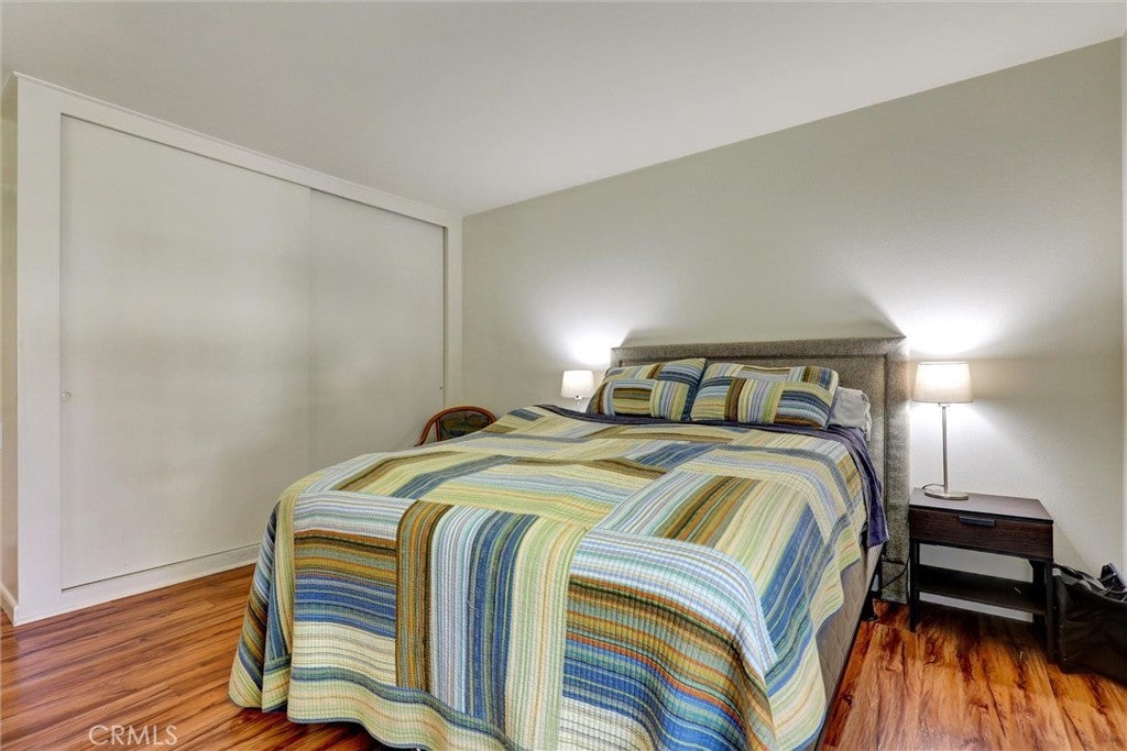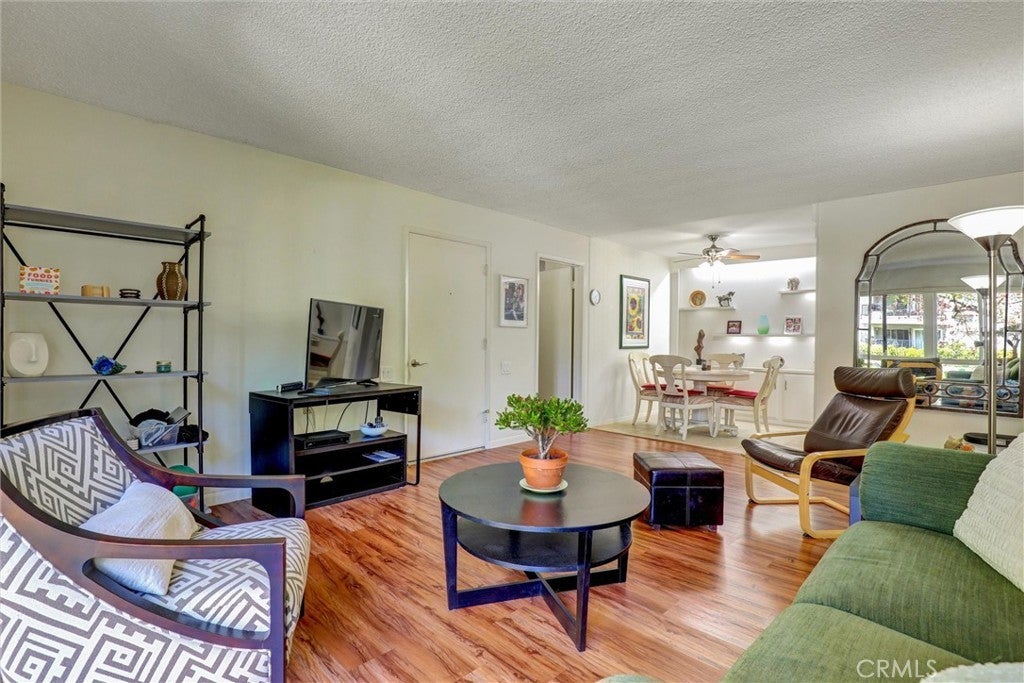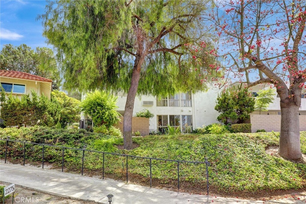 Great Location! Welcome home to Style, Comfort, Convenience, Privacy, Quiet & staying Cooler! Step into this beautifully updated and well-maintained manor where thoughtful design, details and a great location create an inviting living experience. Walk through the very large covered, shaded and private front patio---that is more like an outdoor room--and enter the front door to the spacious living room that stays cooler with natural northern light streaming through the windows overlooking the front yard and garden. Gleaming, waterproof vinyl plank floors add an easy-to-clean modern touch. The well-designed & updated kitchen is a showplace with easy-to-clean & heat resistant black granite counter tops, Italian marble tile backsplash, all stainless-steel appliances including a convenient undermount sink with an extra filtered water dispenser, a built-in vented microwave & glass-top range. Behind double doors in the kitchen is a full-sized stacked washer/dryer that's a necessary convenience & a welcome surprise! The dining room is friendly & inviting--it's main wall being carefully updated with eye-catching & modern display shelves that are ideal for showcasing your art, photos or cherished China. Both bedrooms are very well-situated on opposite ends of the floor plan for ultimate privacy and both have generous floor-to-ceiling closets. The updated bathroom has an oversized vanity, new lighting fixture and a convenient-to-enter modern walk-in shower. Go outside and enjoy the unusually large, shaded, cooler & private front patio to relax, entertain, grill or garden. A large, lockable built-in storage cabinet out there offers a handmade workbench area for tools, hobbies and also storing a bicycle if needed. Lots of curbside available street parking is a quick walk on the well-lit path right to the front door=a rare & valuable convenience in Laguna Woods! In addition there is a covered carport space with more lockable storage cabinets. As a resident of Laguna Woods Village, one of Orange County's most sought-after active adult communities, you'll enjoy resort-style living with an amazing array of amenities! Come and see the 7 clubhouses, 5 pools, pickleball, golf and so much more. Price just lowered, come and see this wonderful manor today.