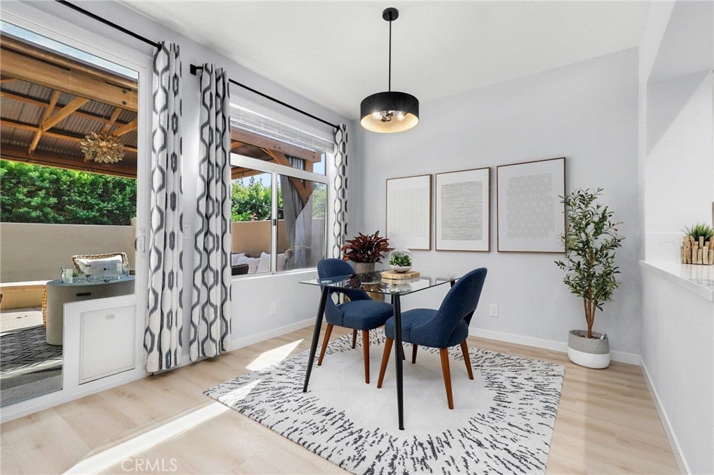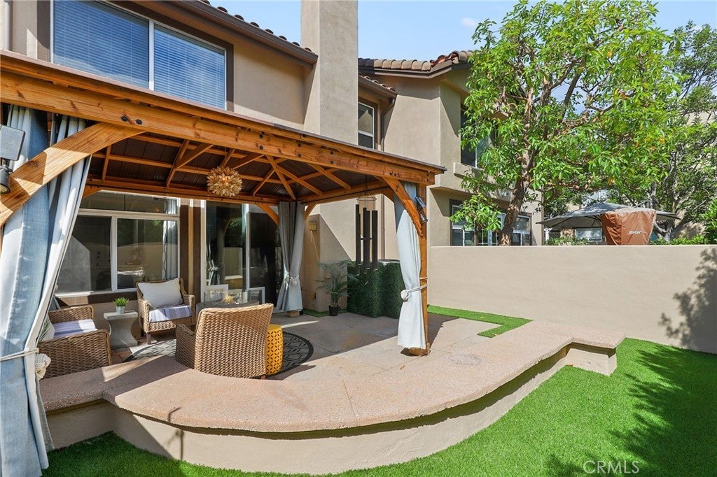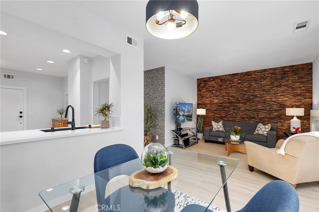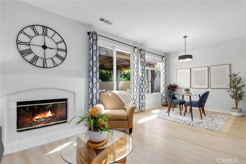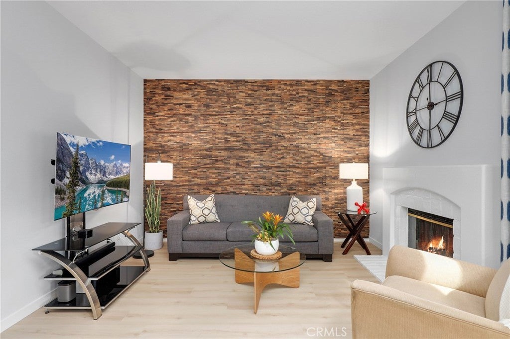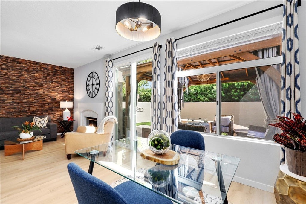 Welcome to 60 Meadowbrook, an immaculate home in the heart of Aliso Viejo. The inviting family room features a stylish accent wall and cozy fireplace, seamlessly opening to the dining area and kitchen. The kitchen boasts white cabinetry, quartz countertops with matching backsplash, stainless steel appliances, and direct access to the two-car attached garage with an extended driveway for extra parking. Sliding glass doors lead to a spacious and private backyard with low-maintenance artificial grass, perfect for entertaining or relaxing. A beautifully remodeled powder room completes the main level. Upstairs, the primary suite offers vaulted ceilings and a remodeled ensuite bathroom with a quartz vanity and walk-in shower. Two additional bedrooms share a remodeled full hall bathroom. Centrally located near Aliso Viejo Town Center, the 73 Toll Road, scenic trails, award-winning schools, and just a short drive to the beach—this home truly has it all!