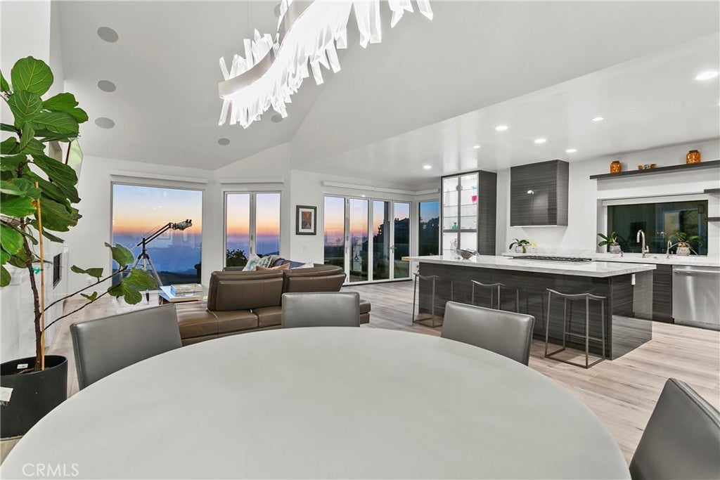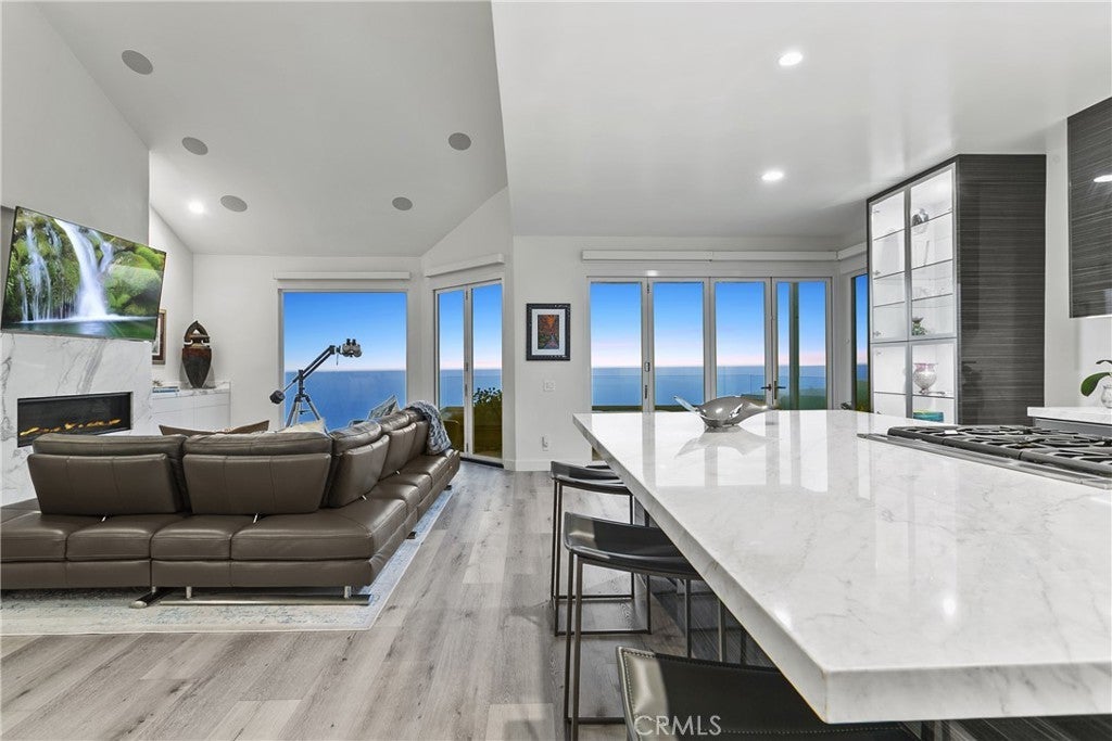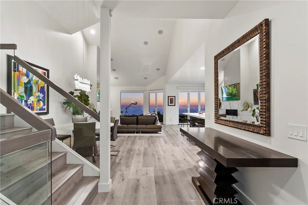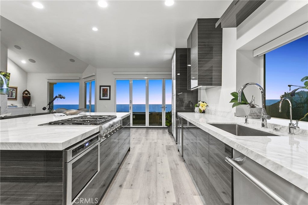 Experience unobstructed panoramic ocean and coastline views , Catalina Island, and sunset views from this luxurious, contemporary Mediterranean home nestled in the prestigious gated community of Laguna Sur. Oversize glass doors frame the dramatic coastal vistas and infuse the open-concept layout with an abundance of natural light and help this entertainer's delight blend seamlessly with the outdoors. Modified from the original builder floorplan to create an open-concept space, the chef’s kitchen opens to the living area and is sure to impress with a 6-burner stove, marble countertops, soft-close custom cabinetry, a wine refrigerator in the kitchen and a walk-in pantry. Enjoy luxury, innovation throughout with soaring ceilings, designer finishes, and smart home features including automation, zoned HVAC with humidity control, a tankless water heater, and energy-efficient appliances. The tranquil primary suite is also modified to create an open concept space, offering a spa-like escape with over-sized custom shower including Mr. Steam steam shower, dual massage showerheads plus rain showerhead, a jetted BainUltra tub, and a generous walk-in closet. Additional features include custom built-ins, whole-home data wiring, integrated surround sound, a central vacuum system, a loft and additional attic and a TONAL Smart Home Gym. Residents of Laguna Sur enjoy exclusive resort-style amenities including two pools, a spa, and 2 tennis/pickleball courts. This prime coastal location is just minutes from the Waldorf Astoria and Ritz-Carlton resorts, the El Niguel Country Club, the charm of Laguna Beach Village, the Dana Point Harbor, and a myriad of dining and shopping options in the newly renovated 'Lantern District' in Dana Point. Badlands and Sea View parks are just outside the gates and offer an abundance of trails and recreational opportunities for the outdoor enthusiast.