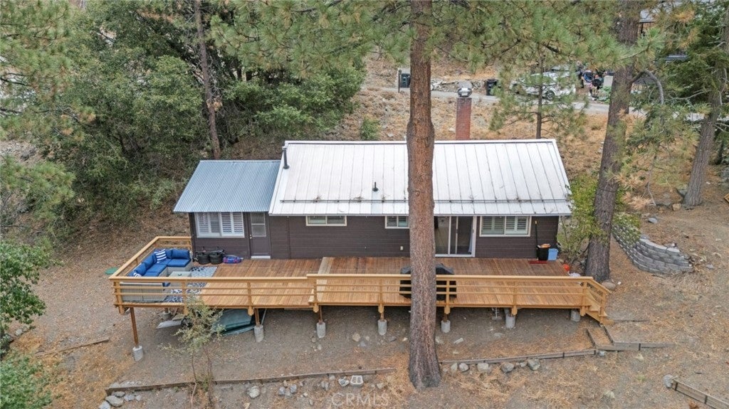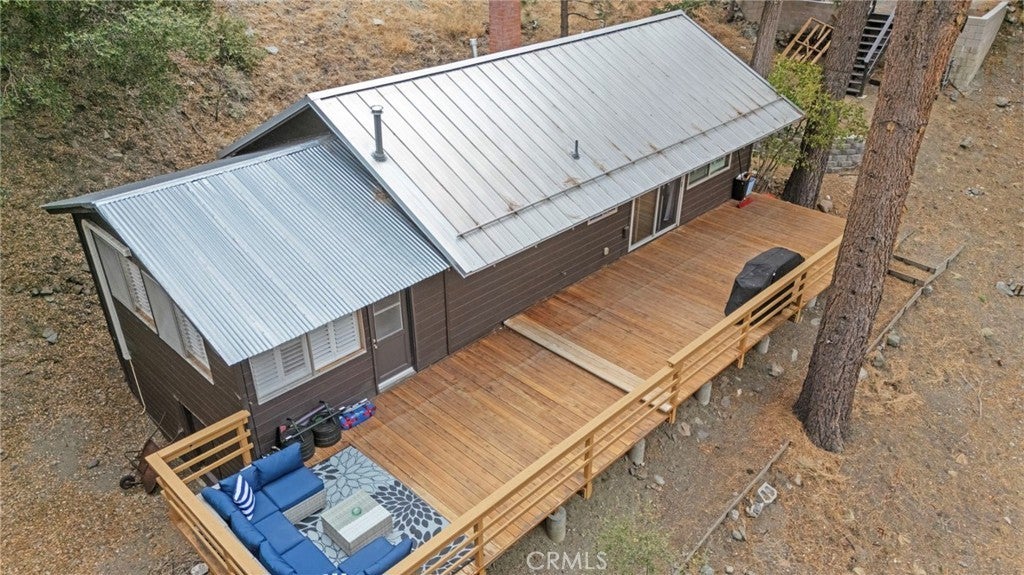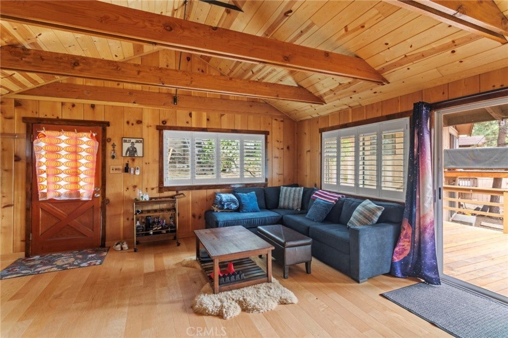Welcome to 2080 Mojave Scenic Dr! This charming 2-bedroom, 1-bath home has been lovingly cared for and it shows the moment you walk in. The light-filled living room features wood flooring, wood-beamed high ceilings, and a cozy fireplace. The open-concept kitchen highlights custom cabinetry, retro appliances, and a vintage sink with plenty of character. The larger bedroom offers oversized windows and direct access to the deck, while the secondary bedroom includes a convenient stackable washer/dryer. A newly installed mini-split A/C unit provides year-round comfort. Step outside to the oversized wooden deck—perfect for creating your dream outdoor living space, all surrounded by nature and mountain views. Two off-street parking spaces complete this must-see property!