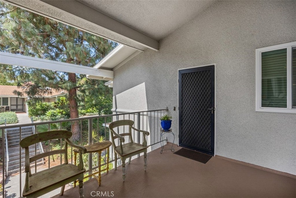 BACK ON MARKET! Welcome to this delightful upstairs "CASA BLANCA" unit located in the serene 55+ community of Laguna Woods. This home has nice curb appeal, with lush greenery out front that invites you in with its warm, welcoming atmosphere. The unit features energy-efficient double-paned windows throughout, ensuring a comfortable and tranquil environment. Enjoy your morning coffee in the enclosed patio off the living room, a perfect spot for relaxation. (APPROX. 8 by 20), which is not included in the square footage. Additionally, it can serve as a crafts room, office, and more! The master suite can accommodate king-size furniture. You will love the convenient location, right next door to Clubhouse three, with easy access to Popular Amenities like Clubhouse 1, Medical Facilities, Shopping, restaurants, and more! There is a large parking lot for guests, and if you have a second car, you can park there as well. The carport is conveniently located close by with storage. Add all this to the amenities offered by Laguna Woods Village. You have a winning combination - 27 27-hole championship golf courses or the 9-hole executive par three courses, tennis, paddle tennis, lawn bowling, two fitness centers, seven clubhouses, five swimming pools, an equestrian center, gardening opportunities, an art studio, a world-class woodshop, over 200 clubs and organizations, ensuring you will never get bored here! Additionally, enjoy free bus transportation throughout the community, nearby shopping, and convenient bus trips. Additionally, a very economical RV storage area is available for parking. Country Club Living is at its BEST and just approximately 6 miles from beautiful Laguna Beach! There is something for everyone. SEE VIRTUAL TOUR* CARPORT #356 SPACE 1
