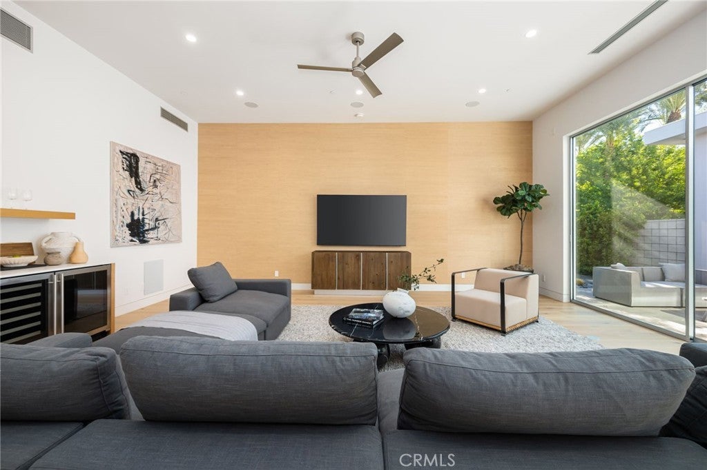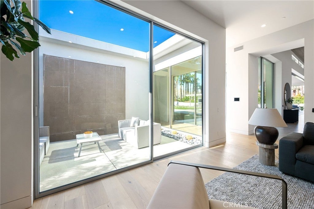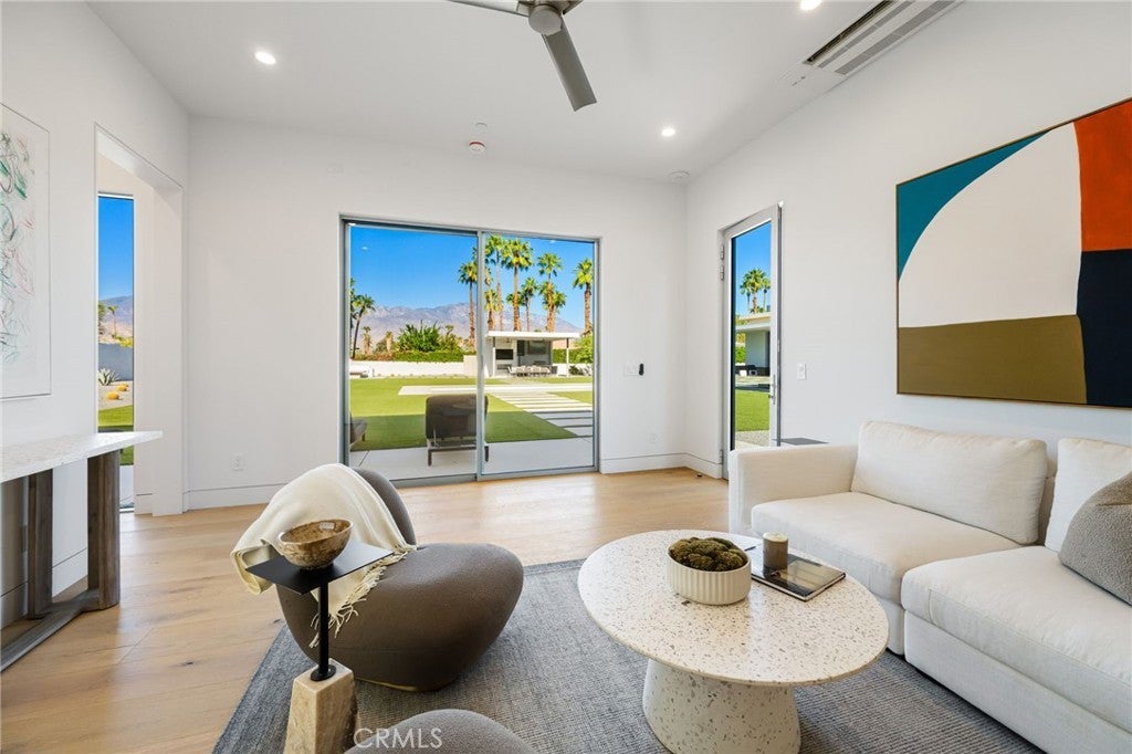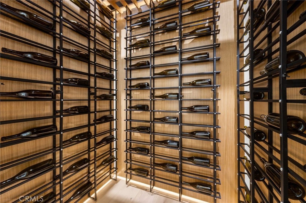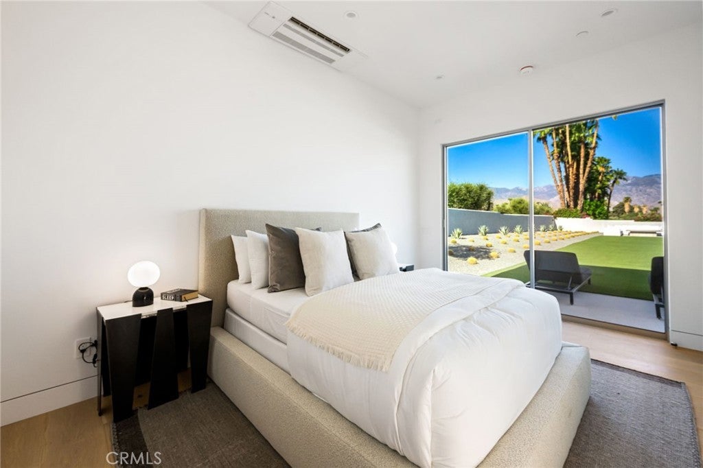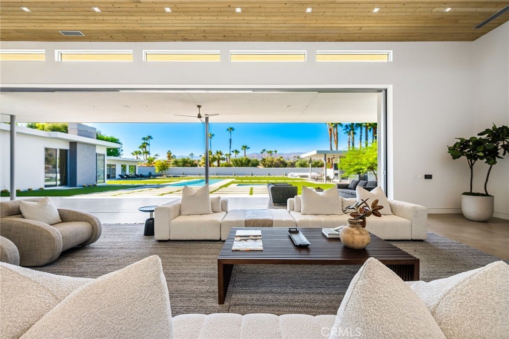 Set on a private 1-acre estate with south facing panoramic mountain views, new custom built 6,752 square foot residence blends luxury and mid-century with today’s most advanced technology and finishes. Enclosed behind 6-foot block walls and a wired security system, this property offers unmatched privacy. Entering through a 7ft wide 12ft tall custom pivot glass door, the great room opens to the outdoors with 40’ x 12’ automated pocketing glass walls, creating a seamless flow between living, dining, and entertaining. The chef’s kitchen is anchored by a 6.5 x 13 foot waterfall quartz island with seating for eight, dual dishwashers, commercial-grade Viking appliances, a custom vent hood, built-in espresso machine, and beverage station. Custom rift-sawn white oak cabinetry, imported Italian porcelain tile, and custom wide plank white oak engineered flooring elevate every detail. The main residence features 6,072 square feet, 5 bedrooms, 5 bathrooms, a formal powder room, temperature controlled wine cellar, including a primary suite with a private fireplace, floating dual vanities, Toto Neorest bidet, wet bar with wine fridge and its own climate zone and water heating system for ultimate comfort. A flexible bonus room offers endless possibilities—gym, office, or theater. The family room is designed for effortless entertaining, featuring a wet bar with dual refrigerators. The space has integrated surround sound. Extending the experience outdoors, the property is equipped with a whole-estate speaker system, including hidden speakers throughout the landscaping for seamless indoor-outdoor living. The spacious laundry room leads to the 4 car temperature controlled garage with epoxy flooring. Outdoors, a 500 sq. ft. entertainer’s cabana rivals any luxury resort with a full Viking kitchen, 36” barbecue with rotisserie, refrigerator, dishwasher, fireplace, TV, misting system, and full bath with outdoor shower. Entertain at the sparkling 60 foot pool with fountains, an app-controlled fire pit, and outdoor lounge areas complete the space. For guests, a detached 680 square foot casita provides a private oasis with a living area, bedroom, full bathroom, two high powered Mitsubishi AC units, kitchenette, and laundry. Every system in the home is designed for luxury: 5 Wi-Fi controlled HVAC zones, commercial-grade insulation, variable-zone cooling, tankless water heaters, concealed owned solar, custom lighting, surround sound, and whole-property misting and music systems.