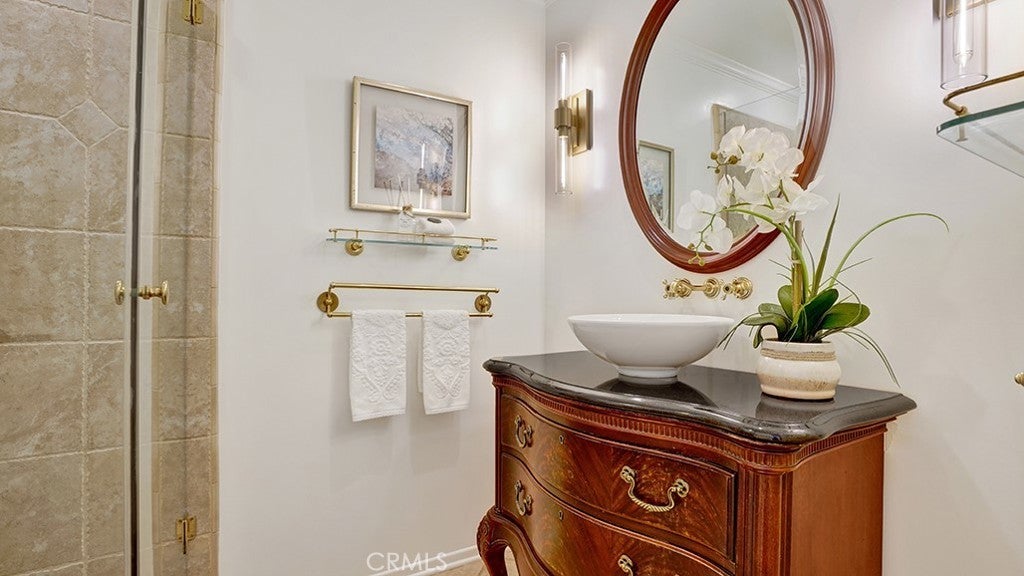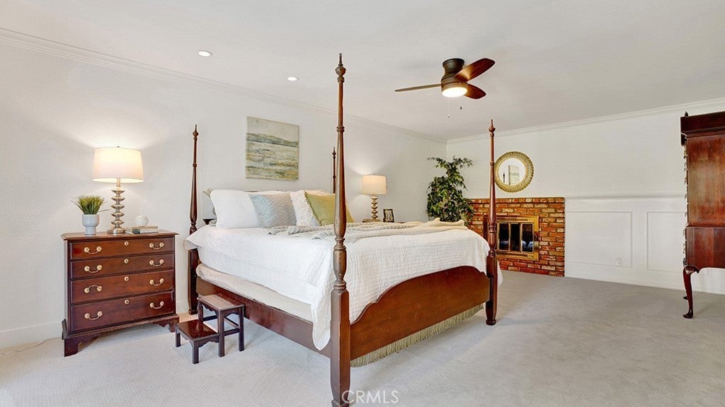 Ensconced within the extremely desirable Aegean Hills neighborhood of Mission Viejo, this well maintained pool home promises the quintessential Southern California lifestyle. Boasting four generously sized bedrooms, a large bonus room (currently used as a fifth bedroom), three bathrooms, 3,253 square feet of living space on a tastefully landscaped 8,162 square foot lot, the home’s quiet location and scale will easily accommodate large gatherings of your loved ones and friends. Upon arrival a picturesque scene greats you featuring a brick driveway, manicured lawn and east facing covered front porch accented by the home's white exterior trim and red bougainvillea. The covered porch is an ideal place to enjoy the last rays of sunshine. Enter the home through oversized double doors to a grand vaulted ceiling, a skylight the allows natural light to illuminate freshly painted walls, engineered wood floors, new carpet and a pass through fireplace that connects the living room with dining room. There are two seating areas in the backyard located just outside the dining room's sliding glass door. There is space to seat six beneath the existing sunshade and additional seating for four beneath the hardtop gazebo near the outdoor fire pit as well as a grassy side yard with vinyl fence leading back to the front yard. The open concept between the kitchen and family room is the heart of the home and stretches along the rest of the backyard with clear sight lines of all the fun that will be had in the pool and spa. Upgraded solid wood cabinets, pots and pan drawers, a stainless steel refrigerator, an electric double convection oven, six burner gas cooktop, a pantry and plenty of storage are some of the features the kitchen provides. The adjacent family room has a custom built-in entertainment center with additional storage and desk. A separate laundry area with more cabinet storage, hall bath with step in shower, two additional closets and wet-bar complete the downstairs. The spacious primary bedroom features a cozy gas fireplace, private balcony, separate dressing area, walk-in closet as well as an ensuite bath with step in shower and dual vanity. Three additional bedrooms, a large bonus room and jack and jill bath with dual vanity and tub complete the upstairs. A low tax rate, no HOA or Mello Roos, access to Saddleback Valley's top rated schools and conveniently located near major freeways, shopping and dining are a few more benefits this home provides.