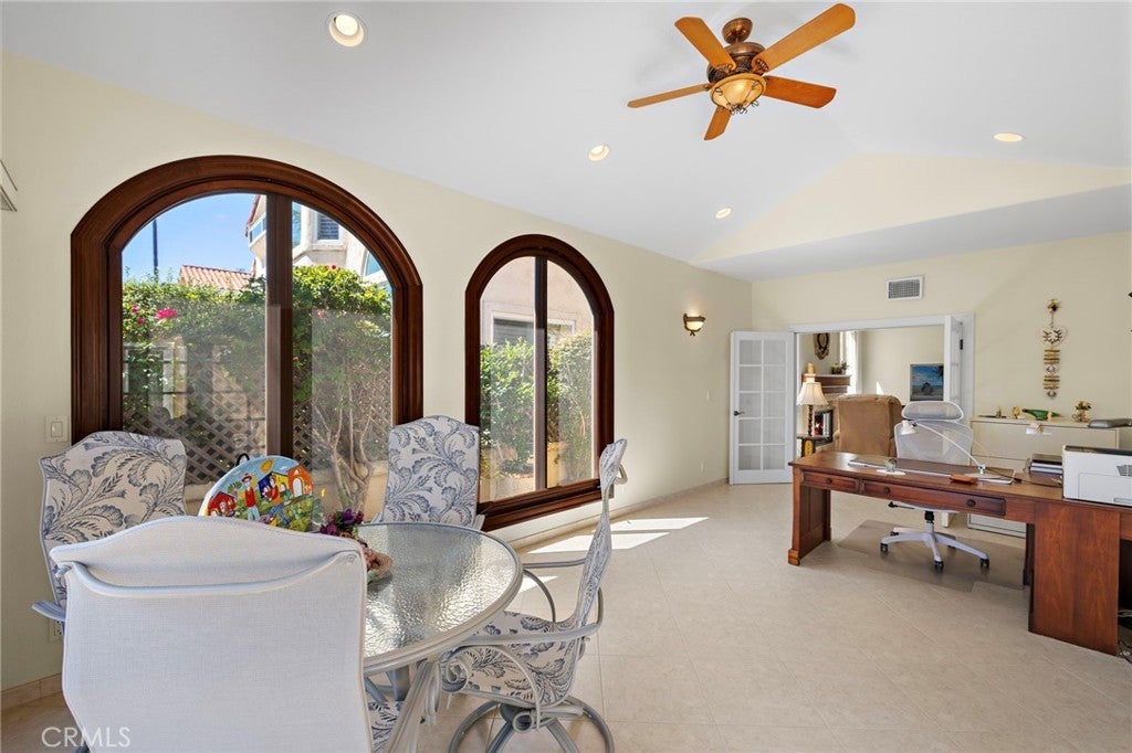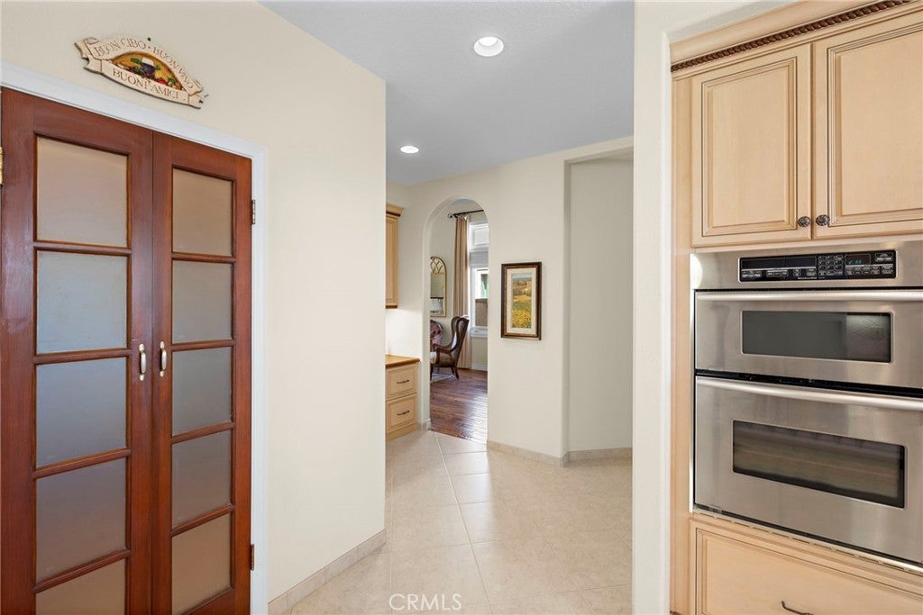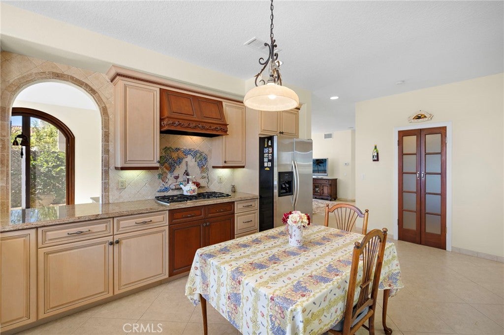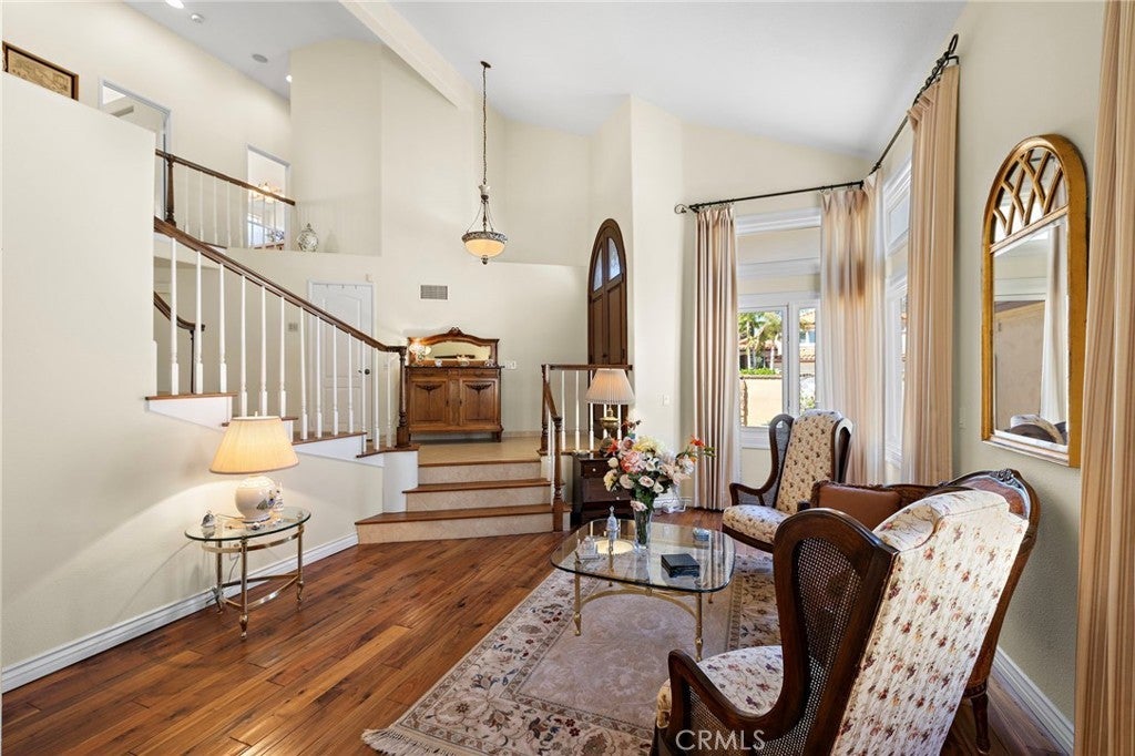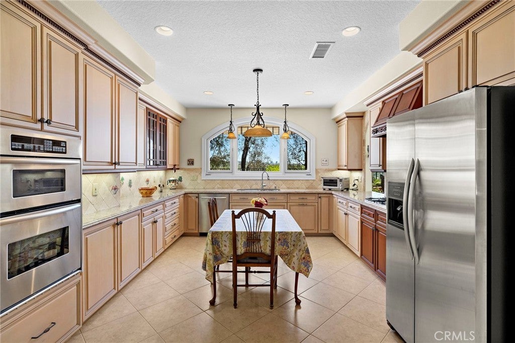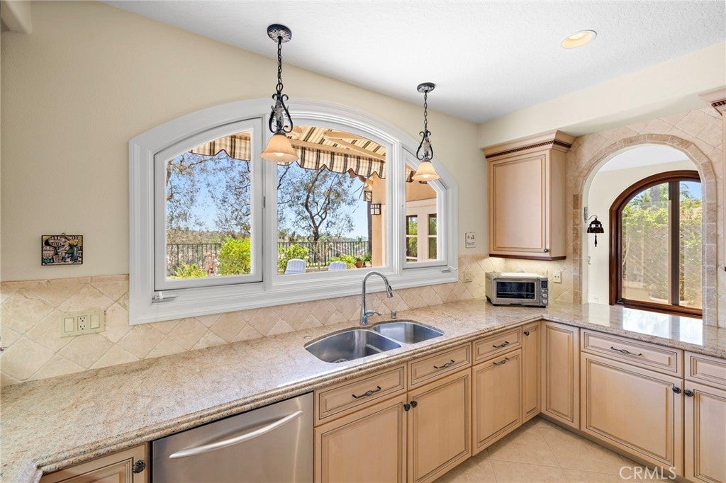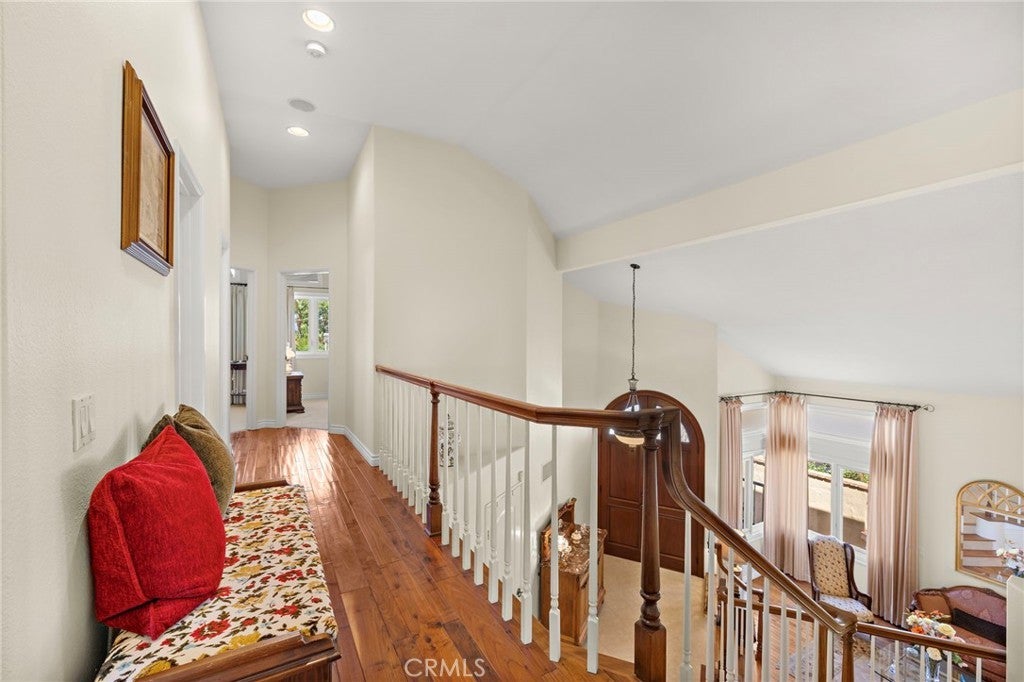 Welcome to this exquisitely upgraded 5-bedroom, 3.5-bathroom home offering 3,018 sq. ft. of luxurious living space, perfectly situated on an expansive lot with a partial scenic ocean view. From the moment you arrive, the Tuscan-inspired exterior makes a striking impression with custom-designed Renaissance windows and doors, professionally landscaped planter areas, high-end entry gates, and a sweeping decorative Olsen Pavers driveway leading to a spacious 3-car garage—delivering exceptional curb appeal. Step through the grand arched double doors and you'll immediately feel the pride of ownership in every detail. The entry opens into a warm and welcoming living and dining area with rich, handscraped Rustic Walnut wood flooring that flows seamlessly throughout much of the downstairs. Ideal for multigenerational living, a private, large downstairs bedroom with en-suite bath offers comfort and flexibility. The family room is an inviting retreat featuring a custom fireplace and opens into a bright and airy vaulted sunroom/office through elegant French doors. Bathed in natural light from expansive Renaissance arched windows, this versatile space is perfect for working, relaxing, or entertaining. The open-concept kitchen is a chef’s dream—featuring a stunning arched picture window with backyard views, granite countertops, designer tile backsplash, top-of-the-line KitchenAid appliances, and a generously sized walk-in pantry with custom shelving. Upstairs, the expansive primary suite is a true sanctuary, complete with a spacious retreat area that can easily function as an additional bedroom or private lounge. The spa-inspired en-suite bath is beautifully appointed with marble floors and walls, an Aruba Gold travertine shower, and matching vanity countertops that add elegance and warmth. All bathrooms throughout the home have been equally upgraded with luxurious finishes. Step outside to a beautifully landscaped backyard oasis with lush greenery, an elaborate Olsen Pavers patio, and thoughtfully designed planter areas—perfect for entertaining or enjoying the peaceful coastal breeze. From here, take in the partial ocean view and serene atmosphere. This home is truly a rare find—thoughtfully upgraded, meticulously maintained, and move-in ready. Your buyers will be impressed by the exceptional quality, attention to detail, and timeless design throughout.