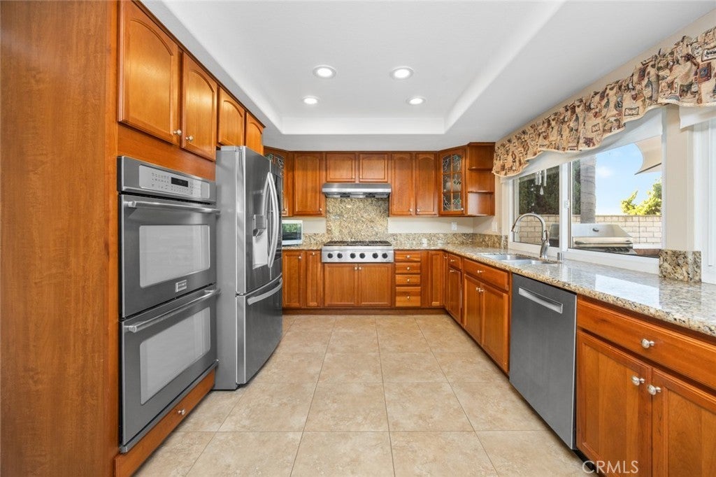 Welcome to 19831 Caprice Dr, a beautifully upgraded 4-bedroom, 4-bathroom home on a quiet cul-de-sac in Yorba Linda. The layout includes a full bedroom and bathroom downstairs, plus a spacious bonus game room with plumbing ready for a bar that can be used as a playroom, theater, or additional bedrooms. The upstairs is also complete with an upstairs master bedroom with a walk-in closet as well as two bedrooms that are perfect for guests or an office. The backyard is a private retreat with a rock pool, jacuzzi, baja shelf, slide, firepit, outdoor kitchen, and poolside bathhouse with shower—perfect for entertaining. Inside, you’ll find a modern kitchen with a double oven and 6-burner range, soft-close cabinetry with pull-outs, and updated flooring throughout. Just off the kitchen is a dining room complete with custom pull-outs perfect for all your large appliances or added storage. Some of the recent upgrades include- Luxury Vinyl Plank and ceramic tile (2023), interior and exterior paint (2023), copper wiring as well as 200 AMP panel (2023), entire HVAC system replaced (2024), newer dual pane vinyl windows, This home is ideally located near Fairmont Elementary and Yorba Linda High School, with convenient access to shopping, dining, and grocery stores. Combining comfort, upgrades, and location, this Yorba Linda gem is move-in ready.