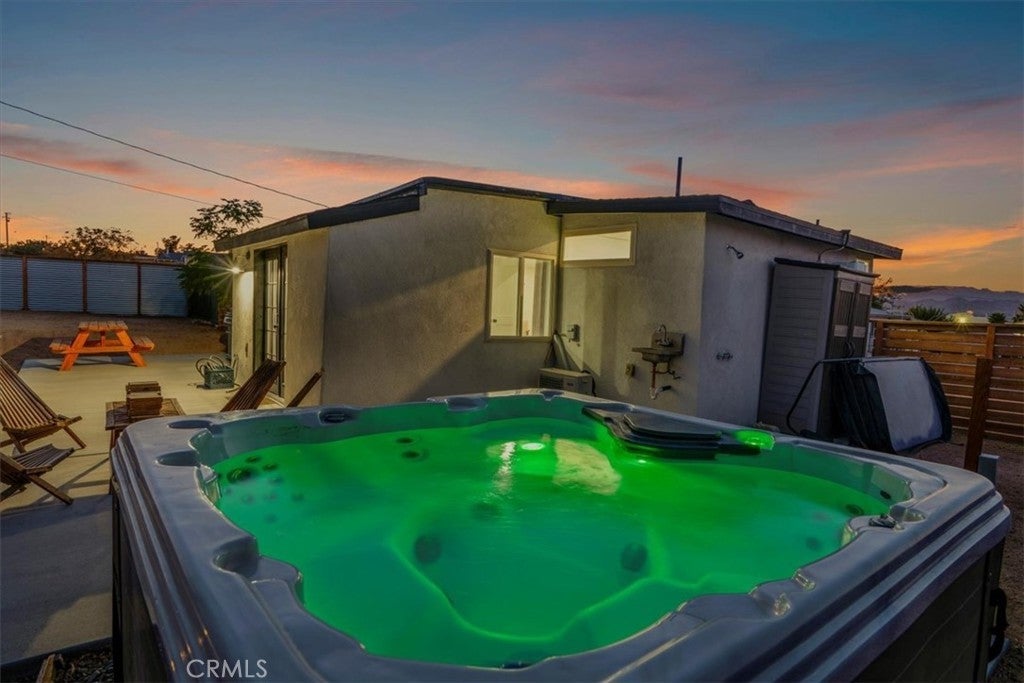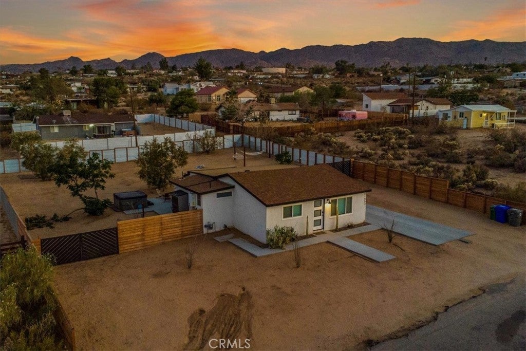 This one is really a must see with a great price! This newly renovated 2-bedroom, 1-bathroom home blends modern upgrades with desert charm, this one is five minutes from the Park Entrance, one minute from downtown, ten minutes away from 29 Palms, and the vast desert area gives this property a surreal feeling. The property has been a successful STR for years, and the upgrades that you see have been completed over the last two years. The privacy fence around the property gives a secluded feeling while enjoying the night sky and spa in the backyard! The open-concept living area is filled with natural light, while the updated kitchen features quartz countertops and new appliances. Both bedrooms are spacious with large windows, and the remodeled bathroom boasts contemporary finishes. On the street that the property cities is a perfect position to get great views of the whole landscape and still have the closeness of city life! Come check this one out!