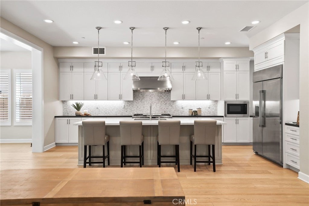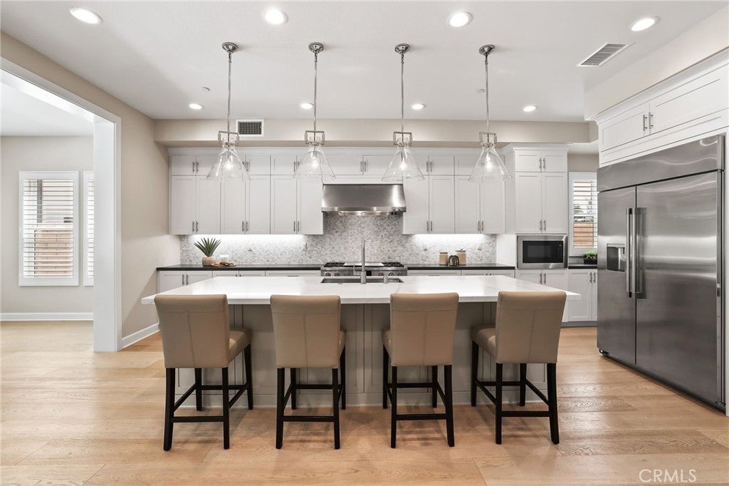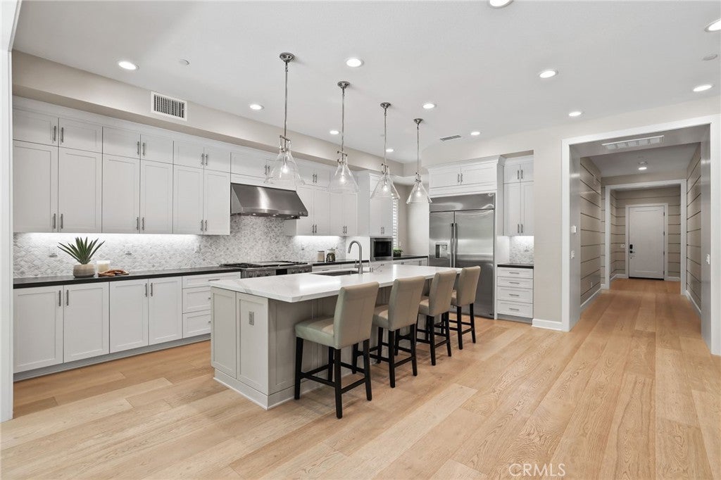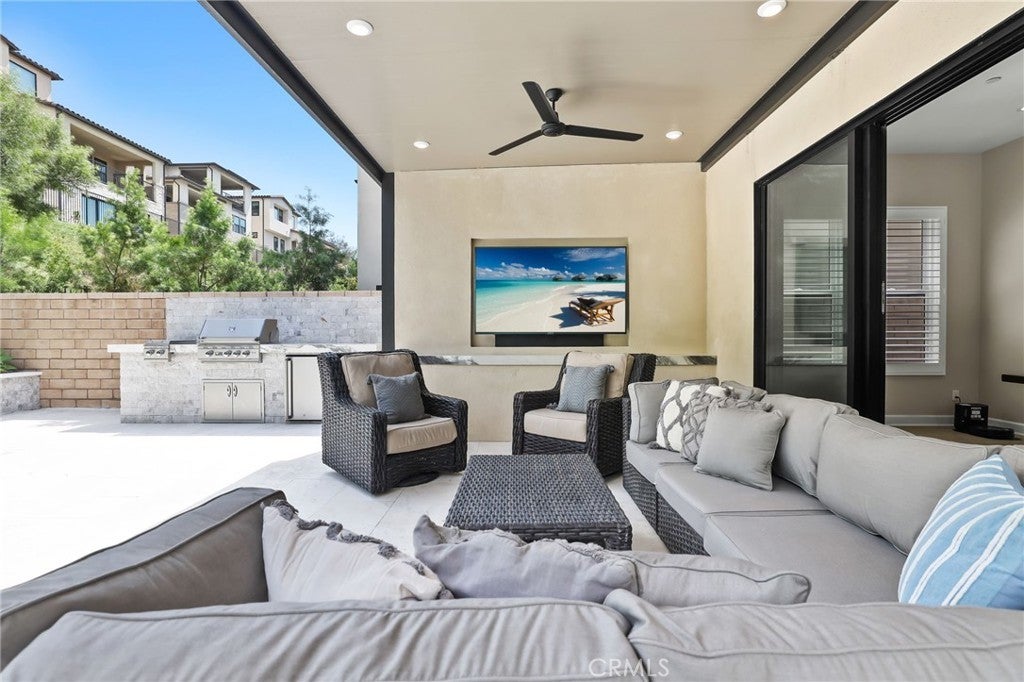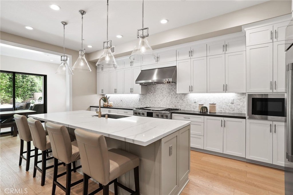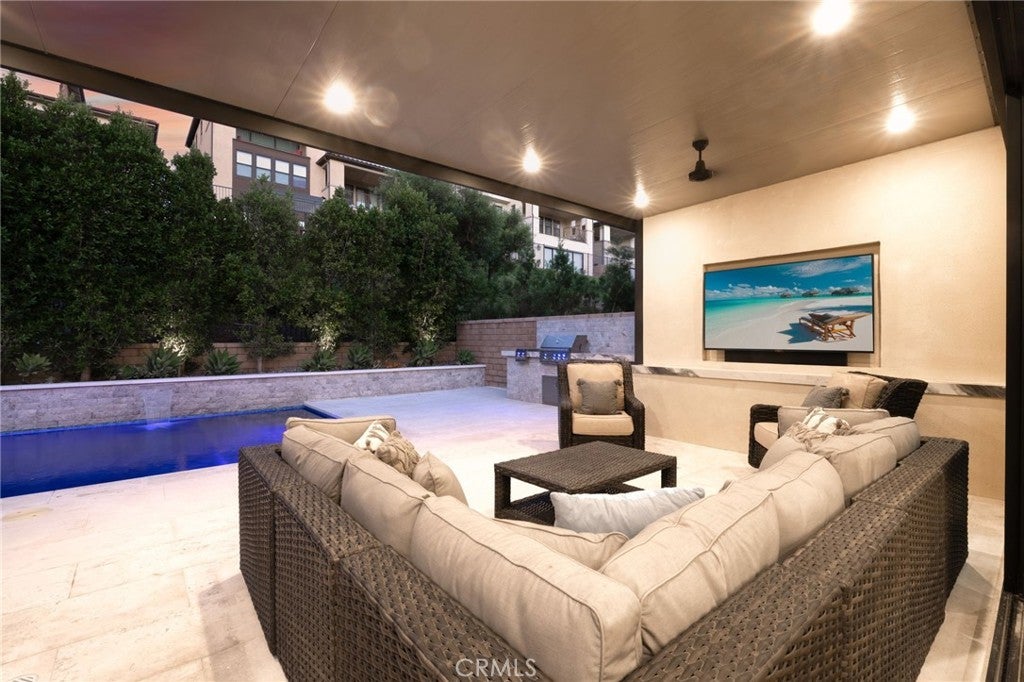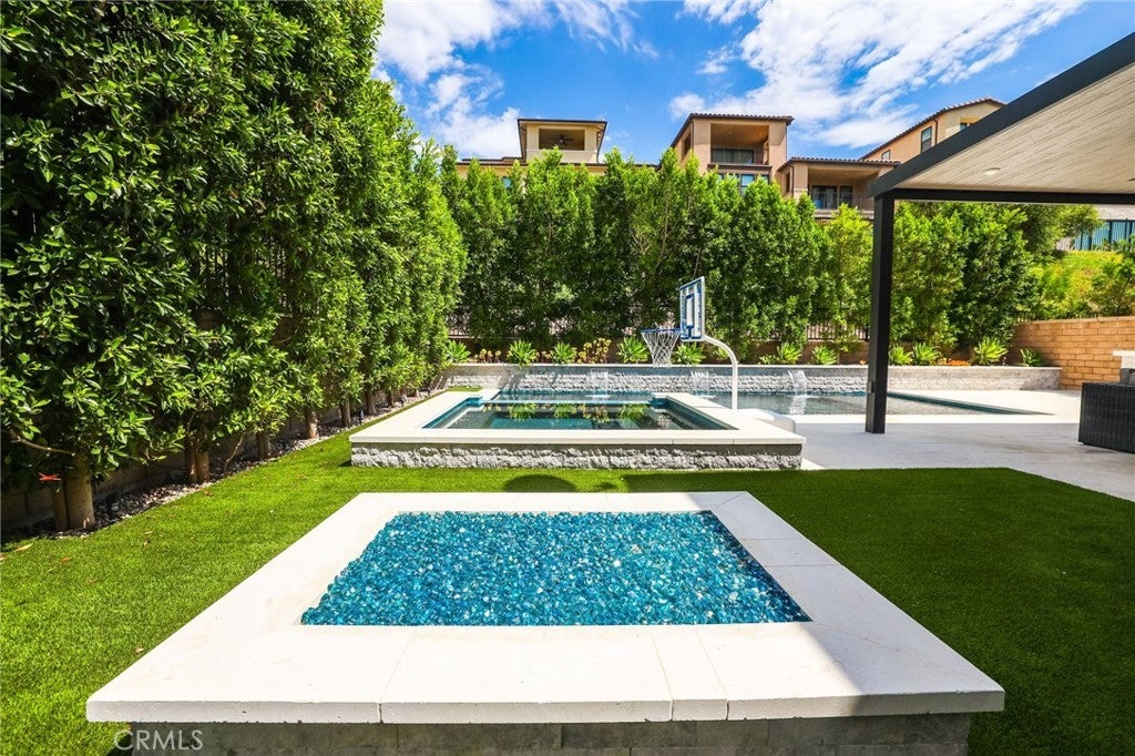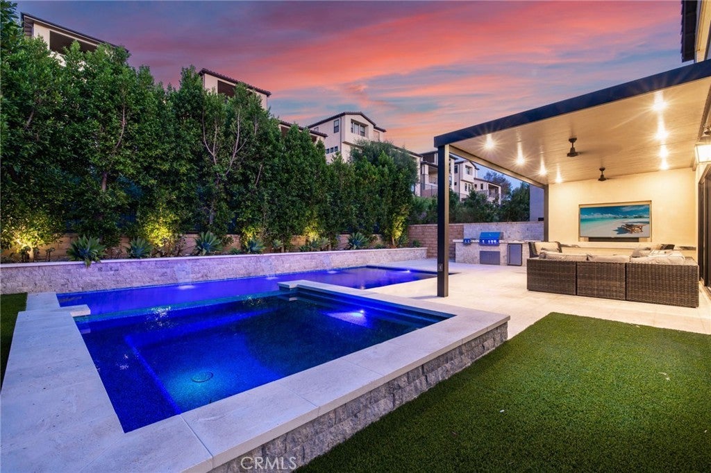 Incredible, One-Of-A-Kind Resort Style Pool Home, Fully Upgraded, Premium Lot Location, FULLY PAID FOR SOLAR! Sophistication and Elegance are the Hallmarks of this Impeccably Designed Home featuring Stunning Upgrades in every direction. Upon entry the Upgrades and On-Trend designs are immediately noticed with Stunning White Oak Harwood Floors that run through the entire home, Gorgeous Custom Feature Walls and Soaring Ceilings allowing for an abundance of Natural Light to flood the home. The Spacious Great Room features a Custom Fireplace and Modern Mantle, Plantation Shutters, Designer Interior Paint, and Sliding Panel Doors that open to the Award Winning Backyard Oasis. The Stunning Chef’s Kitchen leaves nothing to the imagination with Stainless Steel Appliances including Built-In Stainless Steel Refrigerator, Custom Designer RH Pendant Lighting, Dual Tone Upgraded Quartz Countertops, Custom Artisanal Tile Backsplash, Beautiful Upgraded White Cabinets that stretch to the ceiling, Spacious Walk-in Pantry and Massive Center Island w/Bar Seating. Continue Outside and Prepare to be blown away by THE ENTERTAINERS DREAM BACKYARD. The Covered California Room offers the perfect Transition to the Backyard featuring 2 Ceiling Fans, Entertainment Nook with TV and Beautiful Porcelain Slab Mantle. Just beyond the California room sits the Stunning Pool and Jacuzzi w/ Pentair IntelliCenter Pool Spa Automation, Exquisitely Designed w/Pebble Tech Sheen, Limestone Decking, Waterfalls & Custom Pool Lighting. The Outdoor Upgrades also Include a Modern Fire Pit, Tropical Mature Lush Landscape, Custom Hardscape, Artificial Turf, and Spectacular Built-In Bar w/ Custom Artisanal Stone Design & Porcelain Slab. Vacation every weekend in your own backyard! The Downstairs Spacious Bedroom and Full Bathroom round out the first floor. Upstairs you will find the Highly Desirable Multi-Purpose Loft/Media Room, The Convenient Upstairs Laundry and Four additional Bedrooms including the Spacious Primary Retreat. Start Your New Wellness routine in the Primary Suite Retreat with Lush Backyard Views from your Spacious Outdoor Enclave. The Primary Bath Stuns w/ upgraded Cabinets and Counter Tops, Soaking Tub, Upgraded Walk-In Shower, Designer Tile and Spacious Walk-In Closet...Additional Custom Luxury Upgrades Include Plantation Shutters, Custom Front Yard Hardscape & Drought Tolerant Landscaping, Spacious 2 Car Garage w/ Storage & Epoxy Flooring and Extended Driveway. This one is special!