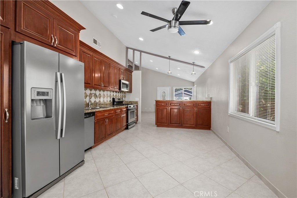 Welcome to this stunning single-story home nestled in one of the most desirable and well-established neighborhoods of Cordova Vista in Mission Viejo, Perfectly situated on a quiet cul-de-sac. This turnkey residence blends comfort, style, and functionality—making it an absolute dream for families and entertainers alike. From the moment you arrive, you’ll be captivated by the charming curb appeal, featuring a private front courtyard surrounded by a blooming rose garden that sets a welcoming tone. Step inside to discover a thoughtfully designed open floor plan with soaring ceilings, a cozy fireplace, and an abundance of natural light pouring in through dual-pane windows—creating a warm and inviting atmosphere throughout. The fully remodeled kitchen is a chef’s delight, featuring elegant travertine countertops, added cabinetry for extra storage, stainless-steel appliances and sink, and timeless neutral tones that complement any decor. Adjacent to the kitchen is a spacious dining area that seamlessly flows into an extended flex room perfect as a family room, playroom, home office, or media space. This well-appointed home offers three generously sized bedrooms, and additional space currently used as an office, all with attractive wood flooring. The updated bathrooms have been tastefully modernized with quality finishes, providing both style and function. Recessed lighting and designer touches throughout the home elevate its contemporary appeal. Additional features include: Home solar panels – enjoy energy efficiency and reduced utility costs, New HVAC/Heater system installed in 2020 – providing comfort year-round ;Two-car garage – with ample space for parking, storage, or a workshop Low HOA fees and NO Mello-Roos – offering excellent value. As a resident of this vibrant community, you’ll enjoy full membership to Lake Mission Viejo, where resort-style amenities await: swimming, boating, fishing, BBQ areas, scenic walking trails, boat rentals, two private beaches, summer concerts, and year-round events—perfect for enjoying the best of Southern California living. Whether you're looking to relax, entertain, or enjoy the outdoors, this home has it all. Don’t miss your opportunity to own a beautiful home in one of Mission Viejo’s most sought-after neighborhoods! Welcome home!