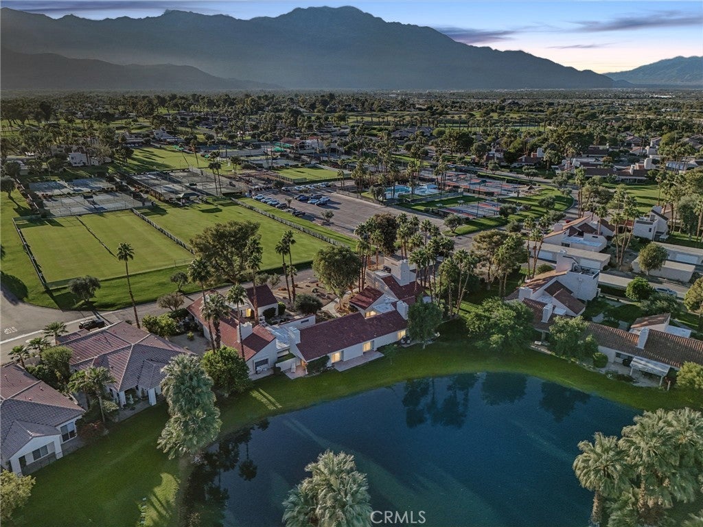 Lowest-priced lakefront entry into Mission Hills Country Club with detached 2 car garage! Welcome to 380 Wimbledon Drive — a beautiful 1 bedroom, 1.5 bath single level retreat perfectly situated along the lakefront in the heart of the prestigious Mission Hills Country Club. This 1,049 sq ft home exudes resort style sophistication with soaring wood beamed vaulted ceilings and an open concept layout that flows effortlessly onto multiple private patios, where walls of glass invite natural light and frame panoramic views of the serene lake and surrounding mountains. Inside, enjoy sun drenched great room with panoramic views from every direction and anchored by a cozy stone fireplace and a designer kitchen featuring stone countertops, and premium stainless steel appliances — perfect for entertaining or unwinding in style. The spacious primary suite provides a peaceful escape with vaulted ceilings and tranquil lake views just steps from your bed. Beyond the home, Mission Hills Country Club is truly a golfer’s dream and an active lifestyle haven, boasting 54 holes of championship golf, the No. 1 USTA tennis facility in the nation, world class pickleball and croquet courts, plus a state of the art fitness center, resort pools, rejuvenating spa services, and vibrant dining and social venues. Whether you’re seeking a full time residence, vacation retreat, or investment property, 380 Wimbledon Drive offers the perfect blend of comfort, elegance, and resort living in one of Rancho Mirage’s highly sought after communities. Owner Financing is available!