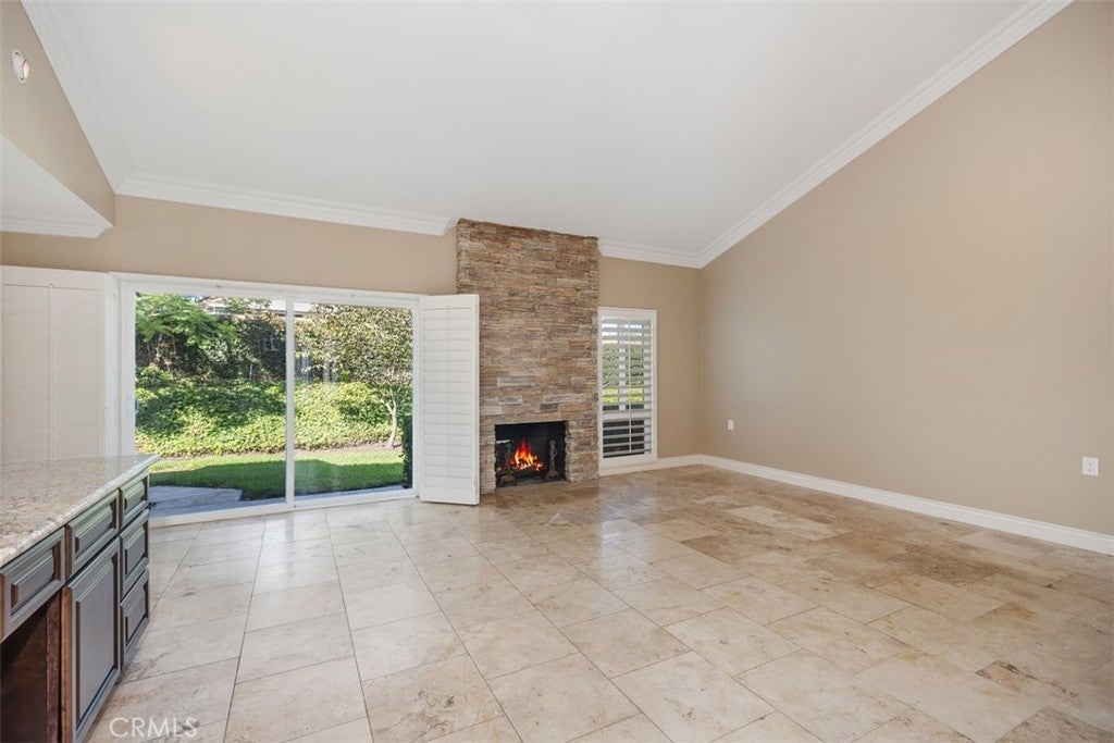 WONDERFUL SINGLE LEVEL DETACHED HOME IN SOUGHT AFTER GATE 11! This popular Villa Terraza offers two bedrooms, two baths, and an attached two-car garage with direct access through a large private courtyard finished in tile and framed by a pergola. A quiet interior setting opens to a lush greenbelt for extra privacy. Step inside to an open, light-filled living area with vaulted ceilings, crown molding, recessed lighting, and a lovely stacked stone fireplace. A long wall of custom cabinetry with a granite counter works perfectly as a serving bar, desk, or media space. Multiple sliders open to the covered back patio and greenery, ideal for morning coffee and easy entertaining. The upgraded kitchen is functional, featuring plentiful cabinetry, ample counter space, and a picture window overlooking the patio. It adjoins the dining area with plantation shutters and easy access to outdoor dining. The primary suite enjoys mirrored wardrobes, a slider to a private side patio, and a well-appointed bath with dual sinks and a granite countertop. The guest bedroom sits near the nicely updated hall bath with a stone shower and bench. Additional highlights include travertine-style flooring, wood floors in the bedrooms, smooth ceilings, central heat and air, inside laundry in the garage, abundant storage, and excellent curb appeal. Outdoor spaces you will love include the gated front courtyard, a peaceful covered back patio with a handy kitchen pass-through, and a sunny side patio off the primary suite. Add all this to the unmatched amenities of Laguna Woods Village, and you have a winning combination. Enjoy the 27-hole championship golf course and the 9-hole executive par three course, tennis, pickleball, paddle tennis, lawn bowling, two fitness centers, seven clubhouses, five swimming pools, an equestrian center, gardening areas, an art studio, a world-class woodshop, and more than 200 clubs and organizations. There is a free community bus service to nearby shopping, an economical RV storage area for easy RV parking, and you are approximately 6 miles from beautiful Laguna Beach. Country club living at its best and the best hidden secret in Orange County. SEE 3D TOUR