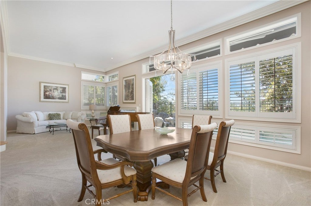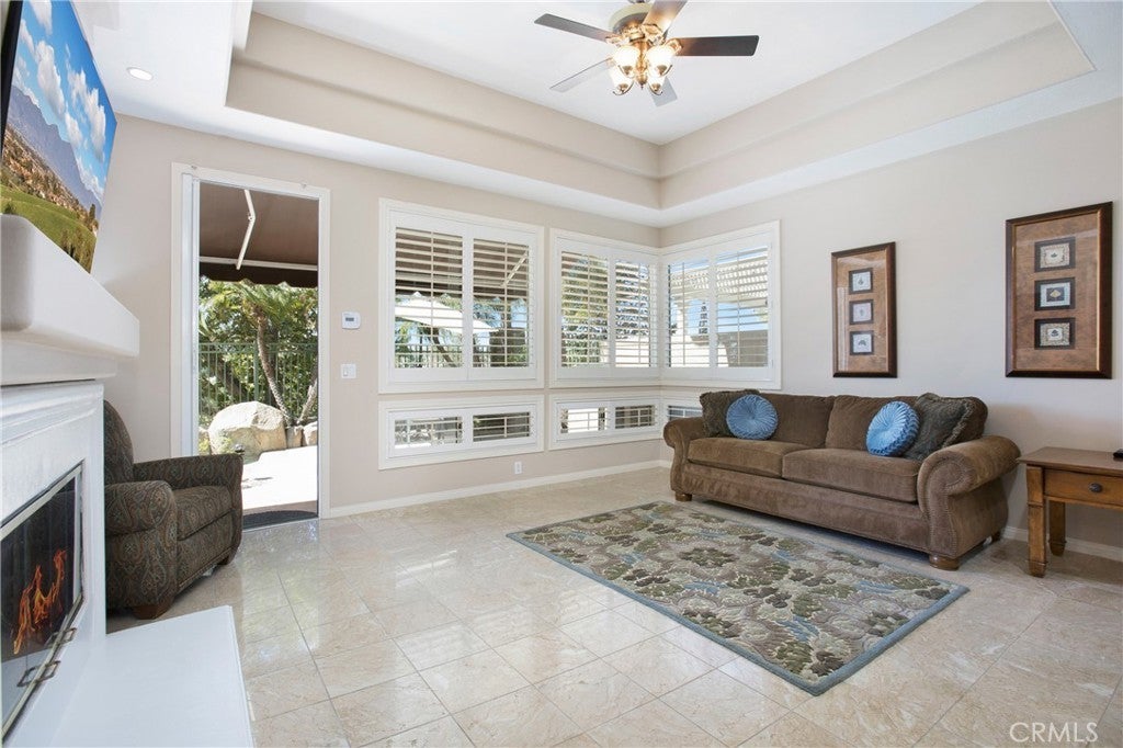 MAJOR PRICE IMPROVEMENT !!! Be the “DESTINATION HOME” for family & friends while enjoying California Living at its finest in this Resort Style entertainers home. This home is located in the Prestigious Gated Community of Dove Canyon nestled against the Saddleback Mountains & perfectly positioned between 2 Fairways of the Private Jack Nicklaus Designed Golf Course. This stunning 5-Bedroom + Loft and 5 Bathroom home offers an open & airy floor plan embracing a blend of comfortable everyday living as well as the luxury of fabulous entertaining. Entering through the Double Doors to the Grand Foyer you are welcomed by the abundance of windows & French Doors that enhance the interior with warm sunshine all day. UPGRADES include New Carpet, Marble Floors, Fresh Neutral Paint, Shutters, Ceiling Fans, Newer A/C, Furnace, Water Heater, Water Softener System & SOLAR. The high ceilings in the living & dining rooms are accented with a Fireplace, Custom Paint, Shutters & French Doors. The Gourmet Kitchen has a generous sized Breakfast Nook, medium Oak Cabinets, Designer Tile, Center Island & ample counter space for creating your favorite culinary delights. The kitchen looks out to the F/R that has a Fireplace & French Door to the backyard. The Main Floor 5th bedroom has a walk in closet & is currently being used as a den complete with a cozy Fireplace & Custom Built-ins. The beautiful Sweeping Staircase leads to the Spacious Primary Bedroom with High Ceilings,Shutters, Ceiling Fan, Large Retreat area, Dual Sided Fireplace & Private Balcony with view of the golf course. The Primary Bathroom has Dual Sinks + a Vanity, Separate Glass Enclosed Shower, Oversized Jacuzzi Tub & Huge Walk-In Closet. There are 3 large secondary bedrooms each with their own bathrooms along with a Loft that is currently being used as an office with Custom Built ins. The Resort Style Backyard offers a sparkling Pool & Spa, New Built-in BBQ, Retractable Awnings, Lush Landscape and Views of the Golf Course. Enjoy life in the exclusive Dove Canyon Community featuring 24-hour Guard-Gated entry, private pool/spa, tennis/ pickleball courts, sport court, playground & miles of nature trails for hiking and biking. There are also several membership opportunities at the Jack Nicklaus Signature Dove Canyon Golf Club for those golf enthusiasts. Low tax rates, easy access to shopping, restaurants, & award-winning schools. Don't miss your opportunity to live in this turnkey home & this fabulous community.