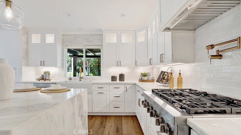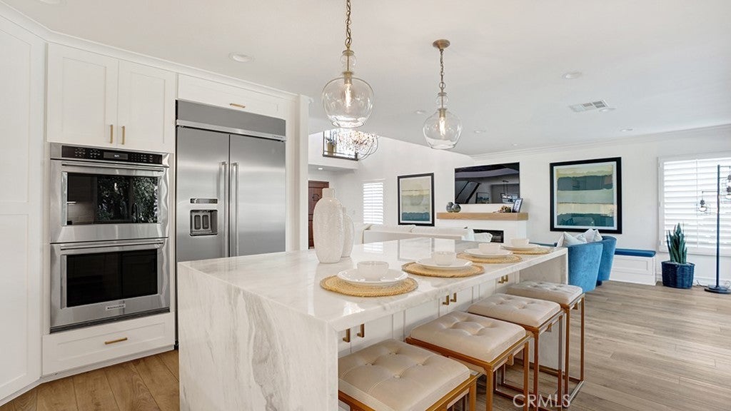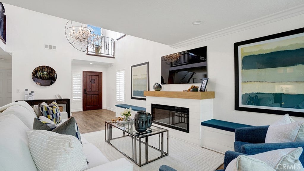 Stunning single family home nestled in the sought-after hillside community of Foothill Ranch. Ideally located on a quiet cul-de-sac, this corner-lot property boasts an expansive yard and a generous three-car garage. Thoughtfully upgraded inside and out, this home combines modern style, functionality, and comfort. Inside, you’ll find Provenza Moda’s First Crush luxury GreenGuard-certified vinyl flooring, new paint, and a beautifully remodeled downstairs half bath and kitchen. The open-concept kitchen has been fully renovated with built-in appliances, quartzite countertops, and recessed lighting, flowing seamlessly into the living space. In the living room you will find a custom fireplace with built-in benches and storage. A striking new chandelier adds elegance, while the 12-foot sliding glass door brings in abundant natural light, the essence of indoor-outdoor living. Upstairs offers three spacious bedrooms plus a versatile loft, ideal for an office, playroom, or additional living space. The home also features a new AC and furnace, ensuring comfort year-round. The backyard is a true entertainers’ delight, complete with pavers, a custom BBQ island with sink, gas range, and a cozy fire feature—perfect for gatherings with friends and family. Car enthusiasts and hobbyists will appreciate the meticulously upgraded garage, featuring new flooring, fresh paint, custom cabinets, a slat wall with quartz countertop, attic storage with lighting, and a built-in Tesla charger. This exceptional home truly has it all—modern upgrades, indoor-outdoor living, and thoughtful details throughout, making it move-in ready and one of a kind.