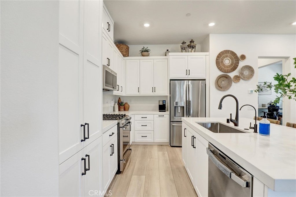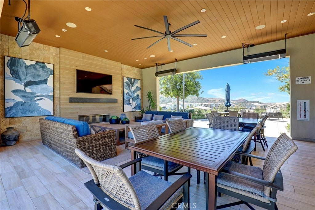 This single level designer-inspired, impeccably maintained, this stunning residence in the resort-style community of 55+ Gavilan Enclave of Rancho Mission Viejo. This open-concept home blends elegance, and comfort. At the heart of this home lies a stylish kitchen, showcasing sleek quartz countertops and premium Stainless steel appliances, seamlessly opening to the great room, an inviting space for family gatherings. The spacious primary suite offers a spa-like ensuite with dual sinks, a large shower and a custom-designed walk in closet. Guests will enjoy their own comfortable Haven in the second bedroom with a full bath. Additional highlights include a striking stacked wall framed sleek linear fireplace, paid solar, kitchen water filter, plantation shutters throughout, additional cabinetry. Beyond the home, you'll enjoy a vibrant, resort-style lifestyle with exclusive access to private Gavilan 55+ amenities including The Perch, The Hacienda, The outlook, The BBQ Barn, and The Getaway. Stay active and connected with a state -of-art fitness center, social lounges, and when the grandkids visit? You'll have full access to Rancho Mission Viejo award-winning all-ages amenities, arcade, community farms, fitness centers, indoor basketball gym, putting green, Sports park, tennis and pickleball courts, parks, and events that make this community unlike any other. There is lake access by trail, just at the end of the cul-de-sac one house down.