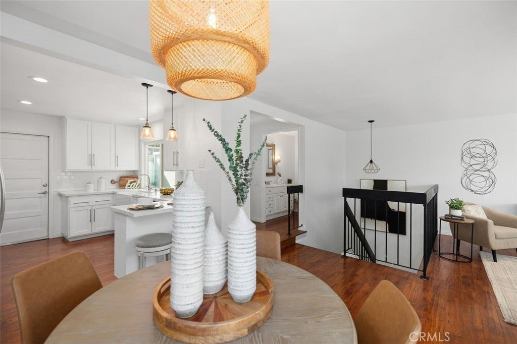 PRICE REDUCTION: Welcome to 23446 Caminito Salado, a beautifully remodeled end-unit home where modern style meets everyday comfort. Tucked away for privacy with greenbelt views, this residence offers the perfect balance of retreat and convenience. From the moment you walk through the door, the open floor plan draws you in with an abundance of natural light, luxury vinyl flooring, recessed lighting, and sleek modern sliding glass doors that enhance the home’s stylish flow. The heart of the home is the chef’s kitchen, thoughtfully designed with stainless steel appliances, quartz countertops, a farmhouse sink, and new cabinet doors—perfect for everything from a quiet morning coffee to preparing a dinner party with friends. Downstairs, both bedrooms are spacious and light-filled, featuring mirrored closet doors and ample storage. The bathrooms have been fully remodeled with upgraded showers and contemporary finishes, giving them a spa-like feel. This two-level floor plan, with no neighbors above or below, is designed for both privacy and functionality. One enclosed garage and an enclosed parking space. Details like shaker panel doors, an updated water heater, and an upgraded HVAC system ensure peace of mind, while the enclosed garage and attached parking provide everyday convenience. Step out onto your private view deck and take in the serene setting of trees and open greenbelt—a perfect spot to unwind, read, or entertain guests. Life at Caminito Salado also comes with the perks of resort-style living. Enjoy two sparkling pools, relaxing spas, a fully equipped gym, clubhouse, playground, and BBQ areas—all just steps from your front door. Whether you’re looking for a quiet retreat, a vibrant social atmosphere, or the perfect place to entertain, this home delivers it all. Beautifully updated, thoughtfully designed, and ideally located, 23446 Caminito Salado is ready to welcome you home.