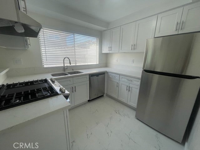 OCEAN BREEZE ALL DAY LONG: REMODELED 1 BEDROOM/ 1 BATH APARTMENT. UPSTAIRS UNIT. INCLUDES 1 CAR DETACHED GARAGE. ON QUIET CUL-DE-SAC. NEW KITCHEN APPLIANCES, NEW BATHROOM, CEILING FANS THROUGHOUT. LARGE BEDROOM, NEW LAMINATE FLOORS THROUGHOUT, NO CARPETING, KITCHEN COMPLETELY REMODELED WITH QUARTZ COUNTERS AND EAT IN BAR. LOTS OF STORAGE, EXCELLENT LOCATION, COMMUNITY PARK/ ELEMENTARY SCHOOL NEARBY, CLOSE TO FREEWAYS, SHOPS AND RESTAURANTS AND APPROXIMATELY 15 MINUTES TO BEACH. NEW FRIDGE INCLUDED, NO INTERIOR STEPS, SCREEN DOOR, COMMUNITY LAUNDRY DOWNSTAIRS, ONE GARAGE SPACE AND ONE ASSIGNED EXTERIOR SPOT. THIS UNIT IS IN A 4-PLX, ACCESS TO UNIT IS FROM THE NORTH SIDE OF THE BUILDING. STREET PARKING IS AVAILABLE TOO.