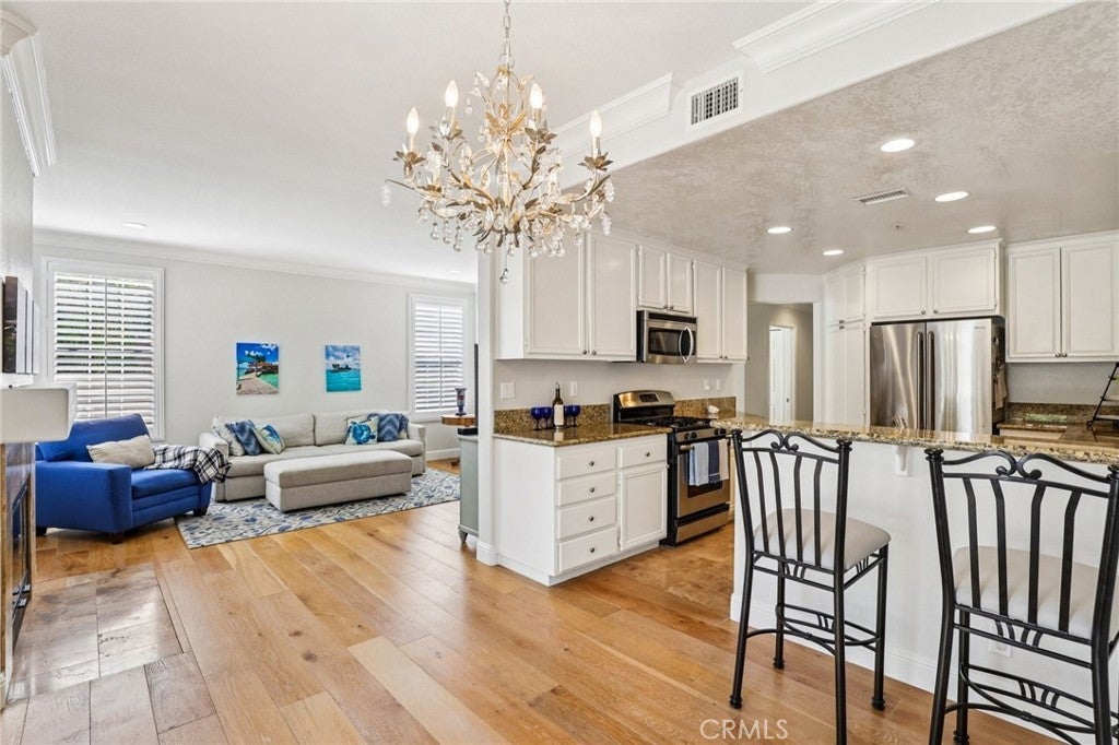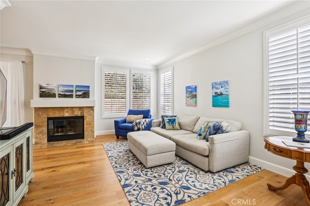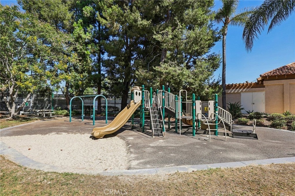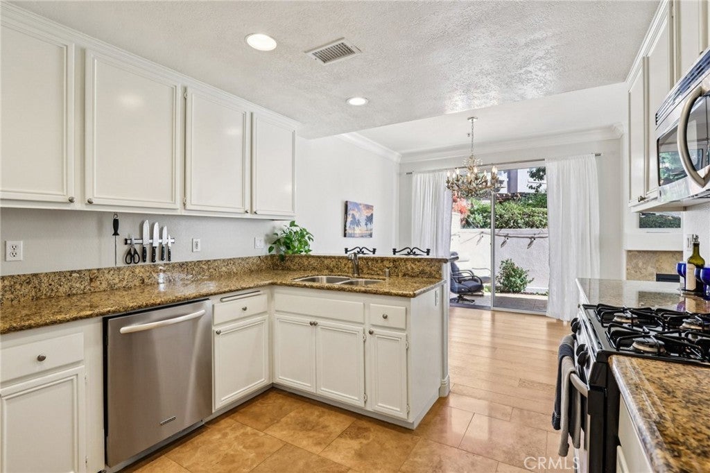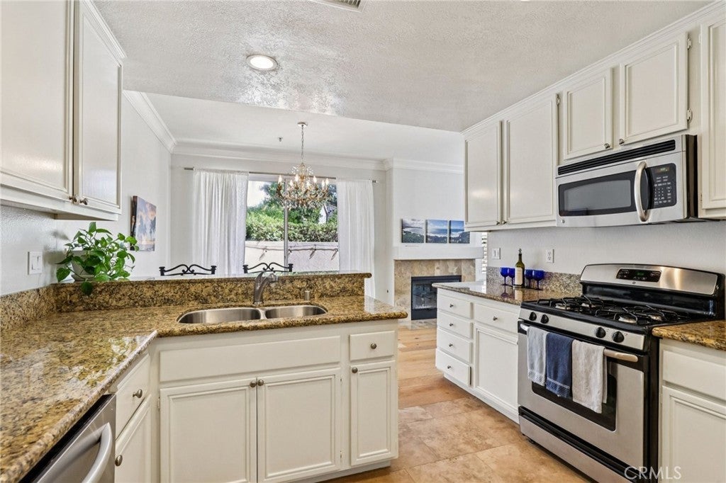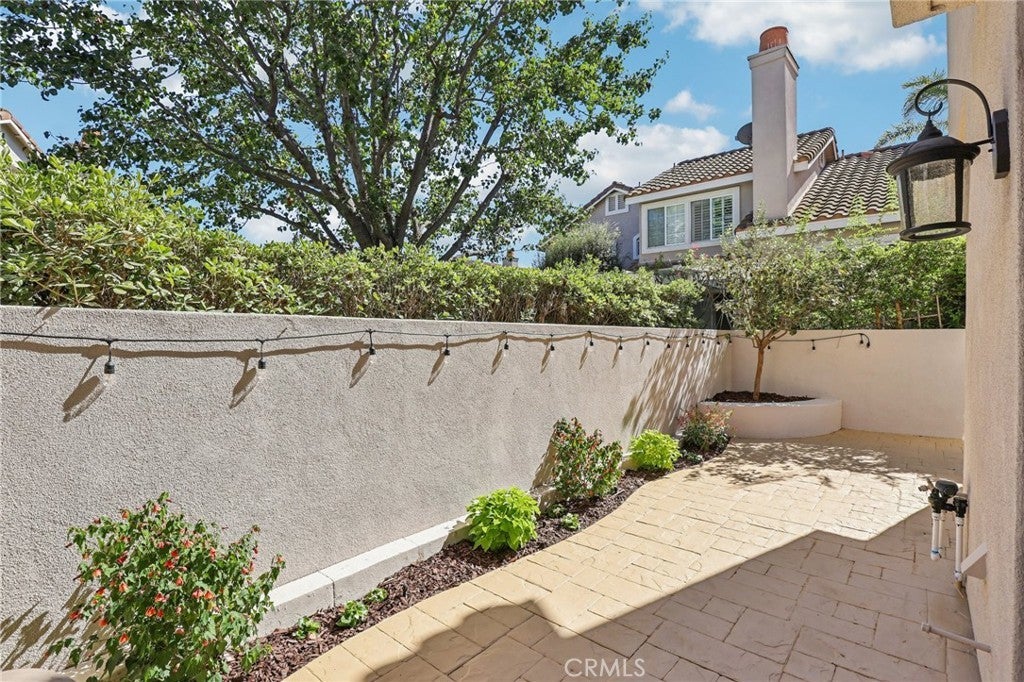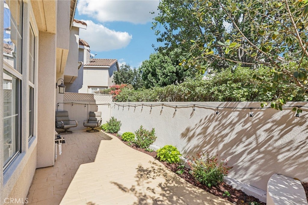 Welcome to this inviting end-unit townhome in the Ventana community of Tustin. With hardwood floors, the open floorplan feels bright and welcoming from the moment you walk in. The living room features a cozy stone-tile fireplace, and the kitchen offers granite counters, white cabinets, stainless steel appliances, and a breakfast bar that flows right into the dining area. Sliding doors open to the private backyard, creating a great space for BBQs, morning coffee, or relaxing evenings outdoors. A powder room and full-size laundry closet add everyday convenience on the main level. Upstairs, the primary suite has vaulted ceilings, a walk-in closet, and a dual-sink vanity in the en-suite bath. Two additional bedrooms share a hall bath and provide plenty of space for family, guests, or a home office. The attached two-car garage is finished with built-in storage. The wraparound backyard is upgraded with stamped epoxied concrete and low-maintenance landscaping, giving you a private outdoor retreat. Plus, you’ll enjoy access to Greenway Park with its pool, spa, tennis courts, tot lot, and picnic area—perfect for staying active or connecting with neighbors.