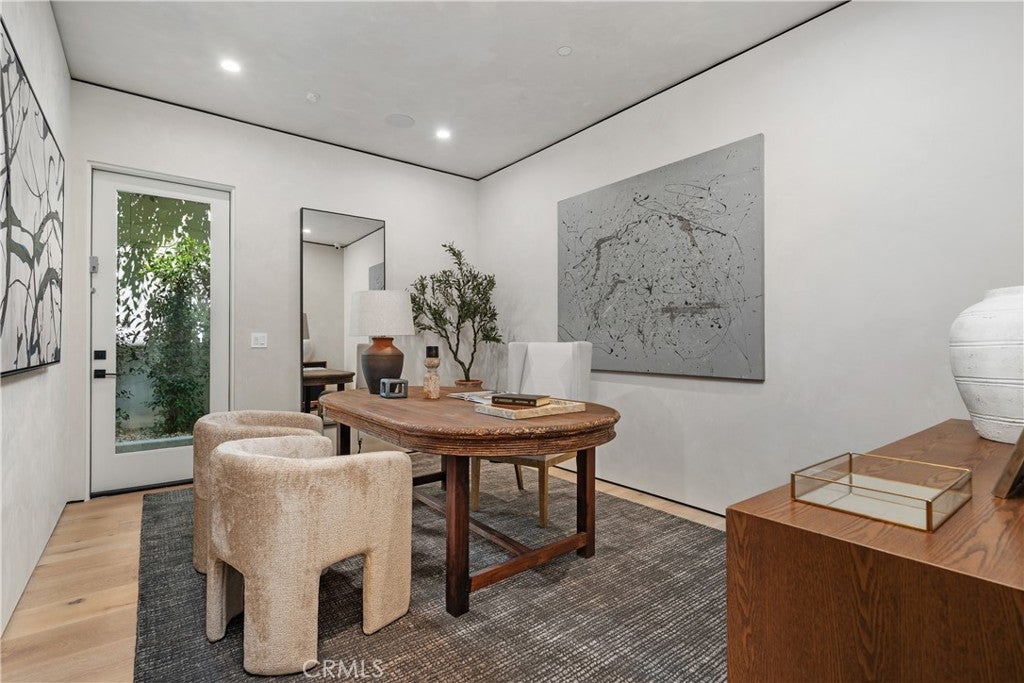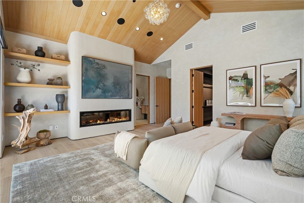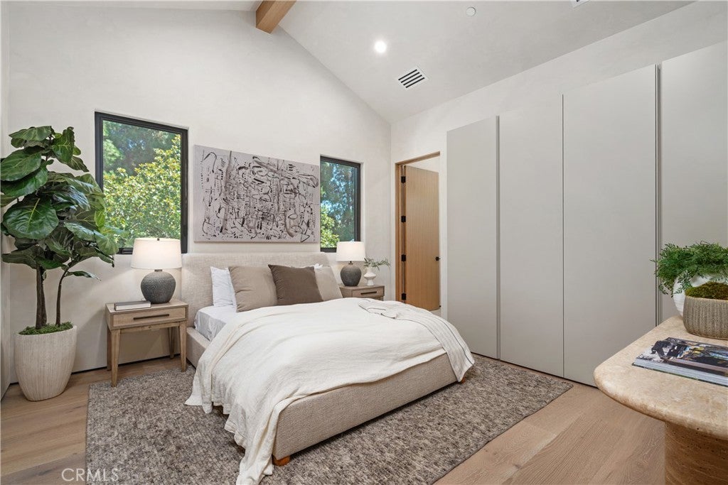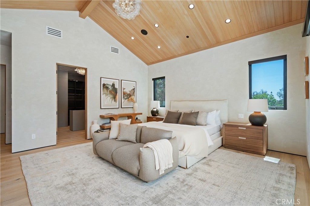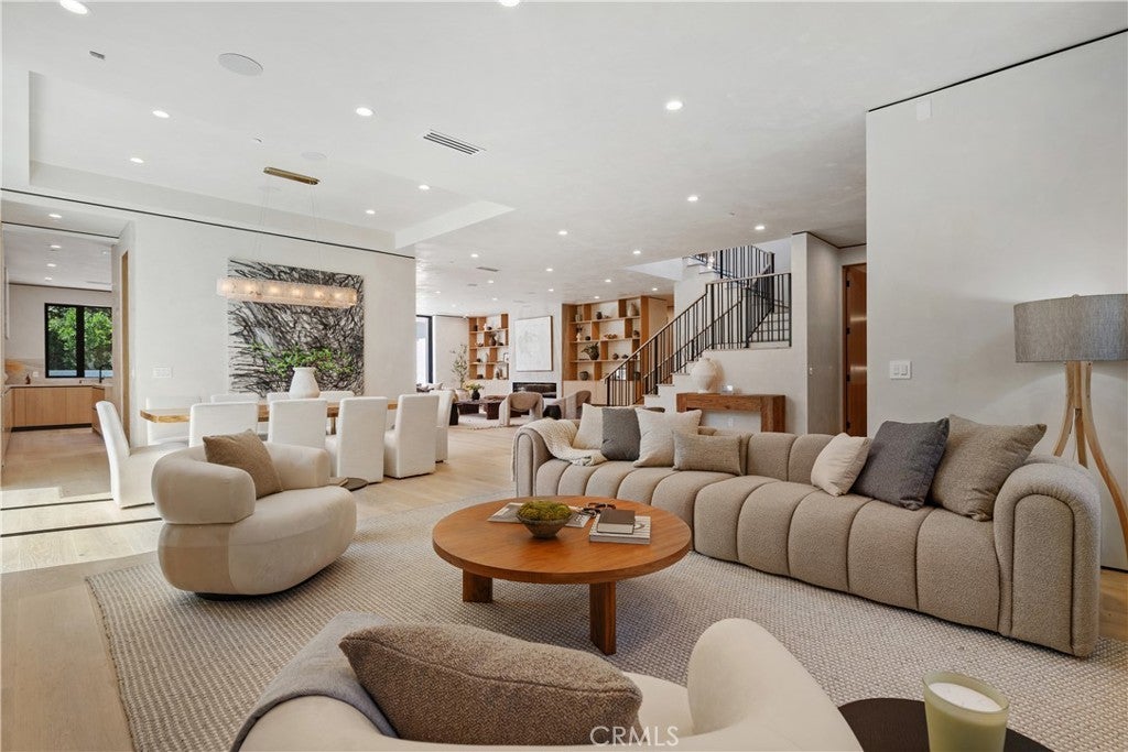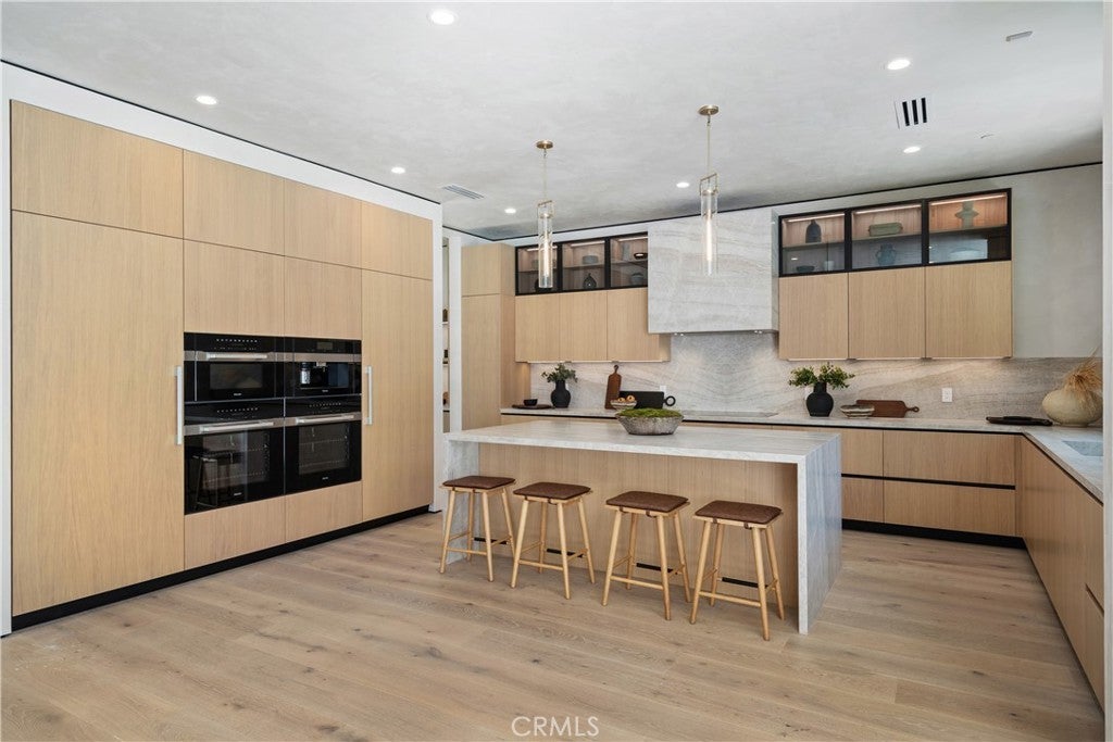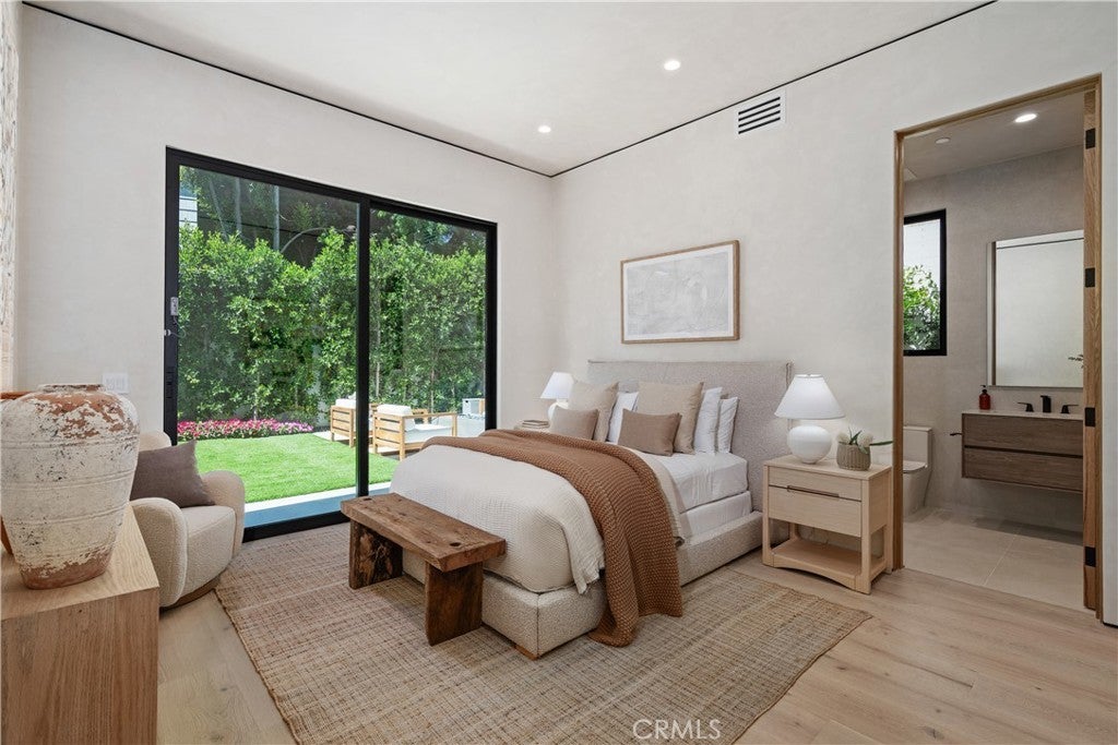 Step into a world of refined luxury and warmth in this stunning new construction just blocks from Bel Air. This 5-bedroom, 5-bathroom smart home, complete with a private theater, dedicated office, and a floor-to-ceiling glass wine room, blends modern sophistication with timeless comfort designed for grand entertaining and intimate family living. From the moment you enter, you’re greeted by soaring ceilings, oak doors, and natural light pouring through expansive windows and sliding bi-fold doors, creating seamless indoor-outdoor flow. Two distinct living rooms offer versatility: a formal space for elegant gatherings and a casual area that opens to the backyard. At the heart of the home is a chef’s kitchen featuring Miele appliances, double ovens, a built-in espresso machine, and a walk-in pantry. Just off the main living area, the glass wine room serves as a dramatic focal point. The primary suite is a sanctuary with oak ceilings, a custom walk-in closet, and a spa-like bathroom with a two-person shower, soaking tub, dual vanities, and private balcony overlooking the lush backyard. Downstairs includes a guest suite with en-suite bath, dedicated office, and private theater room. Upstairs, four bedrooms provide ample space for family or guests. The entertainer’s backyard boasts a waterfall pool, jacuzzi, fire pit lounge, guest-accessible outdoor bath, and pocket doors t hat invite the outdoors in. This fully wired smart home features integrated media/sound system, underground electrical, and touch-screen controls throughout. Every detail is curated for comfort, elegance, and high-end living with Italian tile, travertine, and carefully selected materials elevating the home’s finish throughout. Located in one of Westwood’s most desirable neighborhoods, enjoy the elegance of Bel Air with the warmth of home.