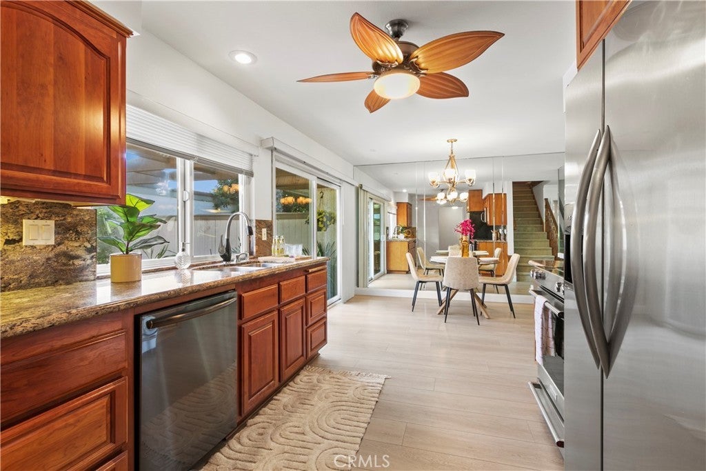 Dazzling 1547 sqft home nestled in the gated Hammon Place community! Featuring a first-floor bedroom, currently utilized as a family room/den, and a 3/4 bath, this two-level gem boasts ample space, with 3 large bedrooms and 2 more bathrooms upstairs, a showstopping kitchen with stainless steel appliances and granite counters, and fresh interior paint and brand new carpet throughout the entire upstairs. The backyard includes a brick-paved back patio that sizzles with a built-in barbeque grill, night-lit pergola, and lush greenery. Dive into relaxation with community perks like a sparkling swimming pool and a chic clubhouse. Just south of the 405 freeway and less than 10 minutes from Huntington and Seal Beach!