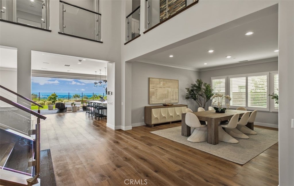 On one of the most sought-after streets in Orchard Hills’ Bella Vista enclave, 224 Clear Falls rises with distinction, offering a vantage few homes in the community can claim, rare views of the ocean, Catalina, and surrounding hills. Framed by the guard-gated serenity of Orchard Hills Estates and surrounded by lush avocado groves, this residence is a masterful balance of elegance, comfort, and enduring quality. Inside, a soaring two-story foyer and sweeping staircase create an unforgettable first impression, leading to a great room designed for both grand entertaining and everyday living. Glass doors open to an expansive covered outdoor lounge, where the extraordinary views become a natural extension of the home. The gourmet kitchen dazzles with its center island and wrap-around breakfast bar, bright dining nook, walk-in pantry, and the coveted secondary kitchen that makes hosting effortless. The primary suite is a sanctuary of its own, boasting a private view deck, dual walk-in closets, and a spa-inspired bath with Roman tub and luxe shower. Complementing the primary suite are four secondary bedrooms, each with ensuite baths, including one conveniently located on the main level for guests or multi-generational living. A spacious bonus room connects to a covered deck, while a refined home office and welcoming drop zone add versatility to the thoughtful floor plan. Meticulously maintained and enhanced with a rare four-car garage, this home is a jewel within one of Irvine’s most prestigious guard-gated communities. Just minutes from Irvine Spectrum, Tustin Marketplace, and major freeways, 224 Clear Falls embodies a lifestyle defined by prestige, serenity, and views unlike any other in Orchard Hills.