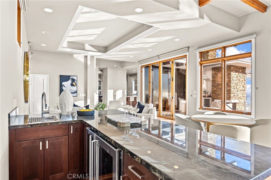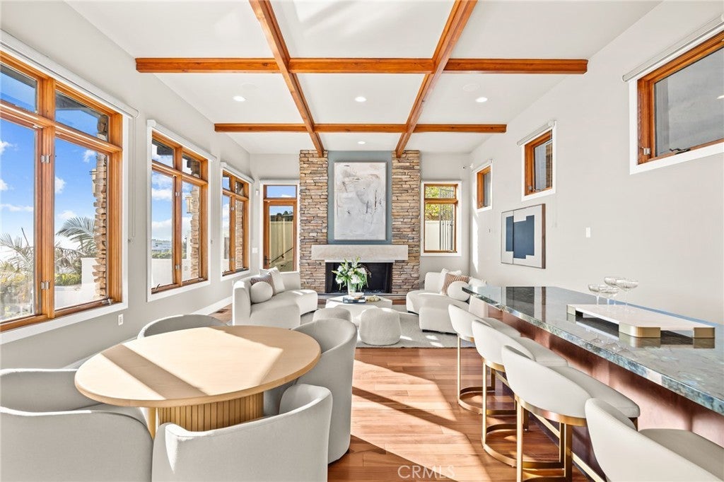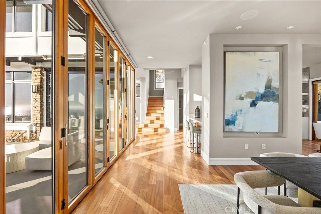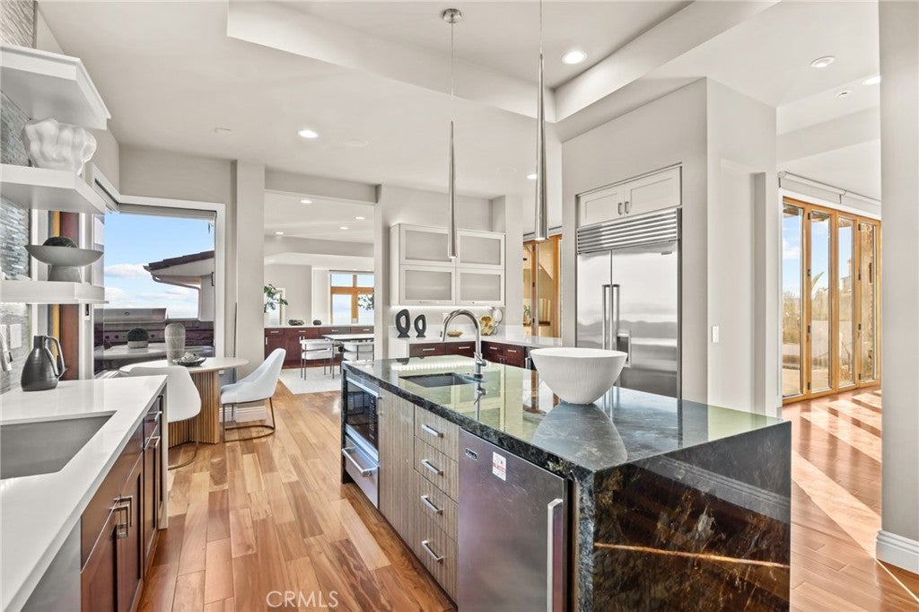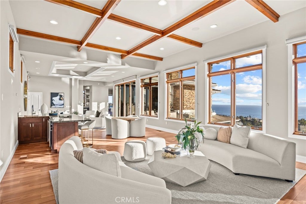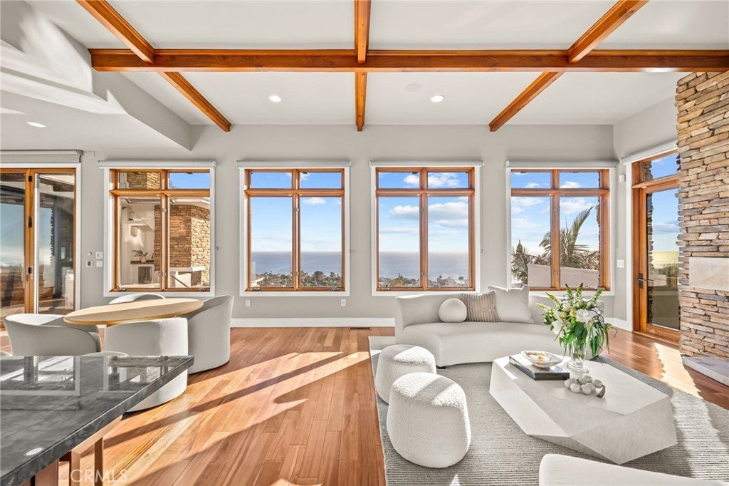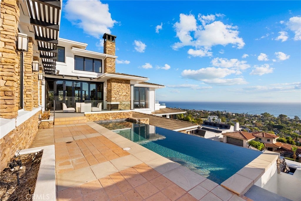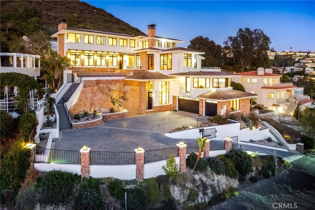 Perched in one of the world’s most celebrated coastal destinations, this rare estate-sized residence in Laguna Beach offers a lifestyle of unmatched luxury and breathtaking beauty. Just blocks from the beach and the vibrant Village, the home commands sweeping panoramic views of Catalina Island and iconic Main Beach—an extraordinary vantage point few properties can claim. Spanning over 6,000 square feet of refined living space, this gated estate rests atop a generously elevated one-third acre lot, designed to maximize privacy and showcase the stunning seascape. The exterior features an infinity-edge pool that seemingly spills into the Pacific, a three-car attached garage, and a multi-vehicle motor court, all framed by sculpted hardscape and a curated palette of coastal succulents. Inside, the home is a masterclass in architectural sophistication and custom craftsmanship. Highlights include: a gourmet chef’s kitchen with premium finishes, a glass elevator offering ocean views on every ride, exquisite 3/4" thick Brazilian cherry wood flooring throughout for timeless beauty and durability, a dedicated home theater for cinematic indulgence, and fireplaces in the living room, primary suite, and outdoor terrace—perfect for cozy evenings by the pool. The layout features three luxurious bedroom suites and a spacious office that easily converts to a fourth bedroom, offering flexibility for guests or remote work. Smart home amenities abound, including: integrated stereo speakers throughout, a sophisticated lighting control system, dual-zone heating and air conditioning, and comprehensive security and central vacuum systems. Powered by state-of-the-art solar panels, the residence delivers energy-efficient living while dramatically reducing utility costs. From the first light of dawn to the golden hues of sunset, this home captures the essence of Laguna Beach in every moment. Indulge in coastal elegance—where every detail is designed to elevate your lifestyle.