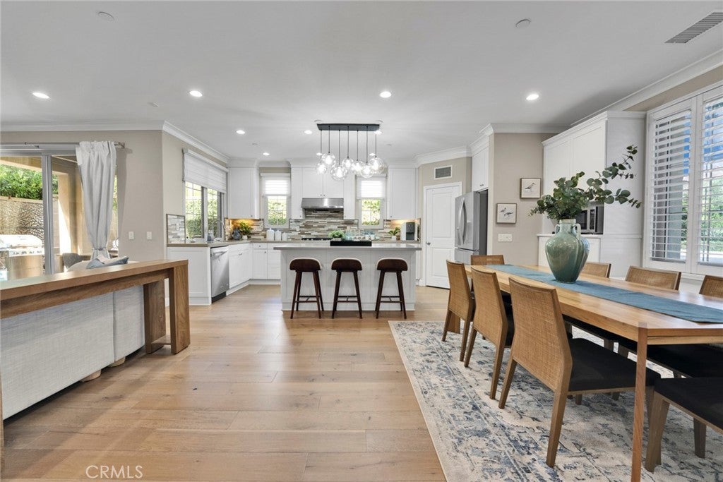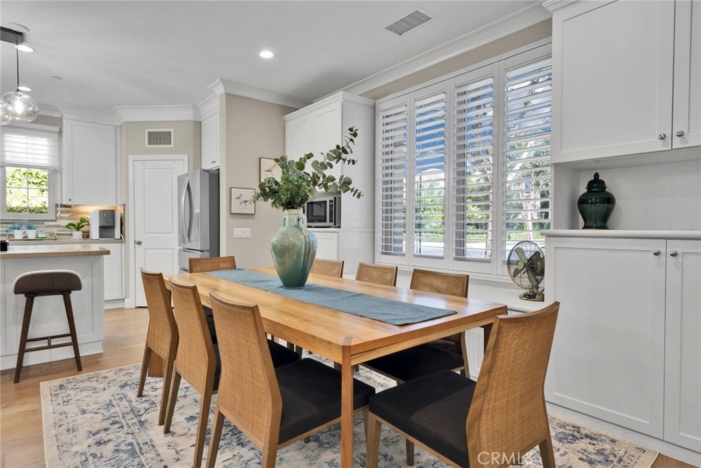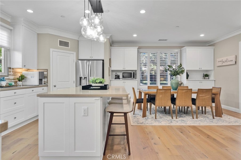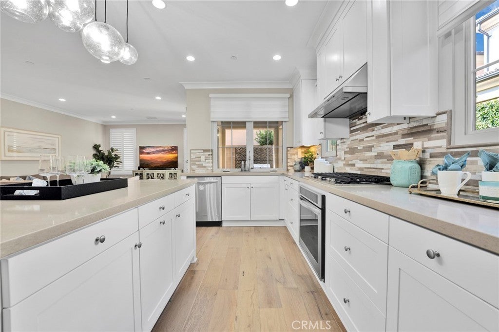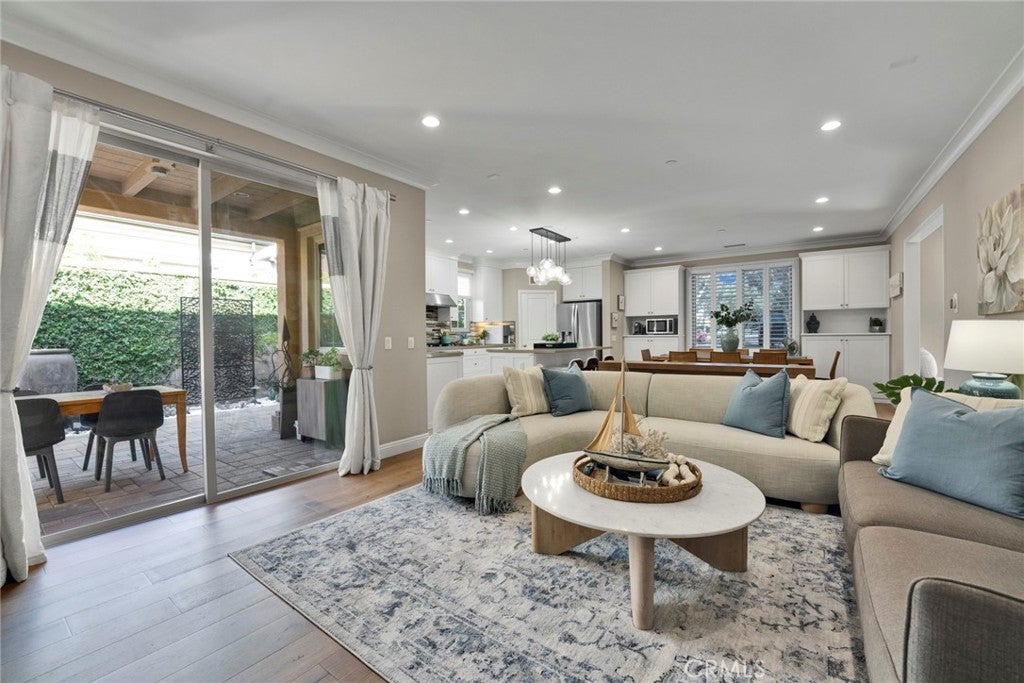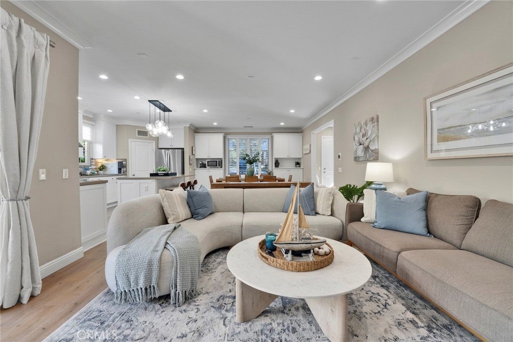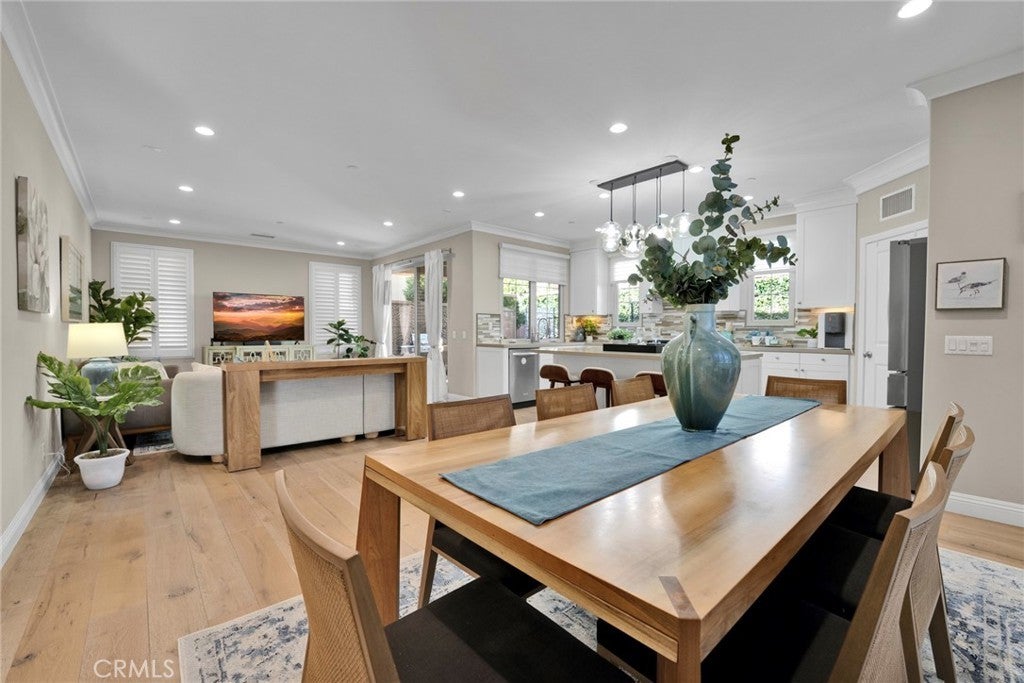 Welcome to 87 HANGING GARDEN, located in the heart of CYPRESS VILLAGE, IRVINE. This Bright and Inviting Corner Home offers 3 bedrooms, 2.5 bathrooms and a loft with a desirable SOUTHEAST-facing orientation, LOW HOA FEE and LOW MELLO-ROOS. This open-concept layout features a spacious living room with large sliding doors, recessed lighting and elegant pendant lighting, and a gourmet kitchen with a spacious chef's island and a walk-in pantry, perfect for entertaining and relaxing. The dining area that accommodates a large dining table is filled with natural light from the expansive windows, creating an ideal space for hosting guests. Over $70K in UPGRADES including White Custom Cabinetry, Engineered Wood Flooring, Premium Carpet, Plantation-style Wood Shutters, Elegant Crown Molding throughout the first floor, and White or Pewter-Framed Custom Mirrors in both upstairs bathrooms. The Beautifully Landscaped Backyard with a California Room provides the ideal space for barbecues and gatherings with low-maintenance care. Upstairs, the loft offers flexibility for a home office, gym, or additional living space. The Spacious Master Suite boasts abundant Natural Light from the expansive french doors, and a Luxurious En-Suite Bathroom with dual sink, a soaking tub, separate shower, and a walk-in closet. Two additional guest bedrooms and a bathroom, complete with dual sinks and a bathtub, providing both comfort and convenience. Located within award-winning Irvine school district, residents enjoy access to numerous community amenities including parks, trails, resort-inspired pools, playgrounds, sports courts and open spaces. This home is just minutes away from Cypress Village shopping center, Woodbury Town center, Irvine Spectrum, dining, renowned educational centers, and more, offering the perfect blend of luxury and convenience. Don't miss this opportunity to experience the best of Irvine living!