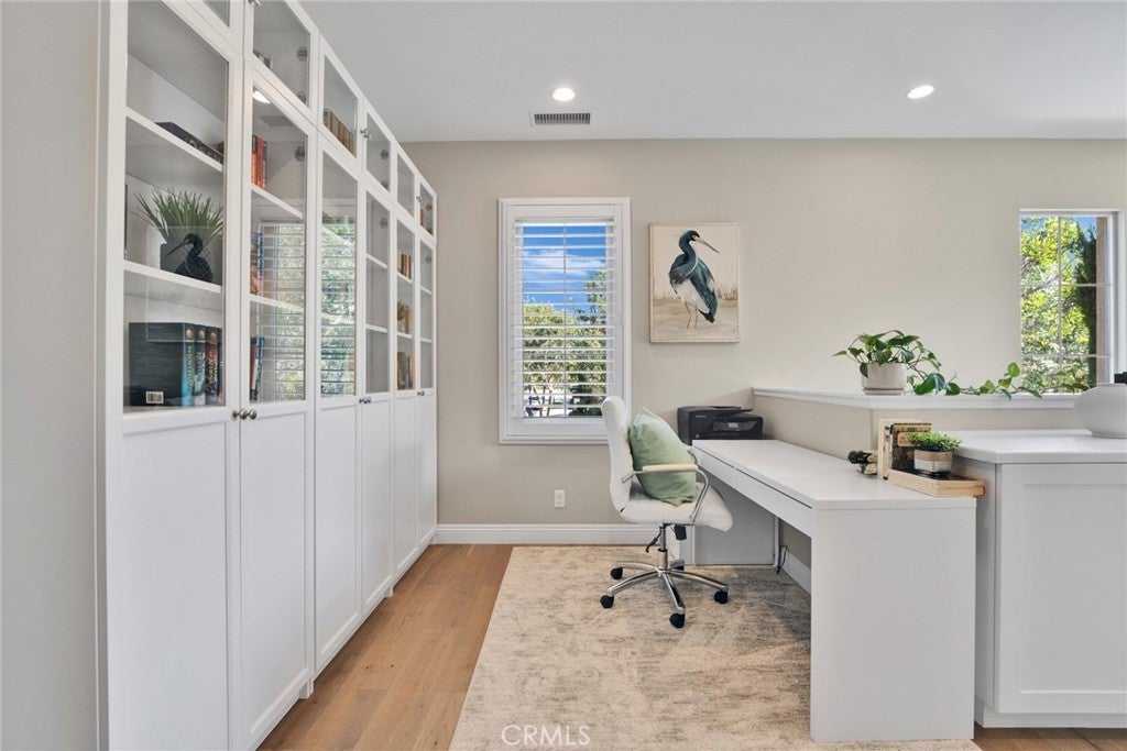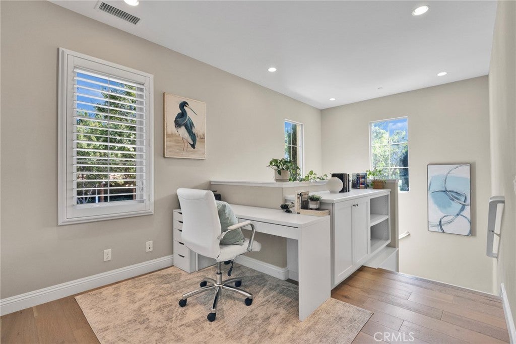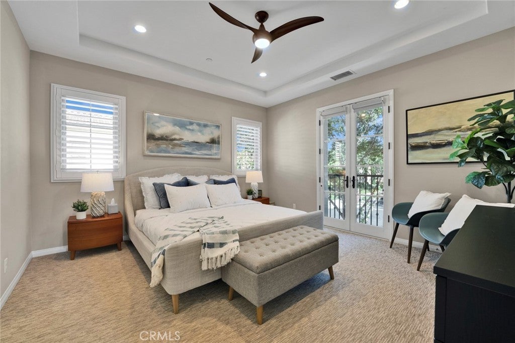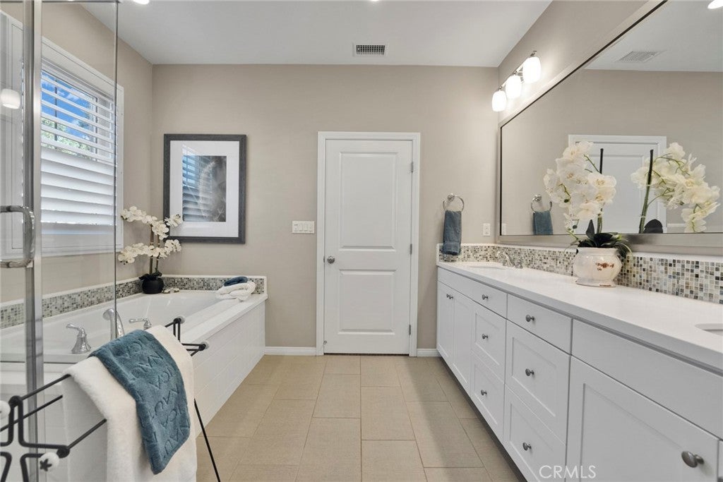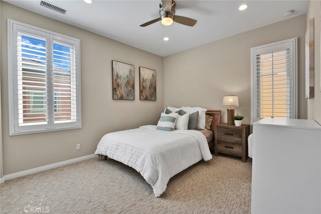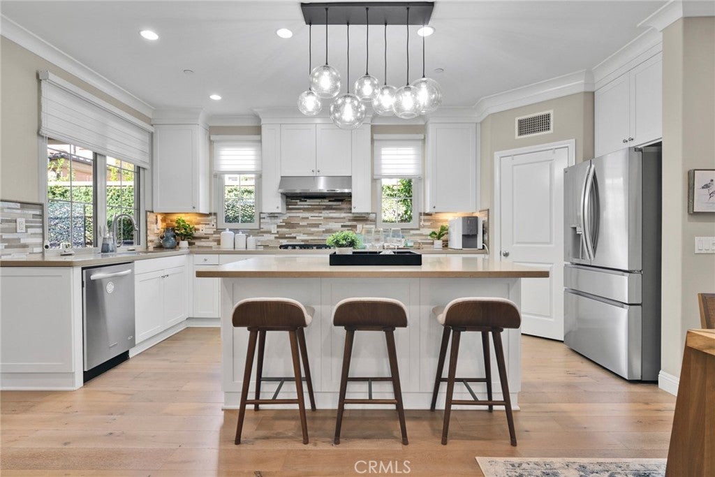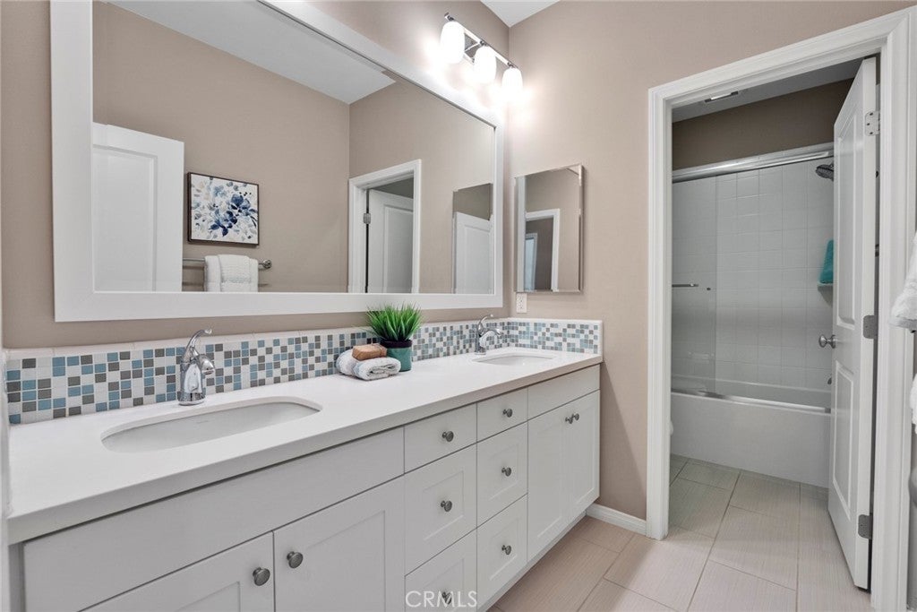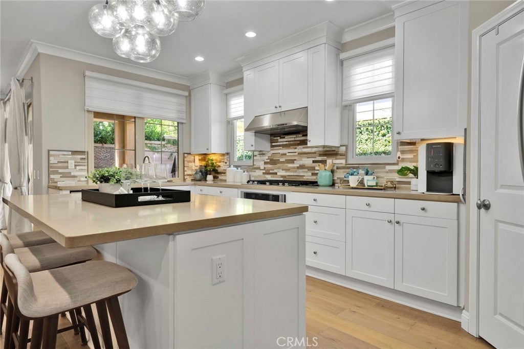 Welcome to 87 HANGING GARDEN, located in the heart of CYPRESS VILLAGE, IRVINE. This Bright and Inviting Corner Home offers 3 bedrooms, 2.5 bathrooms and a loft with a desirable SOUTHEAST-facing orientation, LOW HOA FEE and LOW MELLO-ROOS. This open-concept layout features a spacious living room with large sliding doors, recessed lighting and elegant pendant lighting, and a gourmet kitchen with a spacious chef's island and a walk-in pantry, perfect for entertaining and relaxing. The dining area that accommodates a large dining table is filled with natural light from the expansive windows, creating an ideal space for hosting guests. Over $70K in UPGRADES including White Custom Cabinetry, Engineered Wood Flooring, Premium Carpet, Plantation-style Wood Shutters, Elegant Crown Molding throughout the first floor, and White or Pewter-Framed Custom Mirrors in both upstairs bathrooms. The Beautifully Landscaped Backyard with a California Room provides the ideal space for barbecues and gatherings with low-maintenance care. Upstairs, the loft offers flexibility for a home office, gym, or additional living space. The Spacious Master Suite boasts abundant Natural Light from the expansive french doors, and a Luxurious En-Suite Bathroom with dual sink, a soaking tub, separate shower, and a walk-in closet. Two additional guest bedrooms and a bathroom, complete with dual sinks and a bathtub, providing both comfort and convenience. Located within award-winning Irvine school district, residents enjoy access to numerous community amenities including parks, trails, resort-inspired pools, playgrounds, sports courts and open spaces. This home is just minutes away from Cypress Village shopping center, Woodbury Town center, Irvine Spectrum, dining, renowned educational centers, and more, offering the perfect blend of luxury and convenience. Don't miss this opportunity to experience the best of Irvine living!
