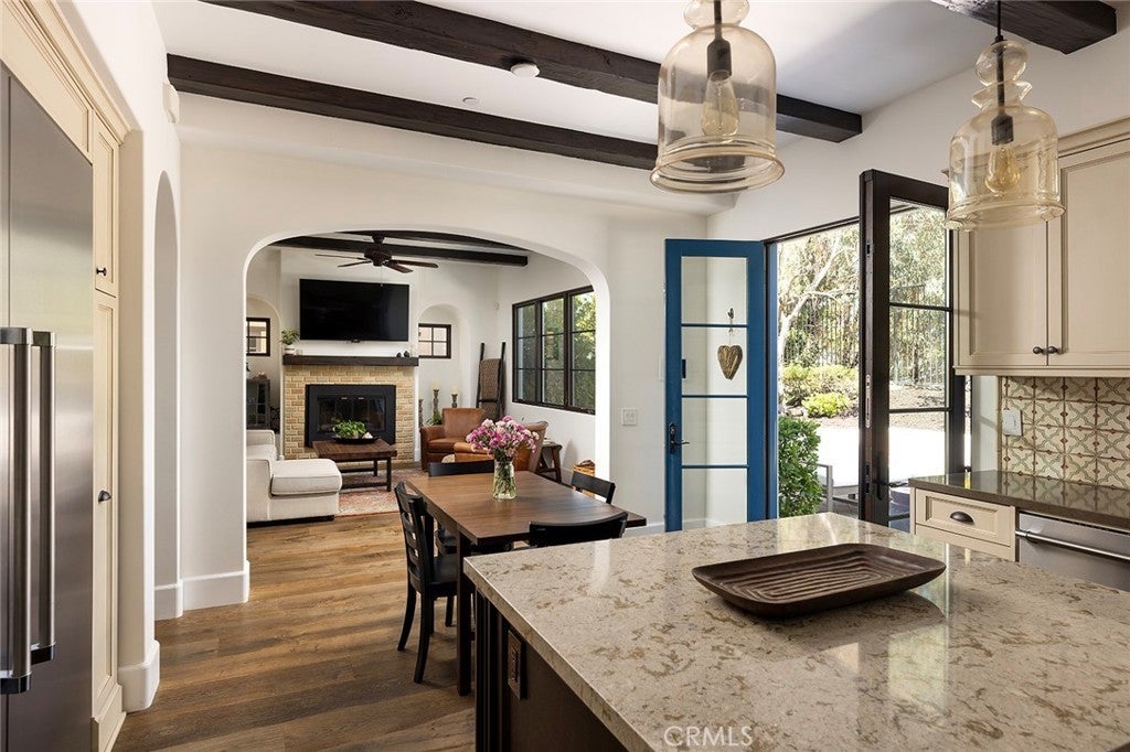 Set high above the shoreline in the private enclave of Ocean Del Rey Estates, 35209 Del Rey embodies the essence of coastal Mediterranean design—where craftsmanship, comfort, and endless views converge. One of just ten residences in this gated cul-de-sac, the estate spans approximately 3,944 square feet, offering 5 bedrooms and 5.5 baths across three levels of considered living. Inside, hardwood and limestone floors ground the interiors, while imported tile and Venetian plaster walls add texture and tone. Soaring ceilings, arched doorways, and hand-scraped beams frame rooms filled with California light. The kitchen—anchored by Thermador professional appliances—blends form and function, opening to the family room and breakfast nook for everyday gathering, while separate dining and living rooms offer space for celebrations and quiet evenings alike. The primary suite is both grand and intimate: vaulted ceilings, a fireplace, a private balcony for morning coffee, and a spa-like bath complete with dual vanities, soaking tub, and walk-in shower. Each secondary bedroom offers a retreat of its own, including Jack-and-Jill suites designed with comfort in mind. The lower level adds a rare dimension—an ensuite bedroom, additional bath, and private exterior access—perfect for extended family, guest quarters, or a secluded home office. Beyond the interiors, life unfolds outdoors. A private backyard invites gatherings with its built-in BBQ and shaded alcoves, while the rooftop deck becomes its own destination—complete with fireplace, panoramic Catalina views, and skies that move seamlessly from sunrise to sunset. From Fourth of July fireworks on the horizon to leisurely strolls to nearby beaches, shops, and parks, every moment is framed by the effortless rhythm of Capistrano Beach living. Modern conveniences enhance timeless architecture: smart home integration, zoned climate control, central vac, whole-house water filtration, and integrated sound. Spanish-tiled staircases, Mediterranean curves, and custom finishes ensure beauty is felt in both the smallest and grandest details. More than a residence, 35209 Del Rey is a vantage point, a retreat, and an invitation to inhabit the quiet luxury of life by the sea.