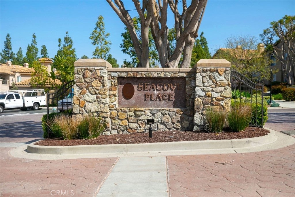 Welcome to Seacove Place, a beautifully updated 3-bedroom, 3 full bathroom residence that offers comfort, style, and convenience in one of the most desirable areas of the community. This first-time-on-the-market property features a light-filled downstairs, MAIN FLOOR bedroom/office, an open-concept kitchen (2021) that boasts white shaker cabinetry, quartz countertops, soft-close drawers, built-in recycling and trash drawer, and a 5-burner stove. The kitchen seamlessly flows into the spacious family room, creating an ideal space for entertaining. Upstairs, you’ll find two additional bedrooms and two full bathrooms, including a primary suite with soaring ceilings, ample closet space, and peaceful views of the greenbelt. Indoor-outdoor living is a breeze with a private enclosed patio that opens to a lush greenbelt away from busy streets. This perfect spot is ideal for relaxing or entertaining. Throughout the home, modern upgrades include recessed lighting, laminate wood flooring(2022), and RE-PIPED for peace of mind, an attached garage, an additional parking space (#109), and plenty of GUEST PARKING which was an upgrade option when the home was built. The community is beautifully landscaped and offers resort-style amenities, including a pool, spa, and HOA coverage for water and trash. With close proximity to shopping, dining, coffee shops, and just minutes from Laguna Beach. Along with easy access to the toll road, and freeways, this home seamlessly blends modern living with an unbeatable location.