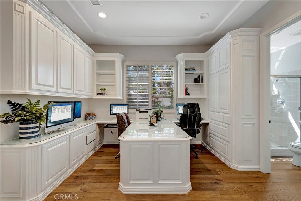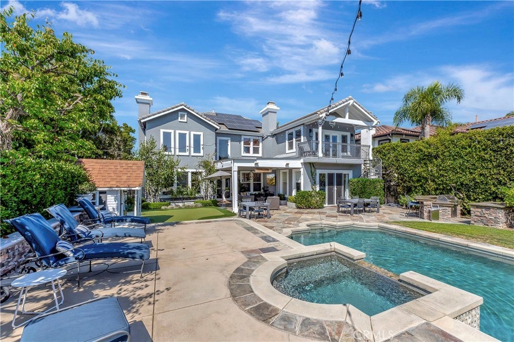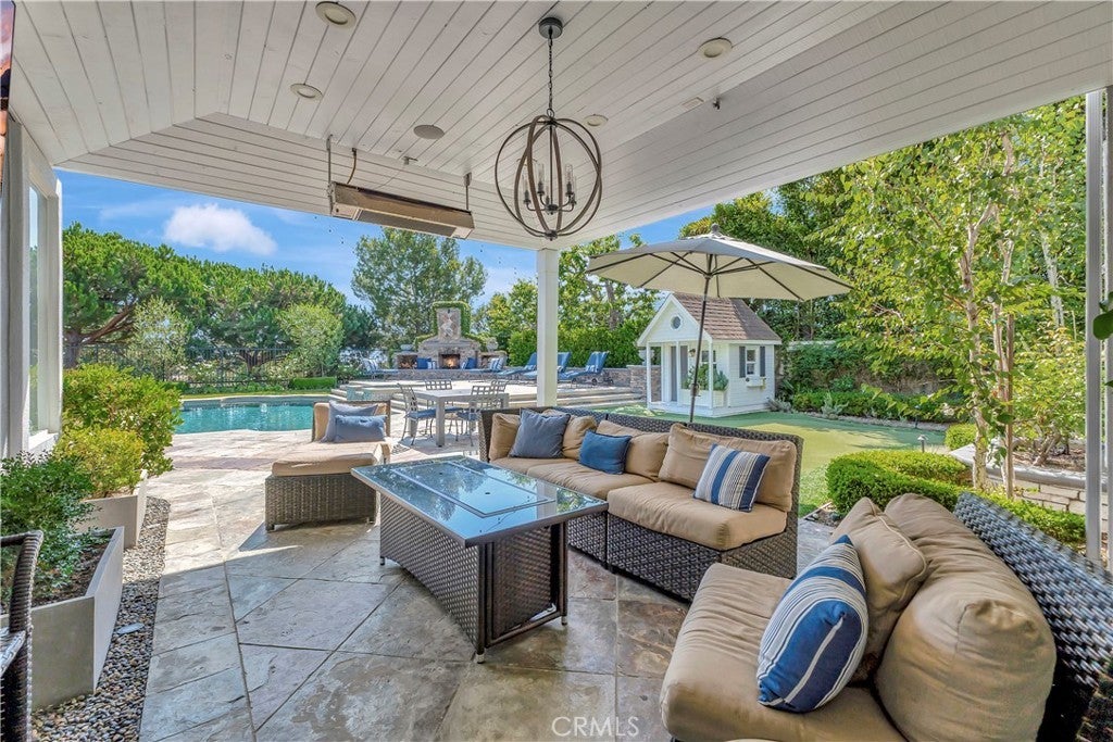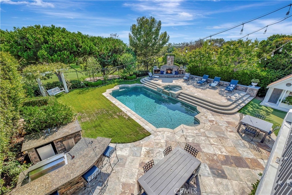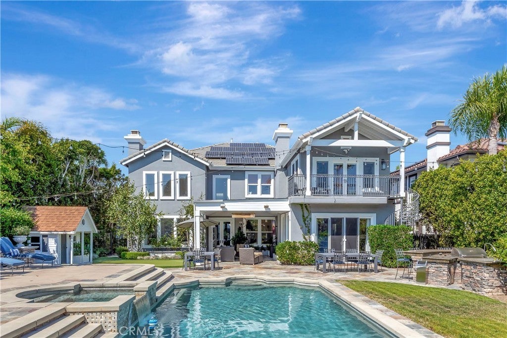 Phenomenal, fully furnished estate on nearly 13,000 sq. ft. lot, ideally situated on the golf course in the guard-gated community of The Peninsula at Huntington SeaCliff. Almost 5000 square feet with 5 bedrooms + exercise room + bonus room + craft/utility room + office down with built-ins! Soaring ceilings, wood flooring, and abundant natural light with stunning golf course and backyard views. The great room features a cozy fireplace, formal dining with French doors to the California Room, and a large-screen TV for entertainment. The chef’s kitchen includes a breakfast bar, center island, stone and quartz counters, stainless steel appliances, walk-in butler’s pantry with wine fridge and second full refrigerator. The family room opens to the backyard BBQ area. The grand primary suite offers a private balcony overlooking the golf course, soaking tub, dual vanities, walk-in shower, and oversized walk-in closet. Additional bedrooms have ample closet space and private baths. Bonus and exercise rooms provide versatile spaces for work, fitness, or play, and the office is fully furnished and ready for remote work. Backyard paradise features a pool and spa with waterfall, outdoor fireplace, BBQ center, putting green, playhouse, and California Room with heaters and TV. Covered seating and cozy lighting create an ideal space for entertaining. Rent includes pool maintenance, and solar panels keep electricity bills very low. The home also features an EV charger, upstairs laundry plus secondary laundry in the garage, a long driveway for guest parking, and two separate 2-car garages (4 spaces total) with built-in storage. Just minutes from the beach, Pacific City, shopping, dining, freeways, and award-winning Seacliff Elementary School, this estate offers privacy, luxury, and move-in ready Southern California lifestyle.