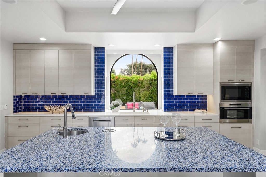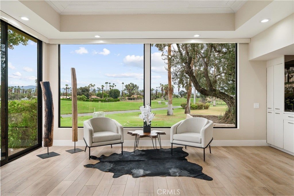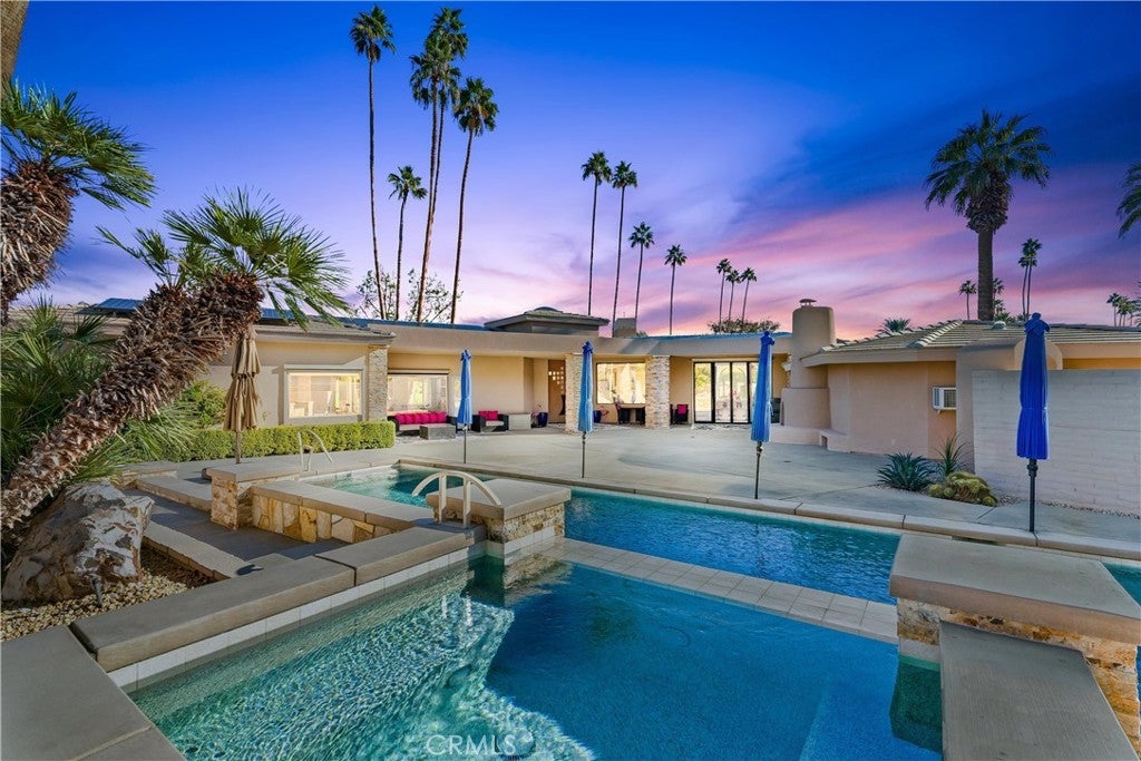 TURNKEY, FURNISHED!!! REDUCED!! Breathtaking views from every room! This stunning estate has undergone extensive updates, including new interior and exterior paint, updated bathrooms, new doors, new finishes, and a complete bathroom remodel and 90+ new lights throughout this breathtaking home on an exclusive Thunderbird lot—giving it a completely fresh, modern look! Originally designed by renowned architect William F. Cody (original blueprints available) and built by Thunderbird developer Johnny Dawson, this nearly 4,000 sq. ft. home sits on one of the finest lots in Thunderbird Estates, with breathtaking views of the 9th fairway at Thunderbird C Club. The home features 3 beds, 3 baths, a spacious living room, dining area, and an air-conditioned 3-car garage. The chef’s kitchen is a true showstopper, featuring a large waterfall island, custom cabinetry, and top-of-the-line Wolf/Sub-Zero appliances. It opens to a beautifully upgraded courtyard with a 40-foot saltwater pool & spa, outdoor fireplace, and generous entertaining space—all surrounded by panoramic mountain views. A dramatic 16-foot entrance foyer with an oversized skylight floods the home with natural light. The kitchen is fully outfitted with a Sub-Zero side-by-side refrigerator/freezer, Wolf dual-fuel range with 6-burner gas cooktop and charbroiler, double ovens, Wolf range hood, Hansgrohe pot-filler, Wolf microwave, Wolf steam oven, Bosch dishwasher, dual-temp wine fridge, and custom cabinetry. The waterfall island is made from Vetrazzo recycled blue glass, paired with quartz countertops, a custom 30” x 17” quartz sink, a stainless salad sink, and a striking cobalt-blue glass subway tile backsplash. Each bedroom is ensuite. The spacious primary suite includes a private office, spa-style bathroom, two walk-in closets with custom cabinetry, and an additional large mirrored closet. A guest casita with a private entrance offers added flexibility and comfort. Additional features include a high-capacity LG washer/dryer, three A/C zones, an air-conditioned 3-car garage with epoxy floors and built-in workshop cabinets, and a hot water return system for near-instant hot water. The home is equipped with leased solar panels (56 panels, 3 inverters), a newer roof, and fresh exterior paint to enhance energy efficiency. Over $250K was invested in the pool/courtyard alone, and recent upgrades total nearly $200K. This home perfectly blends iconic mid-century architecture with modern luxury!
