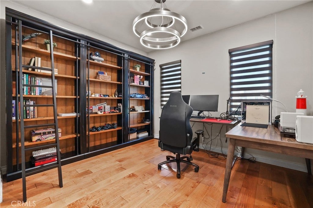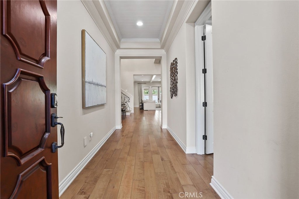Behind the prestigious gates of The Groves at Orchard Hills, this distinctive residence showcases breathtaking designer finishes that set it apart from every home in its class. Flooded with natural light, the spectacular open layout features soaring ceilings, wrought-iron accents, rich wood flooring, and dramatic beams, creating an inviting space for both luxurious family living and grand entertaining. The chef-inspired kitchen is a true showpiece with sleek white cabinetry, custom countertops, high-caliber stainless appliances, and a large center island overlooking the great room, dining area, and conservatory. Accordion bi-fold doors blur the line between indoors and outdoors, opening to a spacious backyard designed for gatherings and relaxation. The primary suite offers a serene retreat with a spa-like bath and dual walk-in closets, while the generous secondary bedrooms each include en suite baths. A versatile bonus room, upstairs laundry, and an extended main-floor bedroom with private bath ensure functionality and flexibility for modern living. Premium upgrades include Custom window treatments & premier shade system, alarm system & surround sound, Tankless water heater & paid off solar panels, and Built-in EV charger. The backyard oasis is equally impressive, featuring California room, an open artificial grass play area with mini golf green, a wood-paved entertainment space, and a natural stone wall fountain for tranquil ambiance. This turn-key home is complemented by Orchard Hills’ world-class amenities: multiple pools, a clubhouse, parks, hiking trails, basketball and tennis courts, and proximity to award-winning schools and the vibrant Orchard Hills Shopping Center. Don’t miss this rare opportunity to enjoy resort-style living in one of Irvine’s most prestigious neighborhoods!
