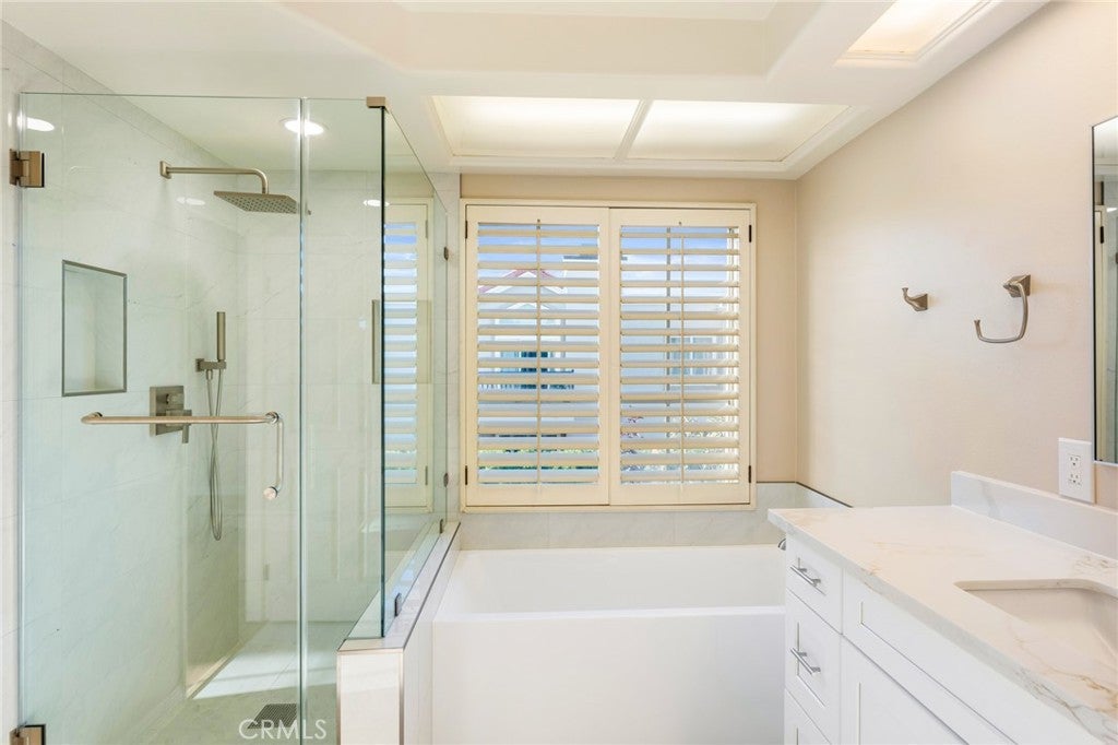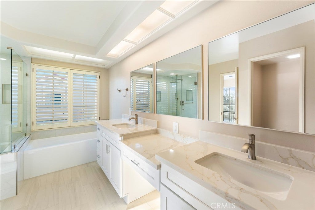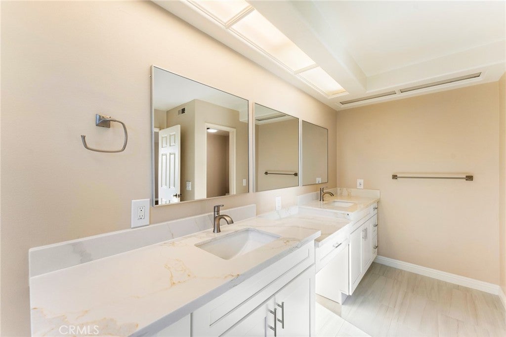 This elegant home is located in the community of SeaCliff on the Greens that is minutes away from the blue Pacific Ocean, SeaCliff Country Club and downtown Surf City. This home is very open and bright, in an interior location with a lovely view of the trees and greenbelt. Brand new paint throughout, new waterpoof vinyl flooring, new carpet, new windows, new primary bathroom, new stovetop and new oven. The flooring in the entryway, family room, dining room, powder room and kitchen is done in exquisite stone. The living room is very spacious and boasts high-vaulted ceilings, wet bar and a fireplace with gas logs. Family room is adjacent to the kitchen with a custom built-in entertainment center and custom lighting. The Primary bedroom hosts a walk-in closet, new flooring, new remodeled bathroom with quartz counters, a porcelain tub and separate walk-in porcelain shower, and a double-mirrored wardrobe, as well as a fireplace. The wrap-around balcony is right outside the double sliding glass doors that allows the outside to come in. The second bedroom suite has direct access to its own private upgraded bathroom with newer tile in the shower. The spacious loft can used as a 3rd bedroom or an office and has custom white shutters. Other features include NEW Air Conditioning, oversized two-car garage with custom built-in cabinets and custom flooring. The community has 3 pools/3 spas, in a guard-gated community,beautiful green belt areas, and just a few steps to the ocean. Close to Downtown Huntington Beach, walking distance to SEACLIFF ELEMENTARY which is an award winning school.