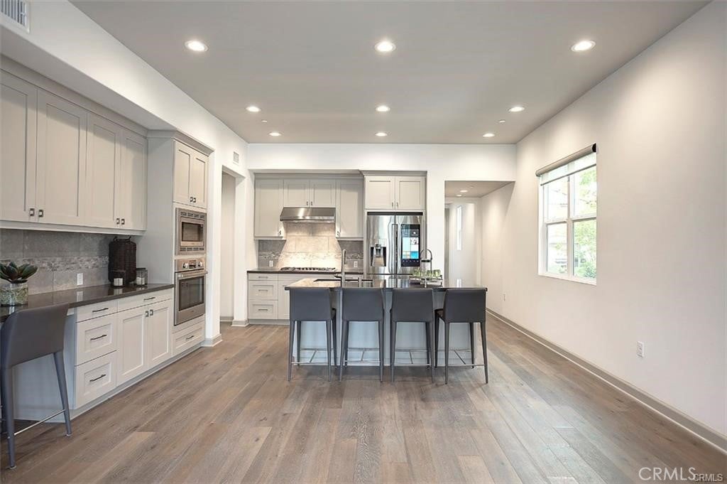 Check out this stunning single level Beacon Park Home, adjacent to Irvine's Great Park! This is an elegant Plan 3 model featuring three spacious bedrooms and three full bathrooms. With an open concept design this home provides lots of natural light. The bright and open kitchen includes grey quartz countertops, upgraded backsplash, Stainless Steel Bosch 500 Series appliances, Modern Smart Refrigerator and Touch Free Faucet. Beautiful Anew Grey upgraded cabinets throughout. Upgraded flooring with upgraded carpet and Laminate wood. The Great Room features a large Collapsible Glass Door which opens to large size patio. The Master Bedroom and Bedroom 2 enjoy private patios with elegant French Doors. Enjoy views from Patios and walk to Beacon Park, a resort-caliber pool and spa! Easy access to Beacon Park Elementary across the street! New Great Park’s 8 Acre Water Park. Enjoy Luxury Living in this wonderful Great Park Neighborhood!