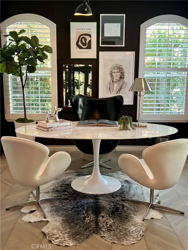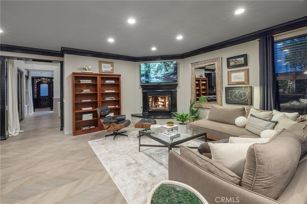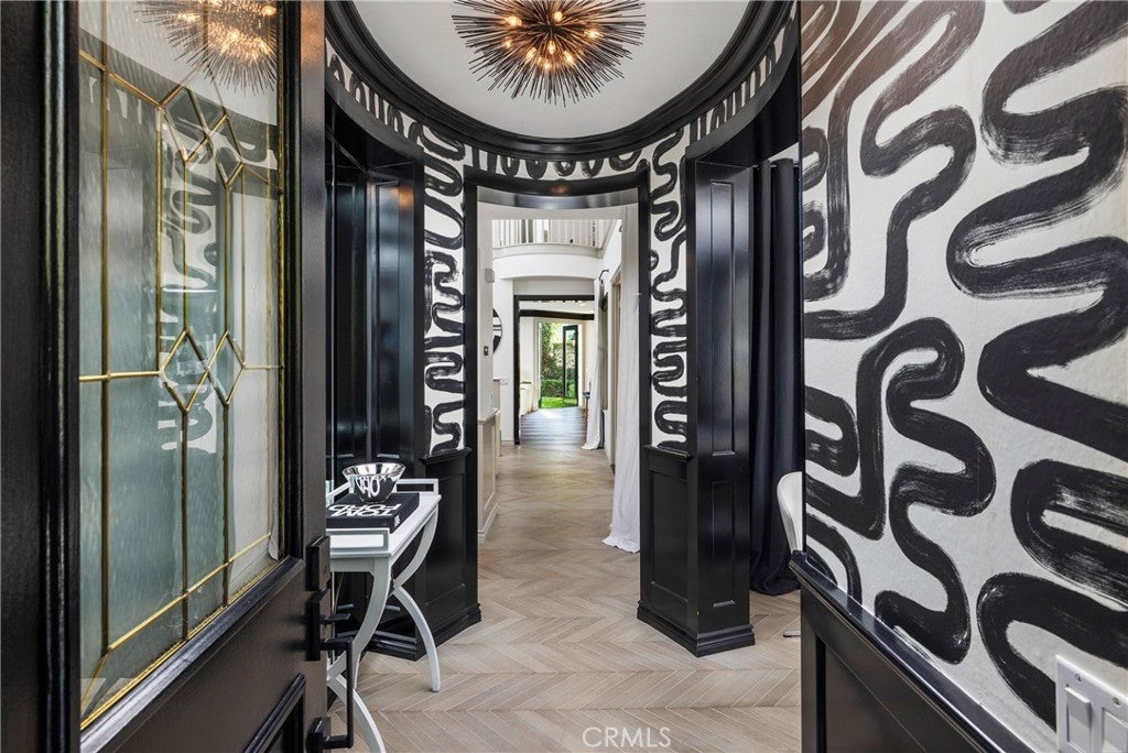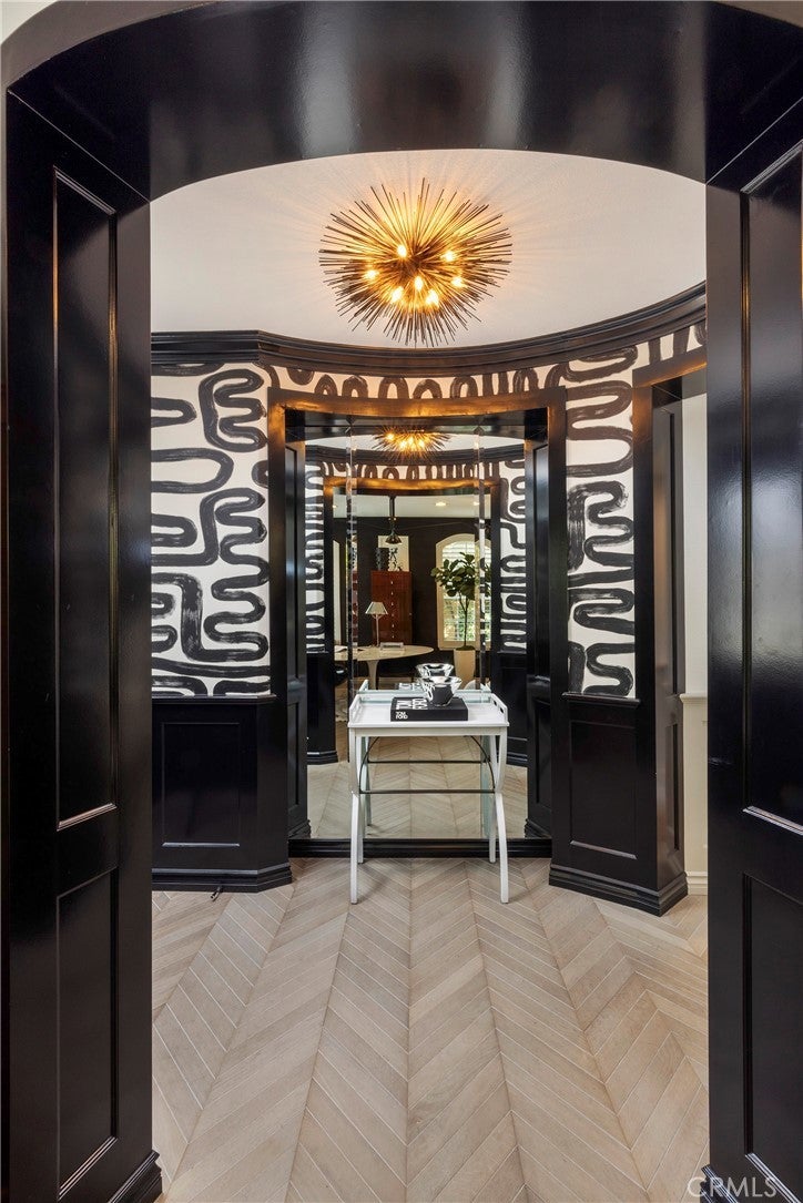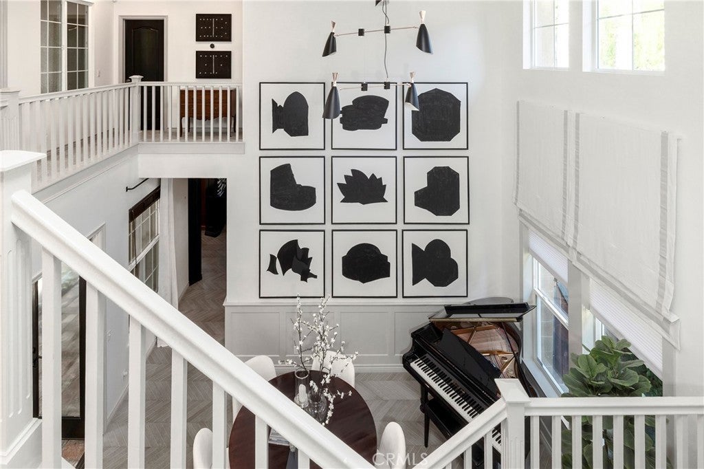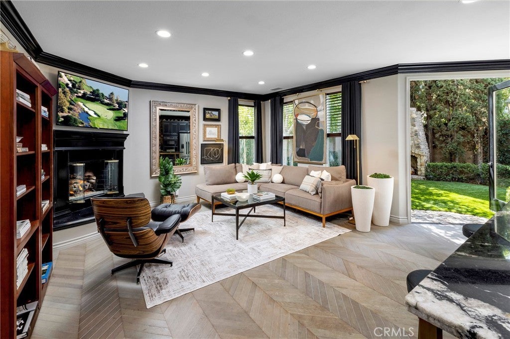 TV-featured Magazine- Quality designer model of a home in Irvine’s prestigious triple guard-gated Northpark community with French oak chevron wood floors, dramatic double-height dining room, open concept family room and abundant natural light. Tucked on a private cul-de-sac with 4 bedrooms plus office (optional 5th), loft, and first-floor guest suite. Custom details include wainscoting/paneling, elegant lighting and hardware, and refined millwork throughout. Spacious living areas flow to outdoor patios with stone fireplace and south-facing garden. The primary suite offers a spa-style bath with freestanding soaking tub, Carrara marble floors, mirrored wardrobe walls and dual vanities. Chef-ready kitchen features quality finishes and thoughtful design. Residents enjoy Northpark amenities: 5 pools, tennis courts, 11 parks/playgrounds, sport court, clubhouses and 24-hour guard service. 0.3 miles to Northpark Plaza with H Mart grocery, Starbucks Coffee, Bruegger’s Bagels, CVS Pharmacy, Chase Bank and casual dining; minutes to additional shopping and dining corridors. 0.6 miles to Hicks Canyon Elementary, 1.1 miles to Orchard Hills Middle, 1.6 miles to Beckman High (top-rated schools). Easy access to Culver Drive and Portola Parkway for commuting; approximately 9 miles to Newport Beach and Pacific Coast beaches. Includes video tour and floor plan.