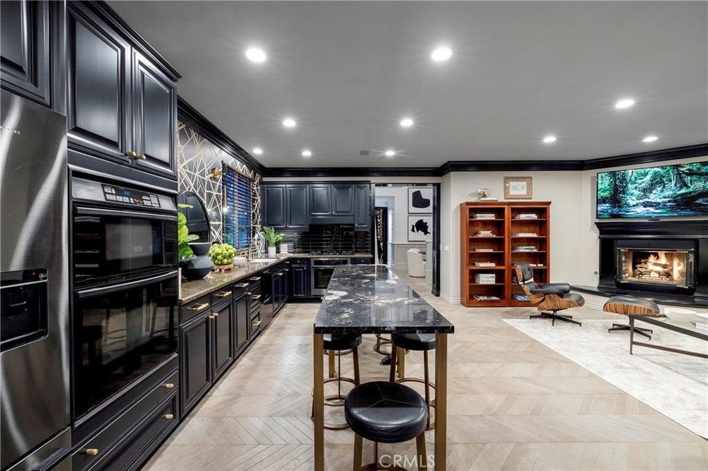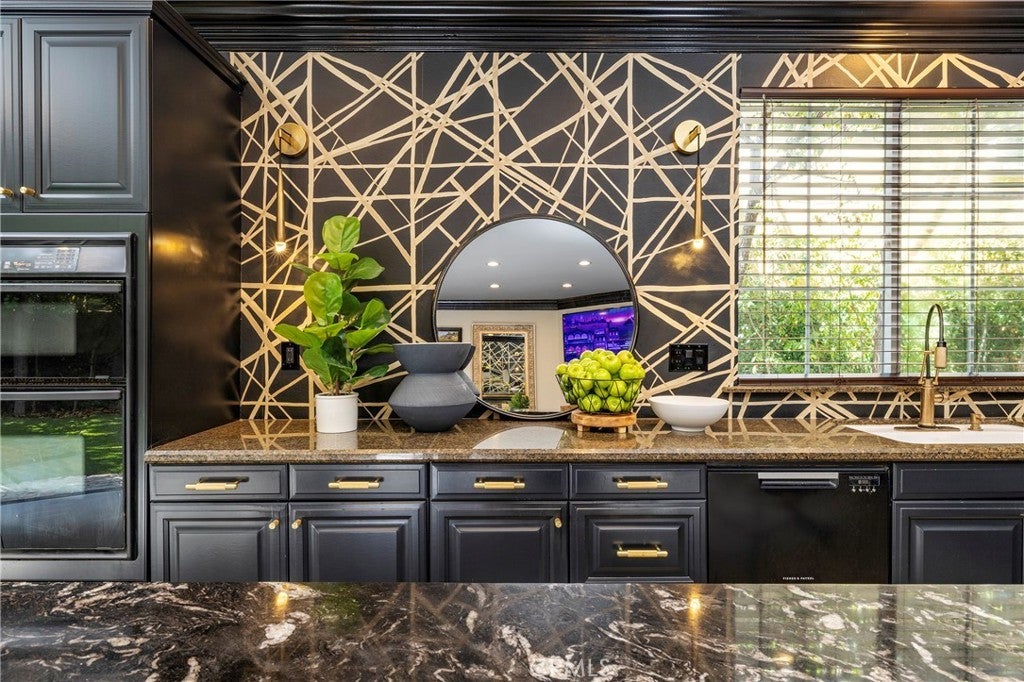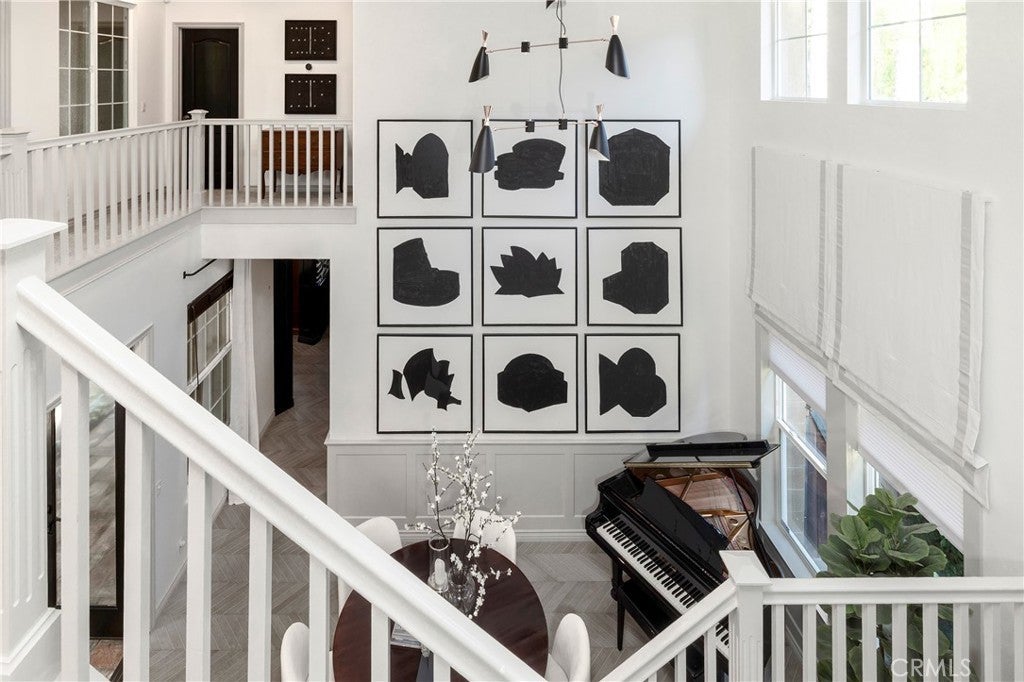 TV-Featured Magazine-Quality Luxury Home | Resort-Style Guard-Gated Northpark with Award-Winning Schools Tucked on a private cul-de-sac in Irvine’s prestigious triple guard-gated Northpark community, this designer residence blends modern sophistication with resort-style living. Offering four bedrooms plus an office (optional fifth), an open loft, and a first-floor guest suite, the layout is versatile and thoughtfully curated. The sunny, dramatic two-story dining room and open-concept family room are framed by expansive windows that fill the home with natural light and create a seamless sense of openness. A masterclass in luxury design, the home showcases elevated materials, architectural details, and curated statement pieces throughout. The oval wood-paneled entry sets the tone with the striking Strada light fixture by Kelly Wearstler—an AD100 designer featured in Vogue, Elle Decor, Architectural Digest, Forbes, and The New York Times. The sunny, living-room-style, seamless cuisine intégrée kitchen features Wearstler’s Channels wallpaper, matte spray-finished solid wood cabinetry, and solid brass hardware by London’s Buster + Punch, inspired by high-performance vehicles. The 9-foot Library Table–style floating island with brass legs and a polished stone top anchors the space. An articulating, touchless sculptural Brizo brass faucet—celebrated for precision, artistry, and professional-grade performance and featured by Bravo’s Top Chef. The home office has three walls of arched windows, with mid-century modern Serge Mouille–style fixtures and a primary fixture recognized by MoMA in New York and the Centre Pompidou in Paris. In the double-height dining room, a Calder-inspired mobile fixture transforms the ceiling into a gallery of movement. The oval entry, office, and dining areas were all featured on HGTV. The primary bathroom offers a spa-like retreat with a freestanding soaking tub on Carrara marble floors. Outdoors, hand-set cobblestone patios, chevron wood floors, iconic lighting, an outdoor fireplace, and lush gardens beneath a canopy of trees create a serene private sanctuary. Experience refined living at this Fortunate #8 Upland, Irvine, CA, home and enjoy five pools, tennis courts, 11 parks, playgrounds, and clubhouses. Minutes from beaches, shopping, dining, and entertainment, this home offers the ultimate Southern California resort lifestyle—where luxury, craftsmanship, and sophisticated living converge