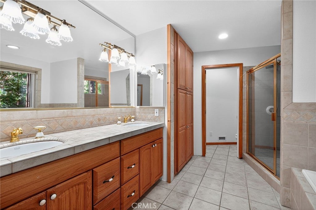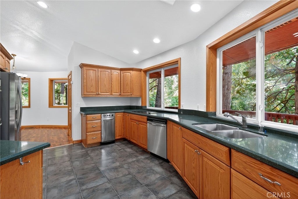 Price Reduced!! Discover this newer, beautifully maintained home nestled among 360-degree views of majestic trees. The upgraded kitchen features elegant granite countertops, perfect for cooking and entertaining. A soaring high-ceiling living room is bathed in natural light, enhanced by a stunning Sky Lite that brings the outdoors in. The space also includes a dedicated workstation and cozy den—ideal for remote work or creative pursuits. The luxurious master suite offers a spa-like experience with a soaking tub, a walk-in shower featuring dual shower heads, a double vanity, and a spacious walk-in closet—designed for comfort and style. Enjoy energy efficiency and year-round comfort with double-pane windows and a sliding glass door that opens to serene forest views. The spacious 3-car garage and extended driveway offer ample parking, while the generous lot provides plenty of room to build an ADU (Accessory Dwelling Unit) for guests or rental income. In addition, the property features an extra den, bedroom, and full bathroom located adjacent to the garage—a flexible layout perfect for a guest suite, home office, or potential income property. Conveniently located close to town, shops, and restaurants, this home offers the perfect balance of accessibility and tranquility. Step outside to explore nearby hiking trails and biking paths, and embrace a lifestyle rooted in wellness, adventure, and the wild beauty of Idyllwild.